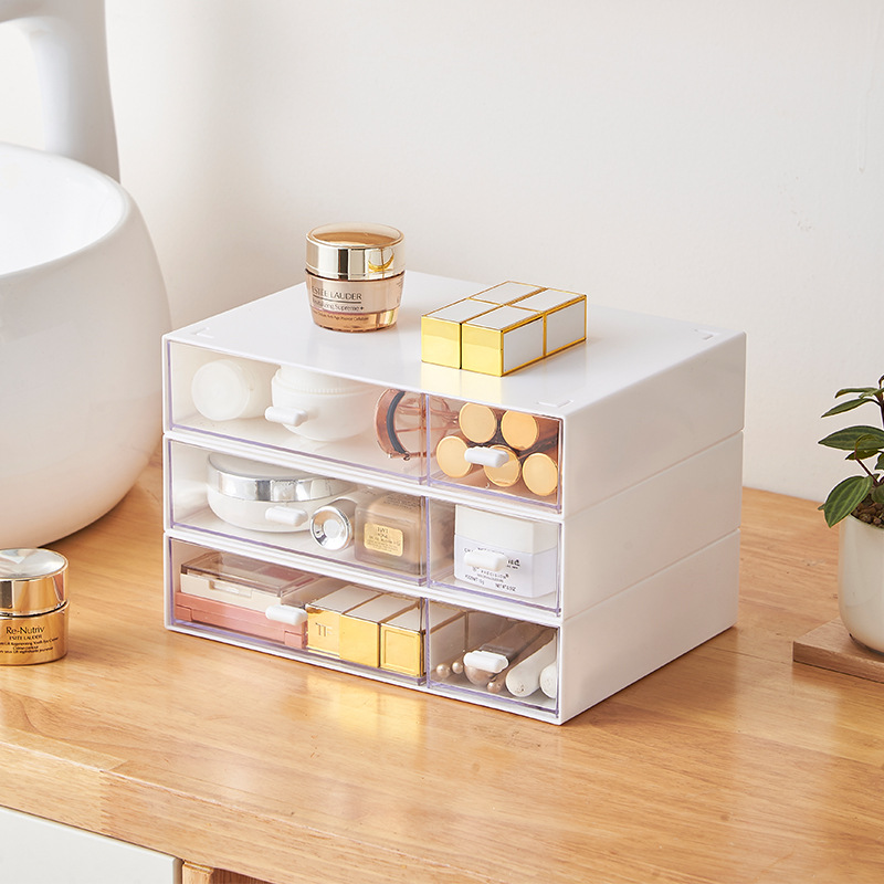 办公桌面文具收纳盒 化妆品分格整理叠加抽屉式口红透明DIY收纳盒