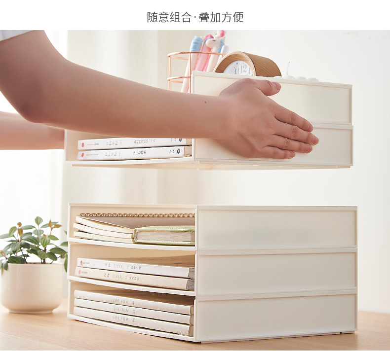 A4收纳盒文具杂物书本办公室书桌文件架桌面学生用品可叠加整理盒