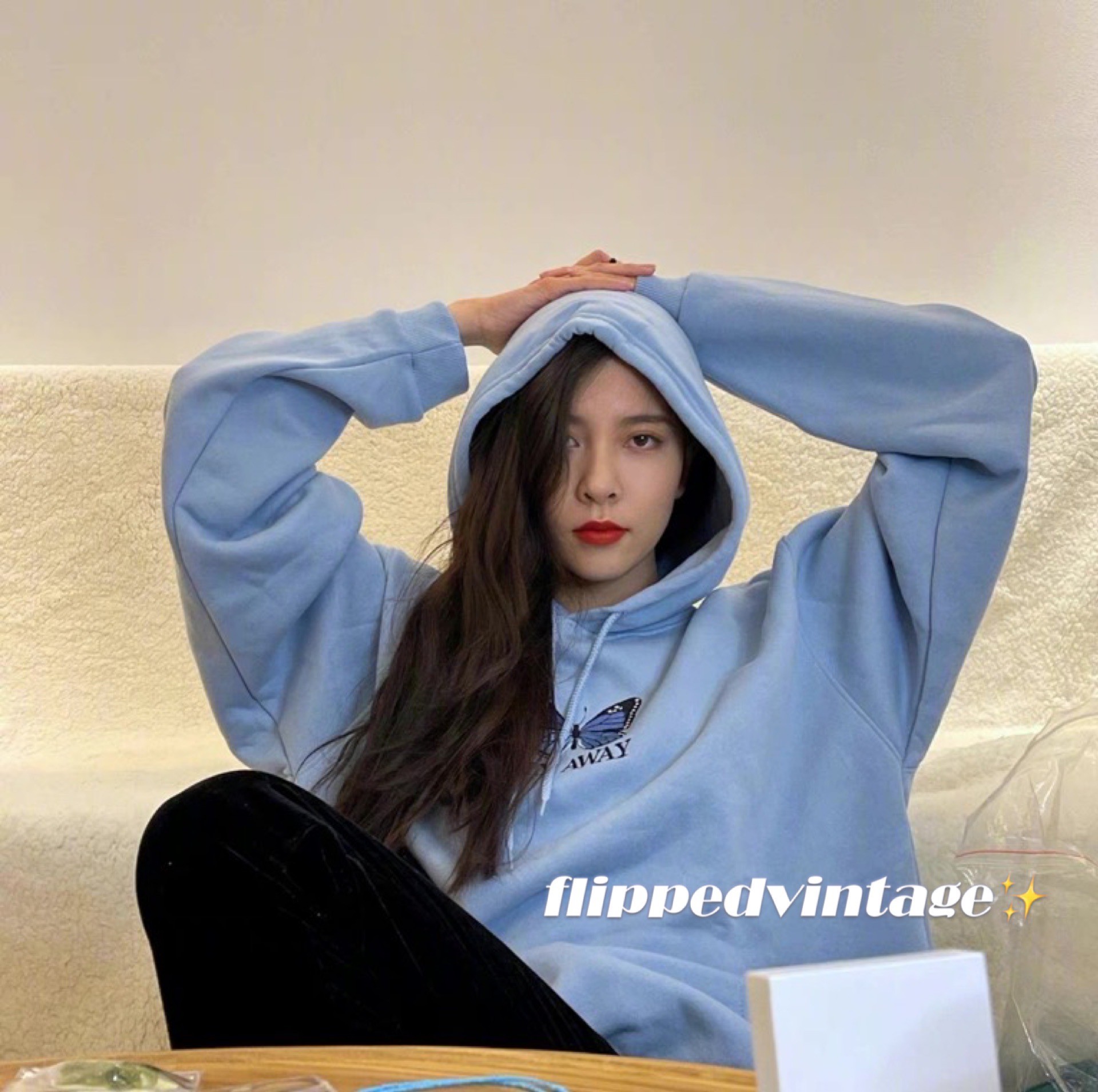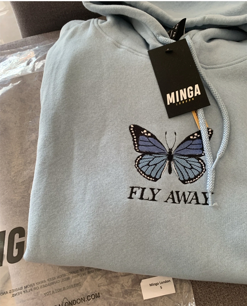 2022年秋冬新款MINGA 蝴蝶刺繡連帽運動衫 寬鬆冬季插兜 宋妍霏同款
