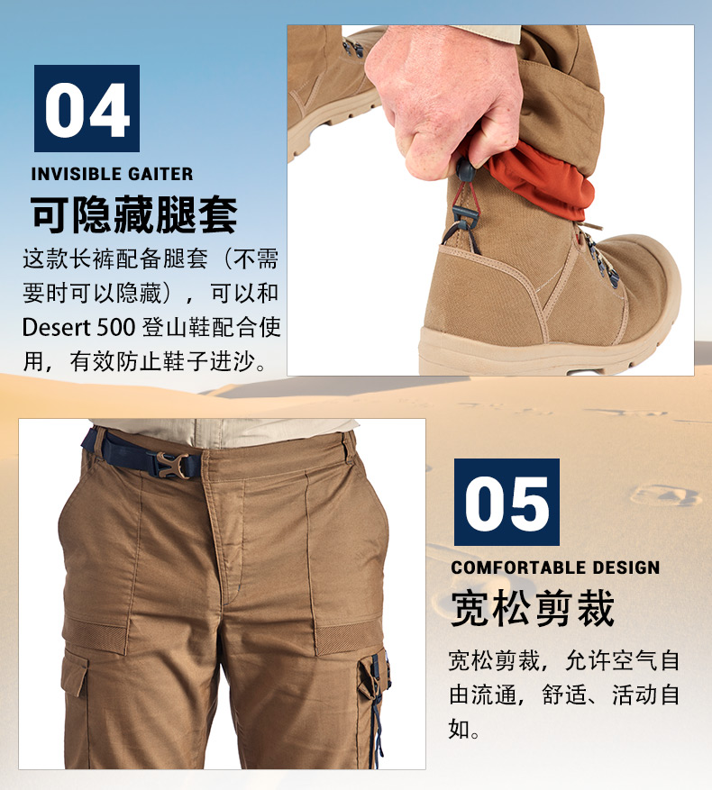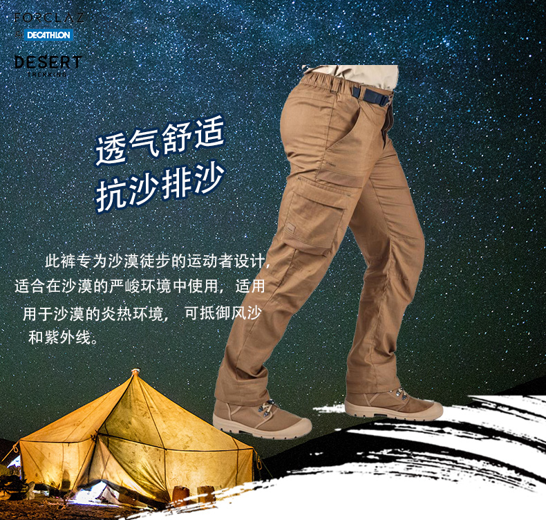 迪卡儂沙漠徒步褲男長褲女寬鬆防風沙戶外運動旅行休閒防曬褲ODA