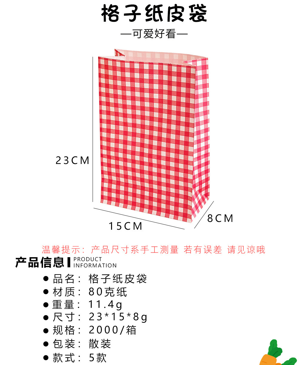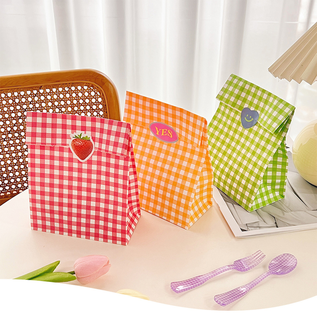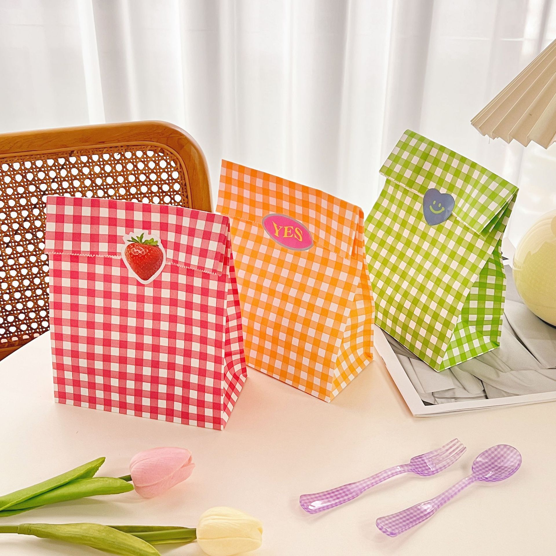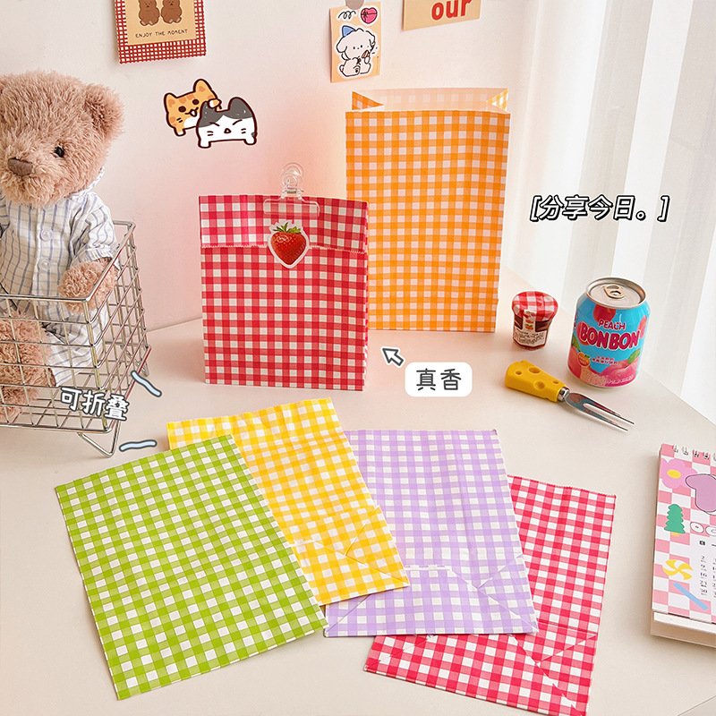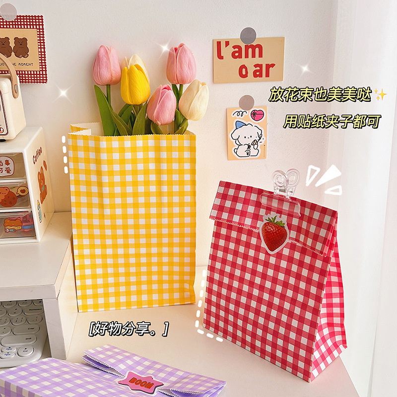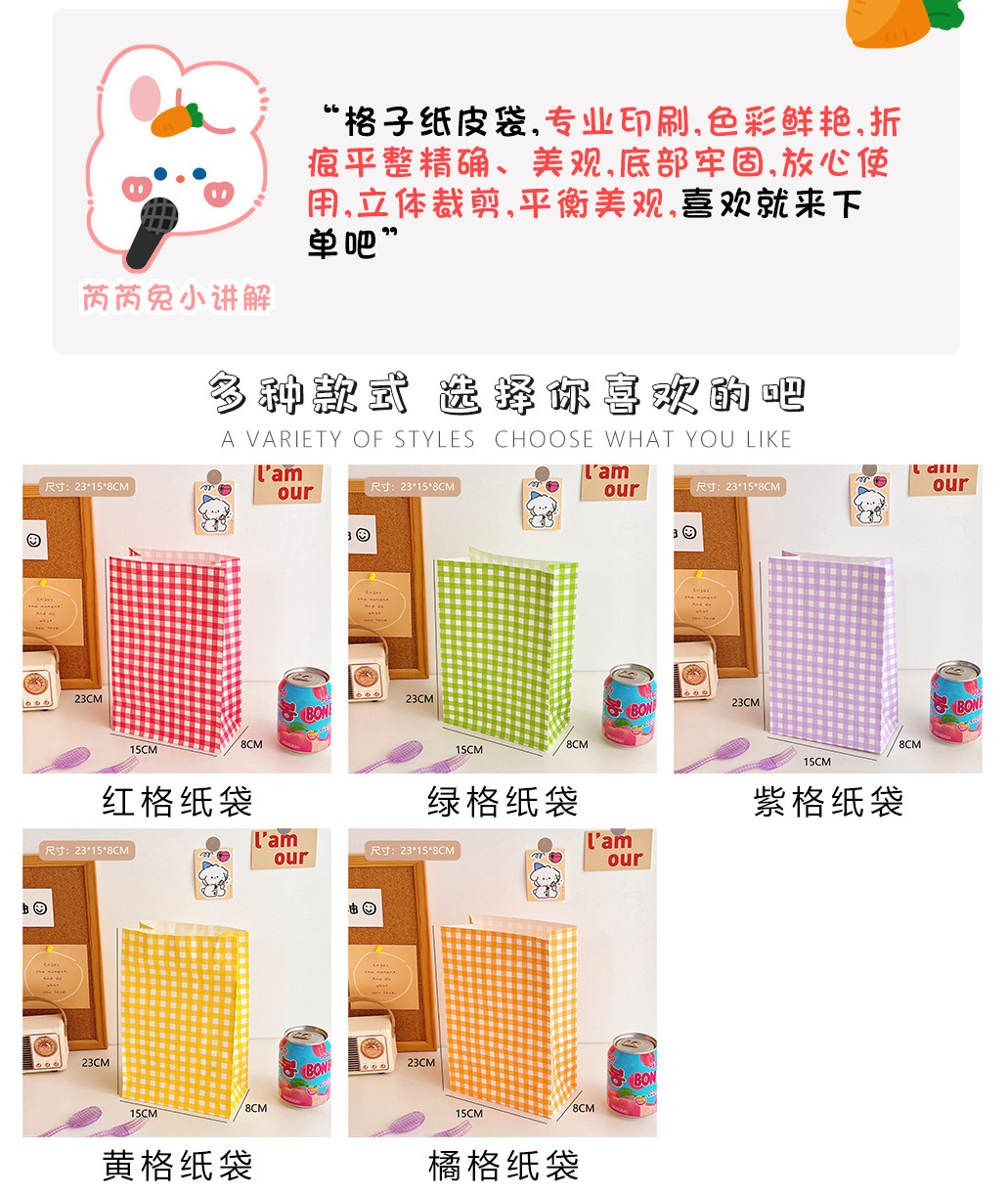ins韩风彩色格子牛皮纸袋礼品包装小礼物纸袋可爱收纳整理袋子潮