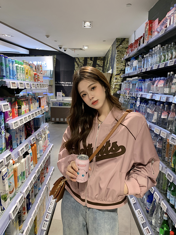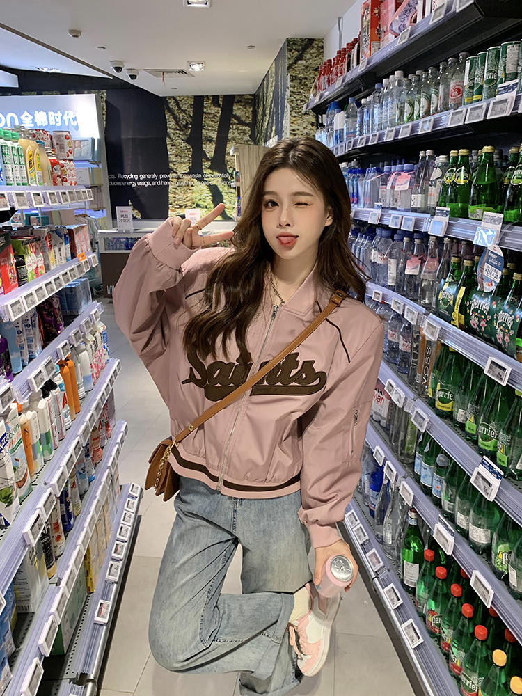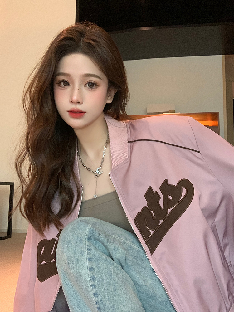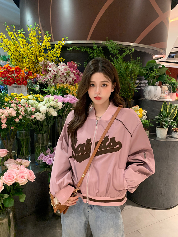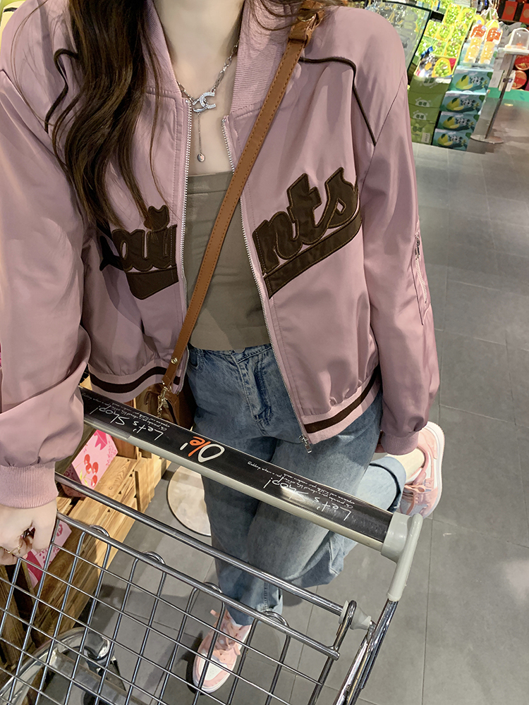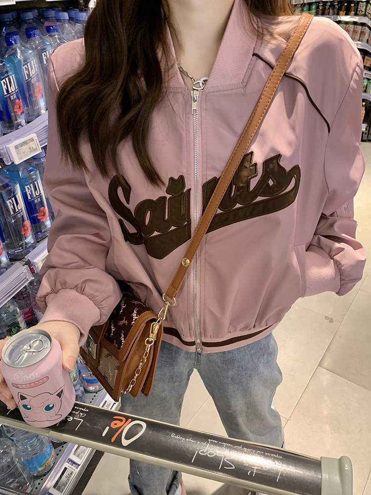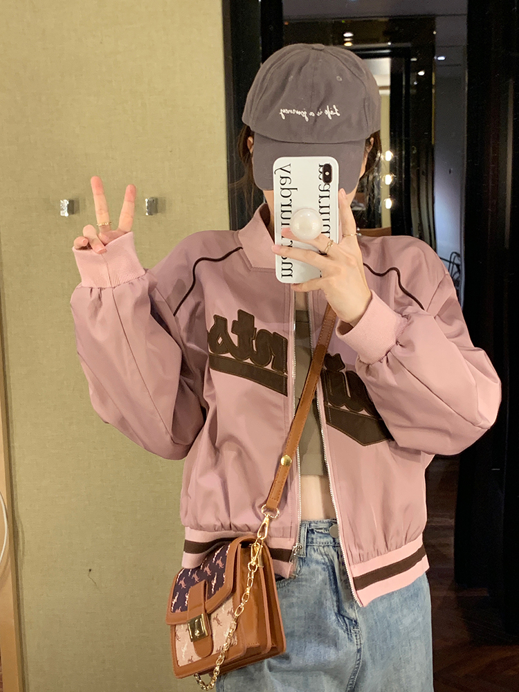 復古刺繡棒球服女裝上衣秋冬新款寬鬆短款長袖設計感夾克外套ins