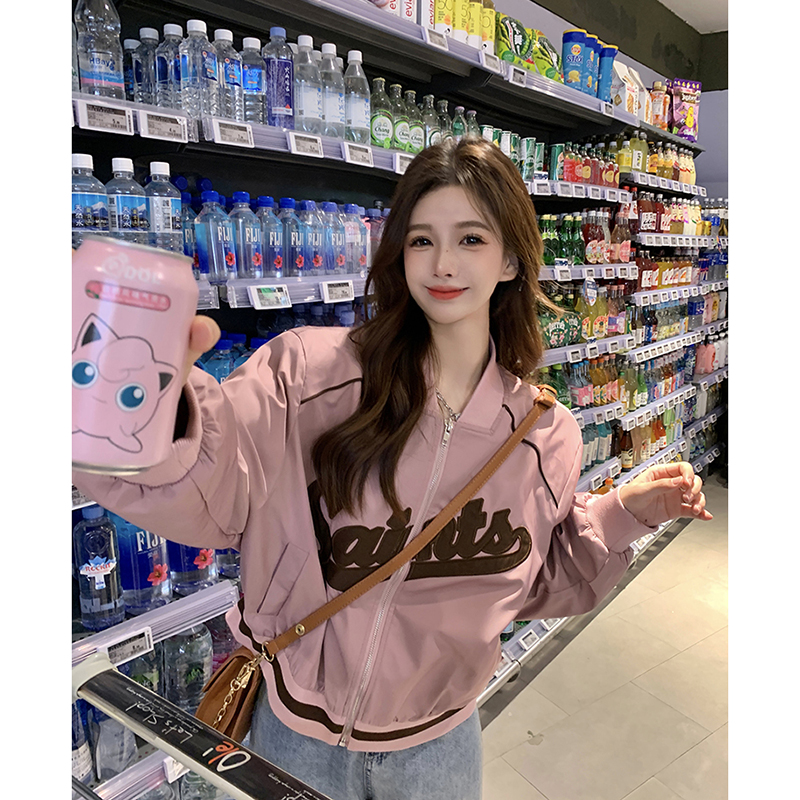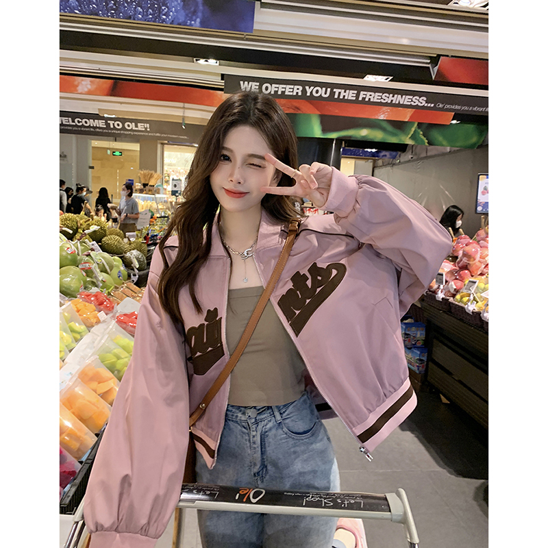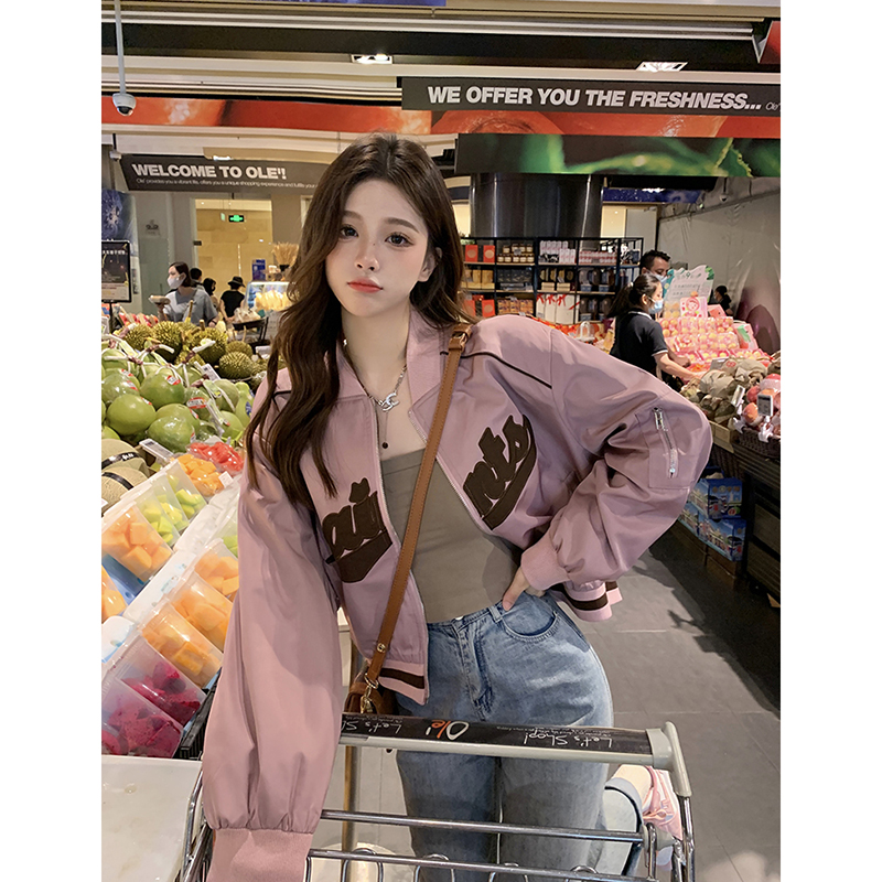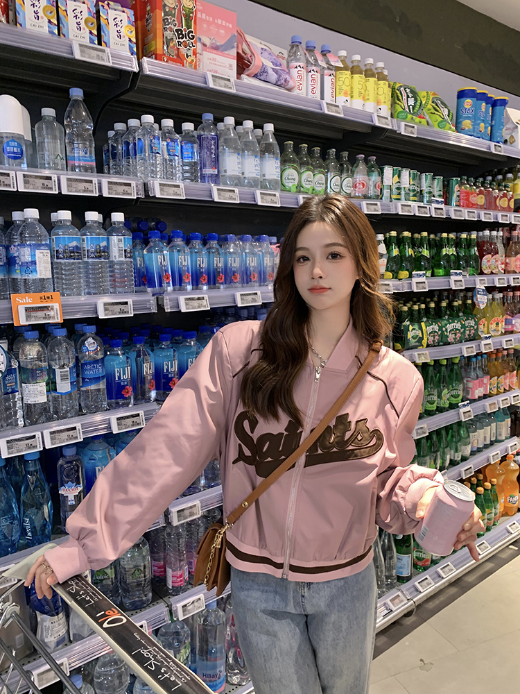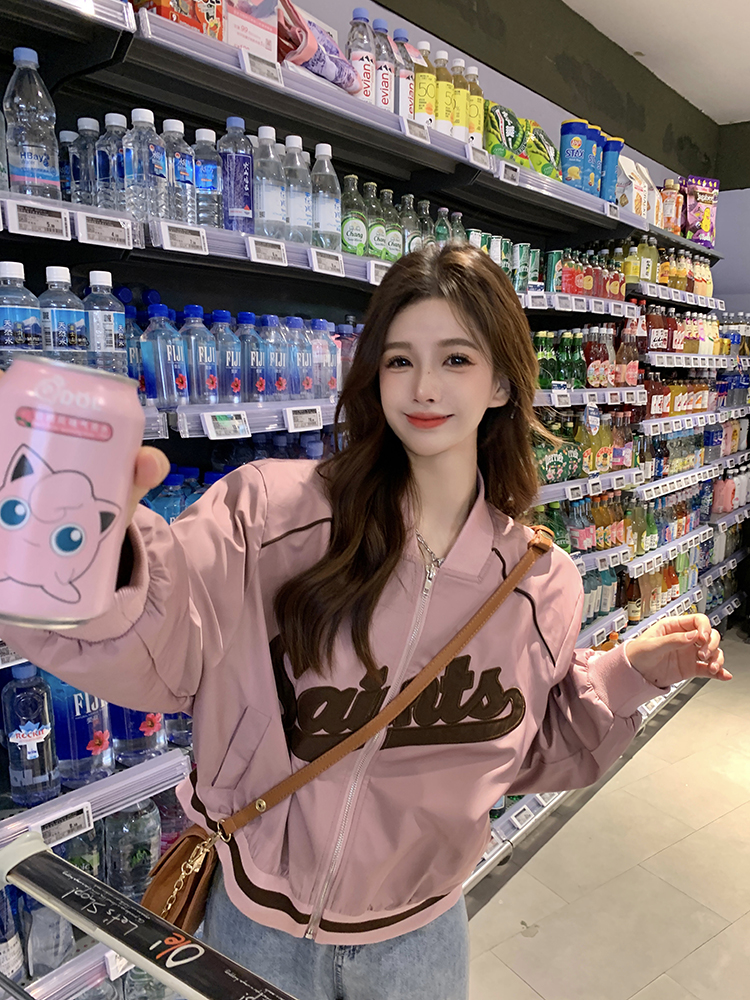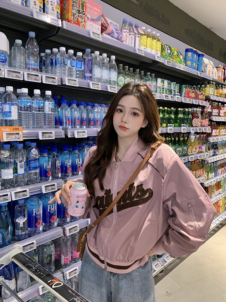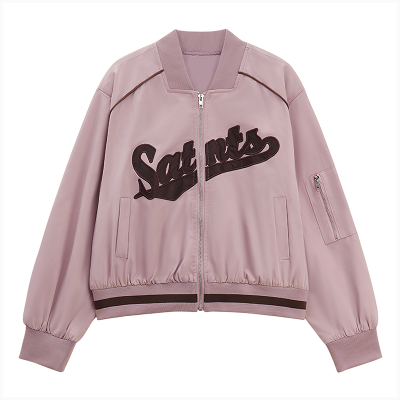 復古刺繡棒球服女裝上衣秋冬新款寬鬆短款長袖設計感夾克外套ins