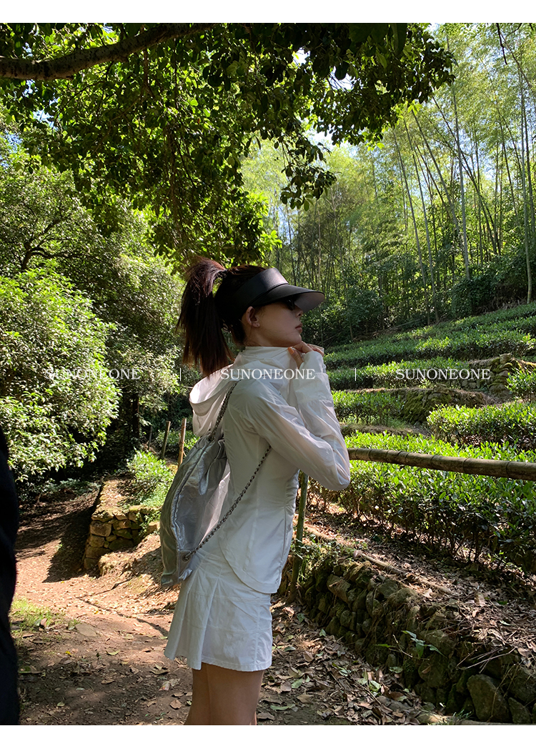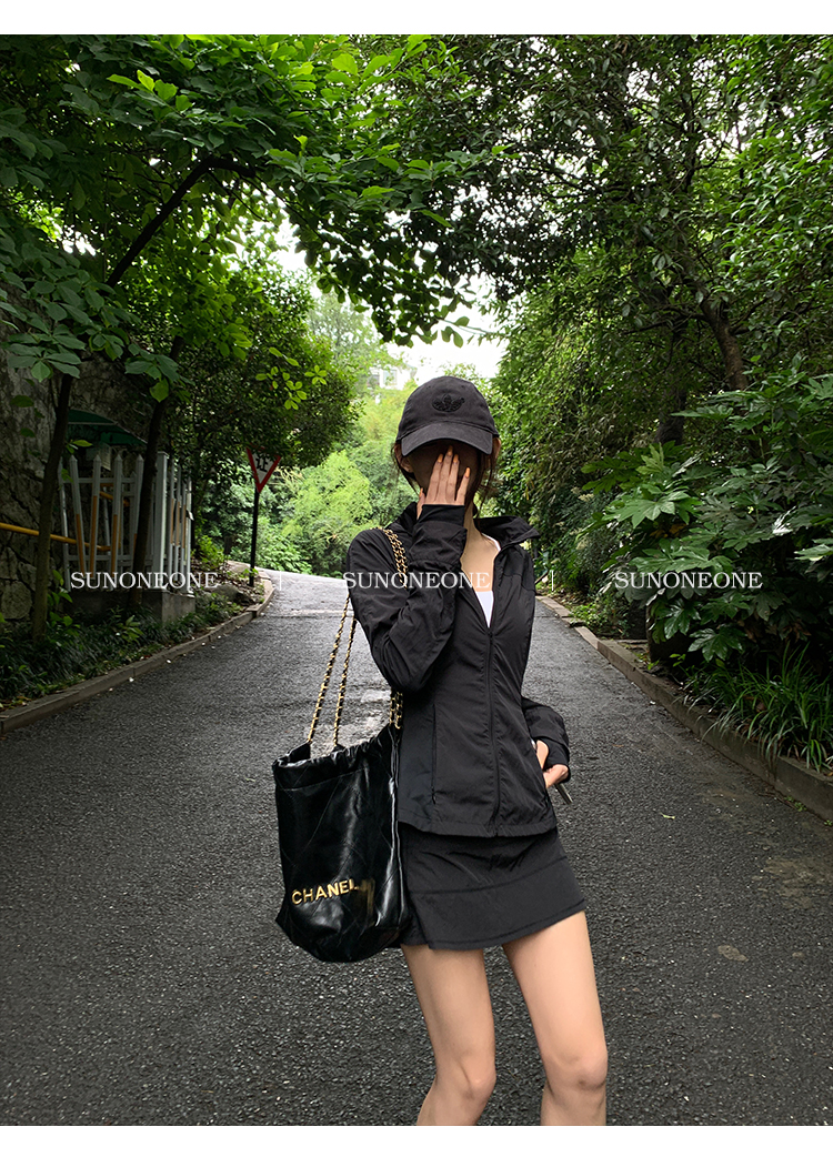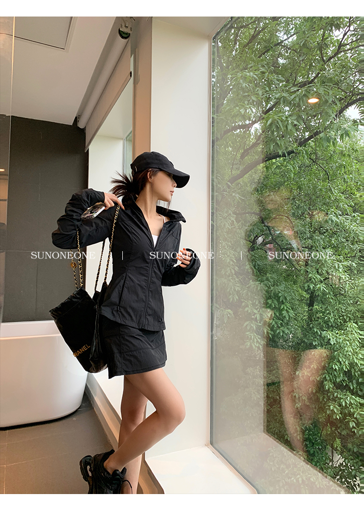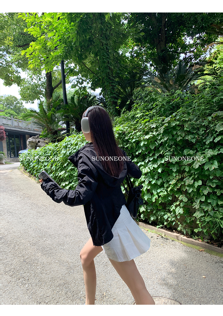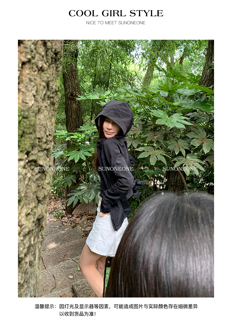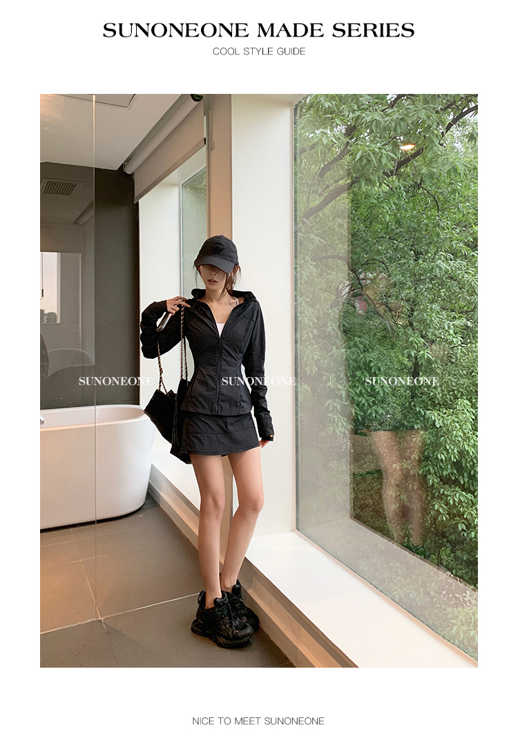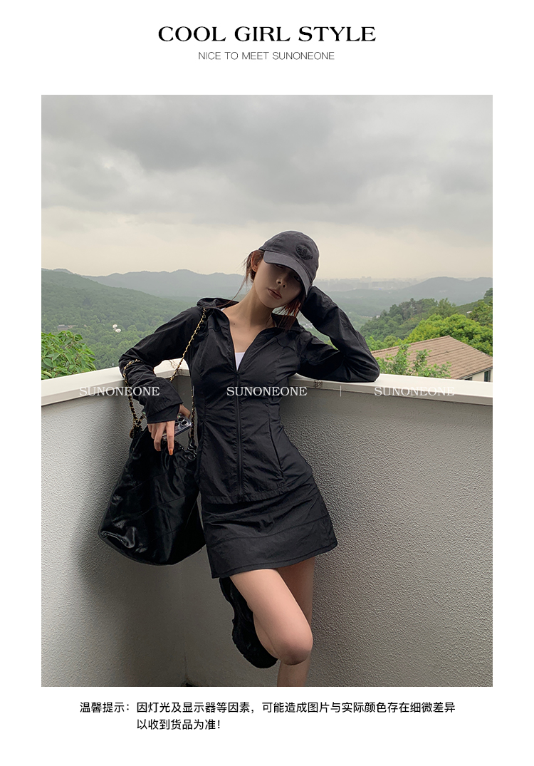 SUNONEONE 休閒防曬衣防曬套裝女夏季薄款修身連帽外套裙子兩件套