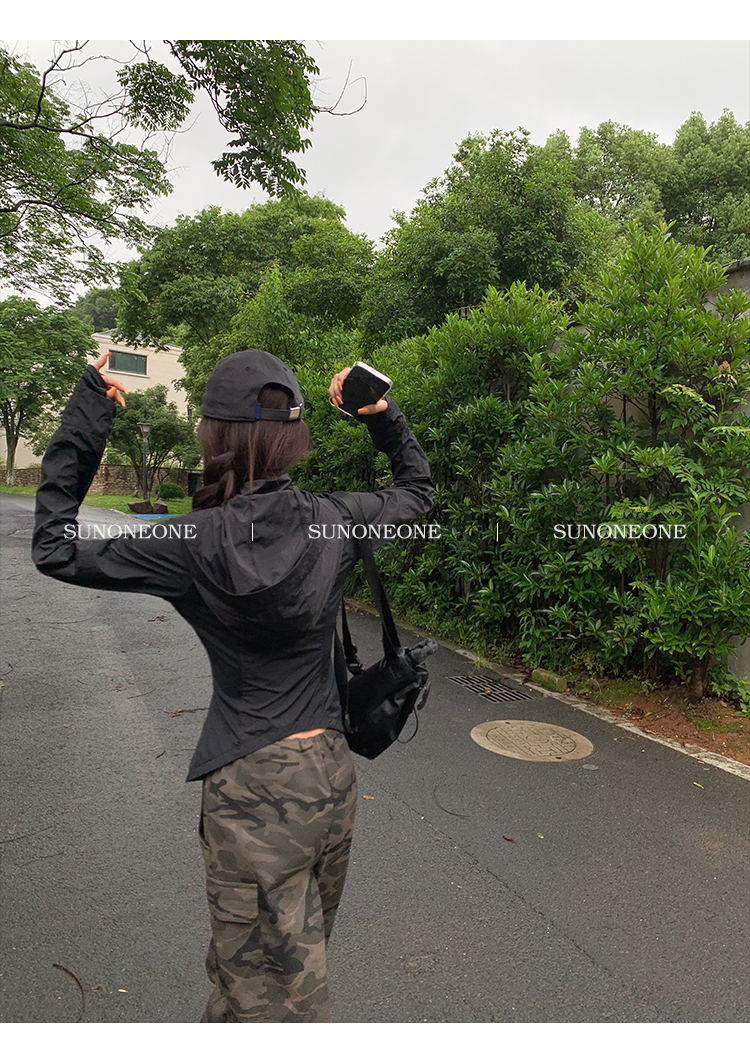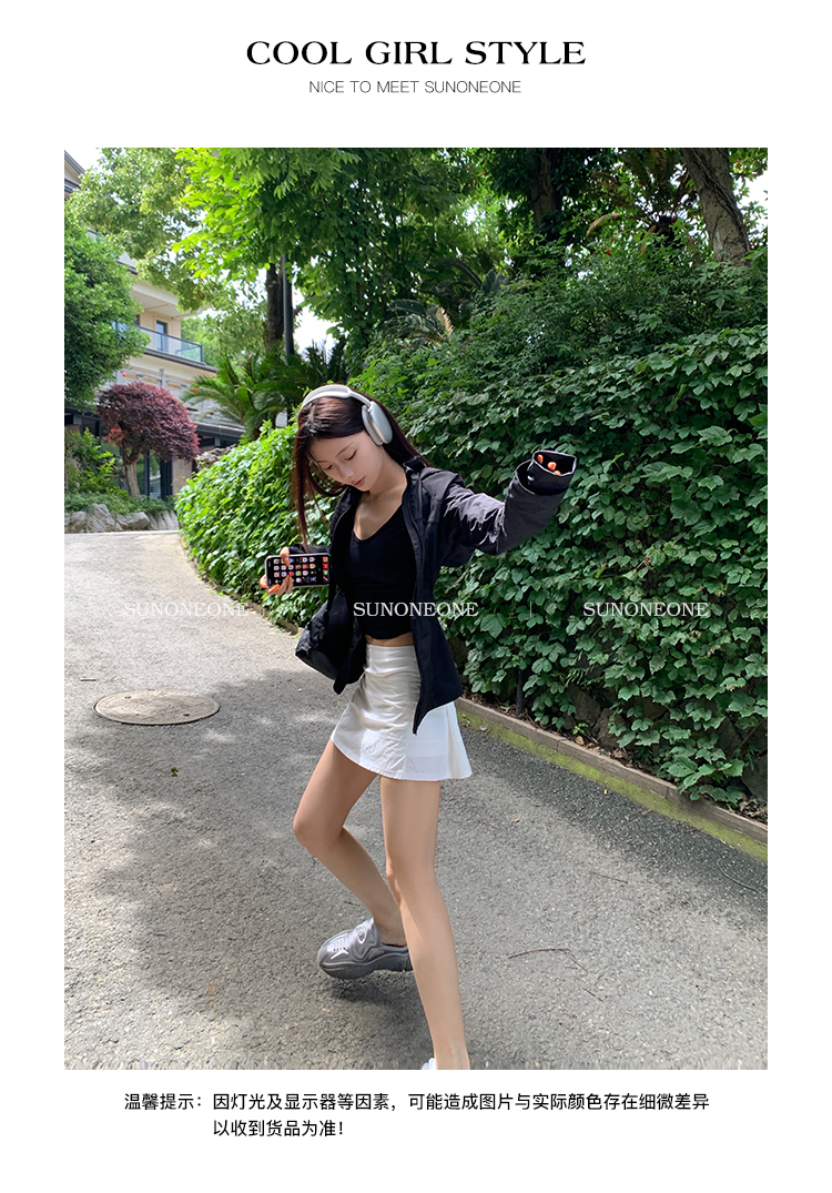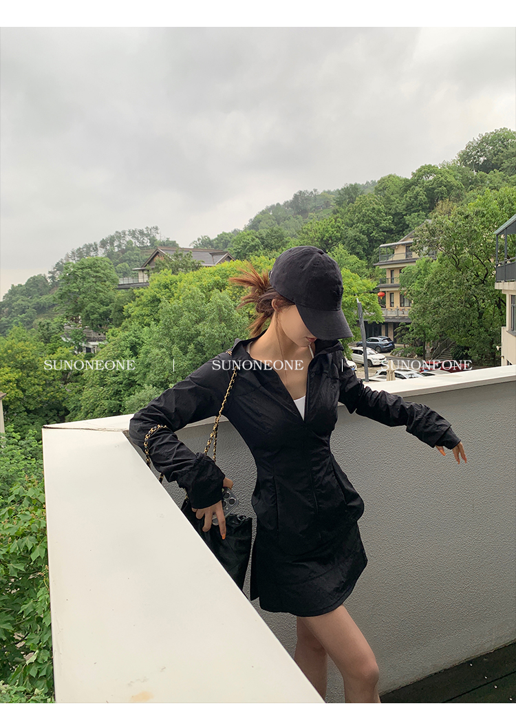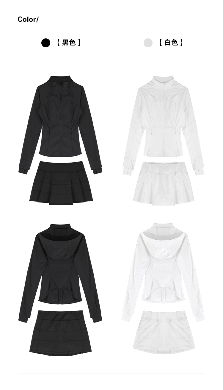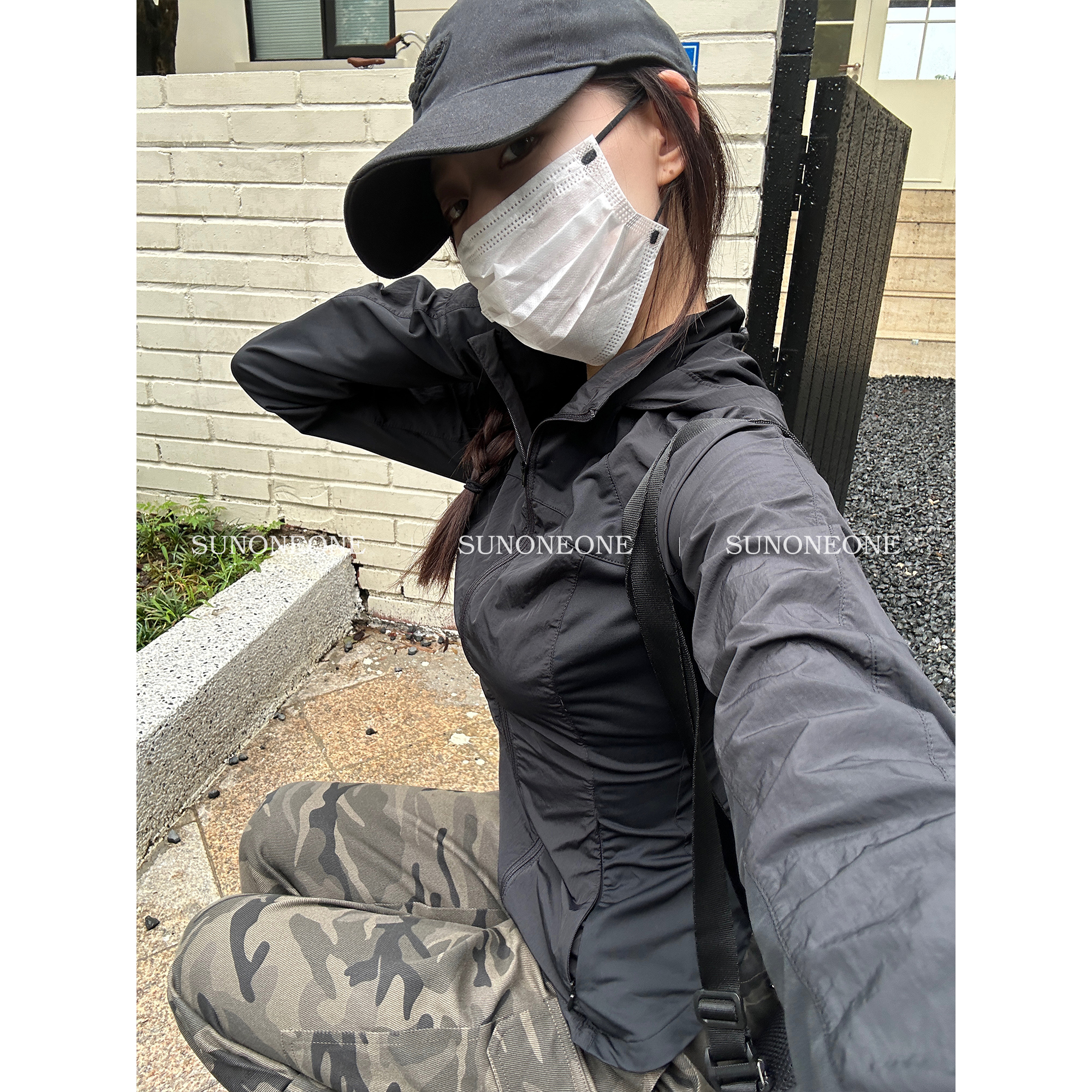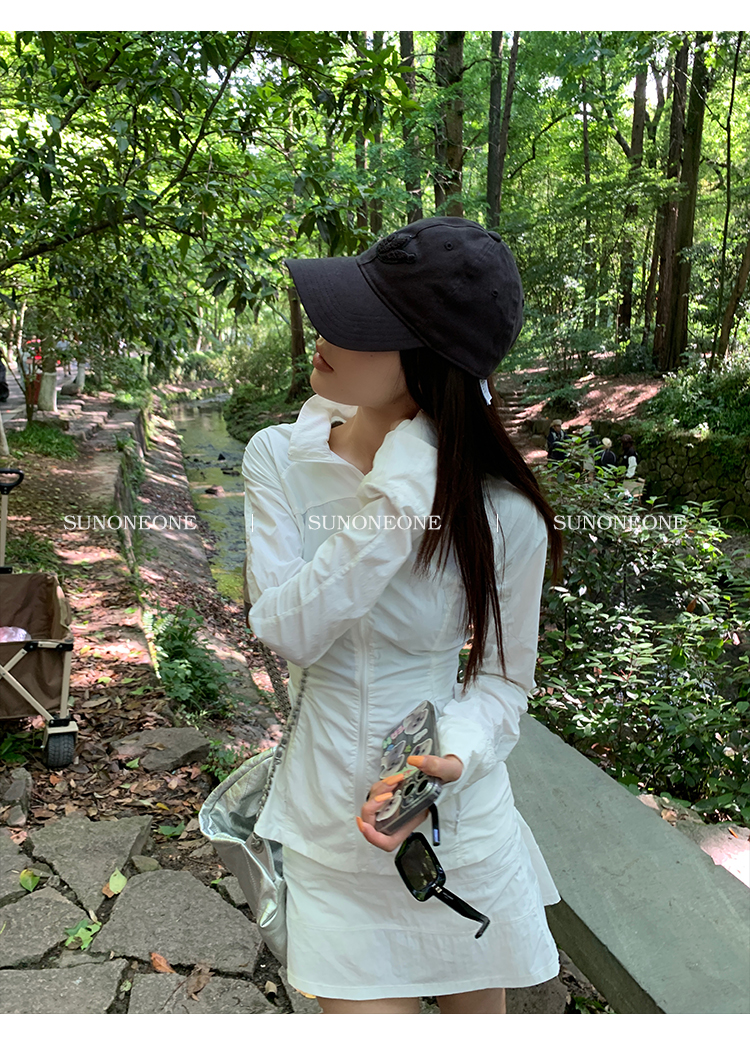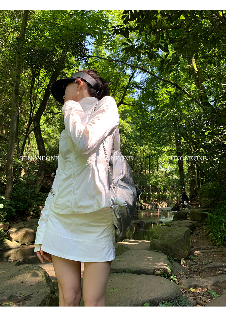 SUNONEONE 休閒防曬衣防曬套裝女夏季薄款修身連帽外套裙子兩件套