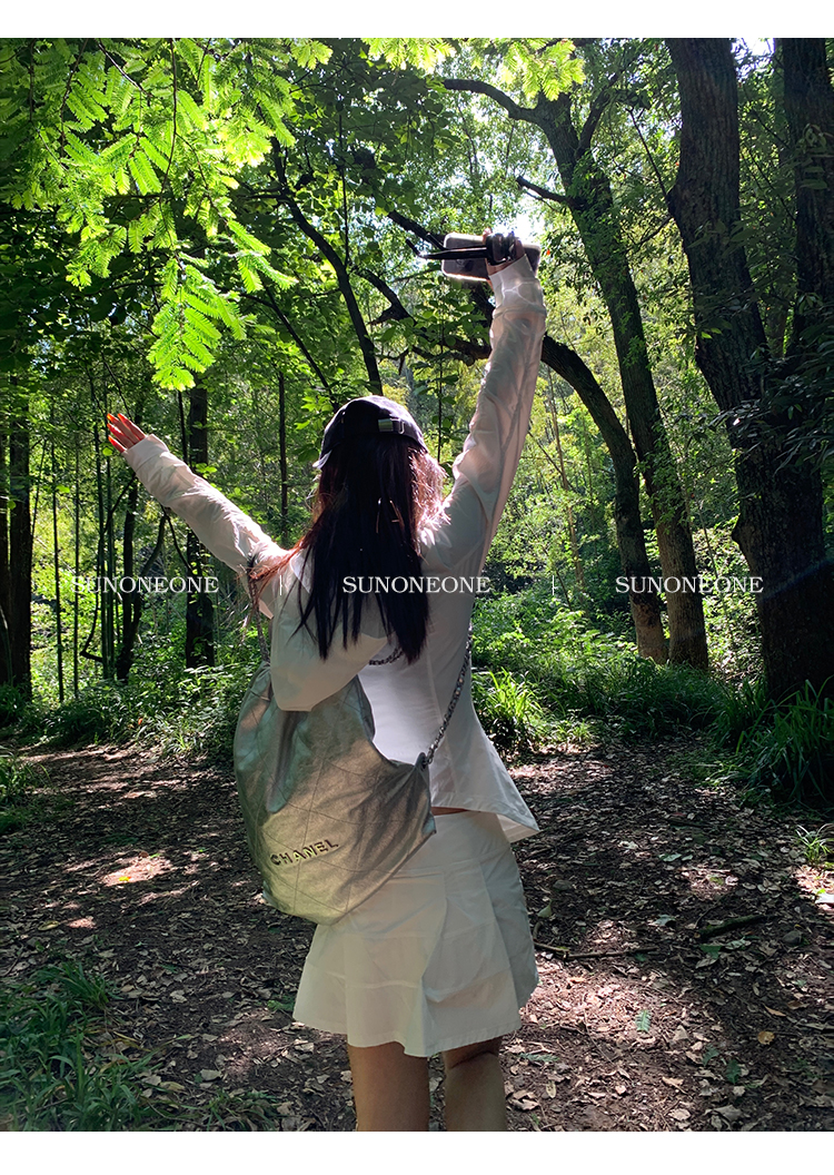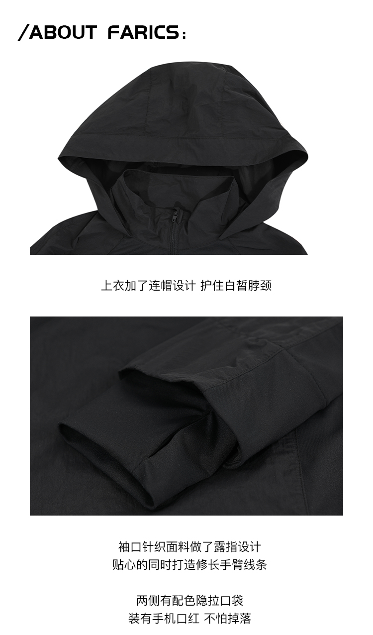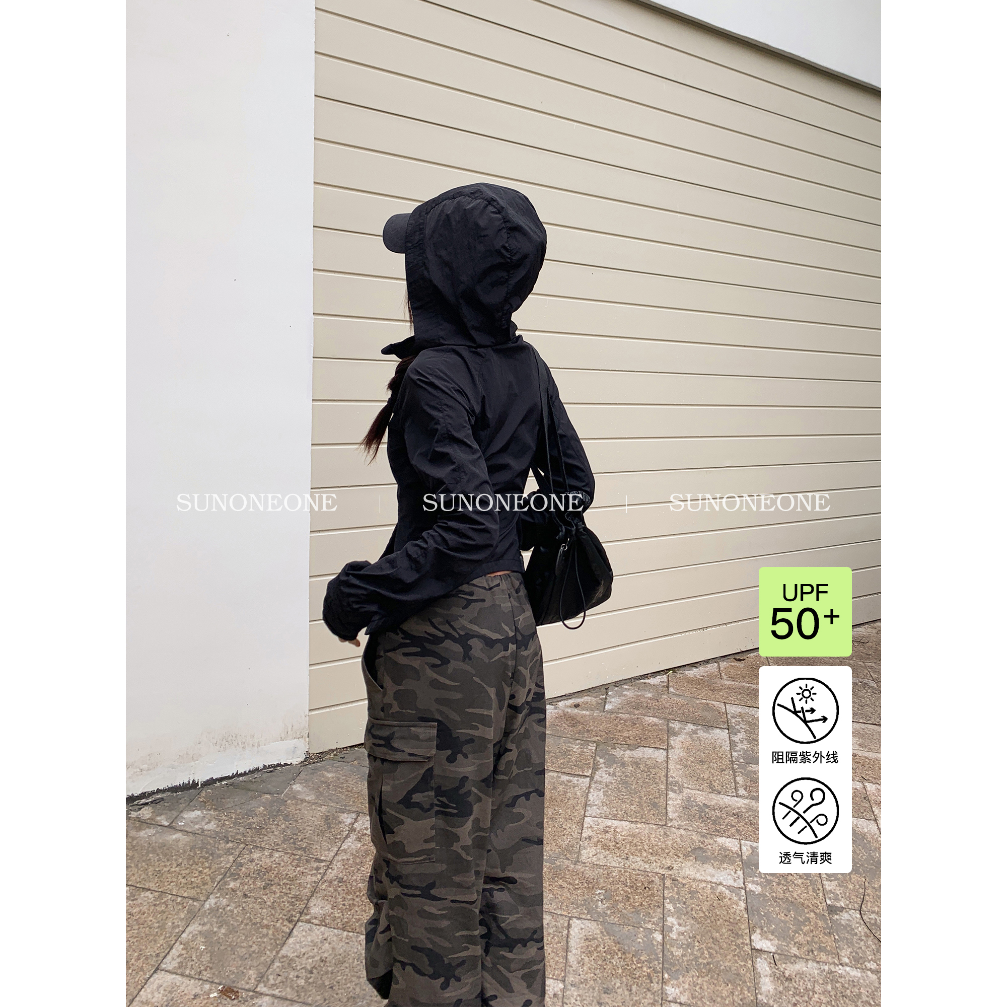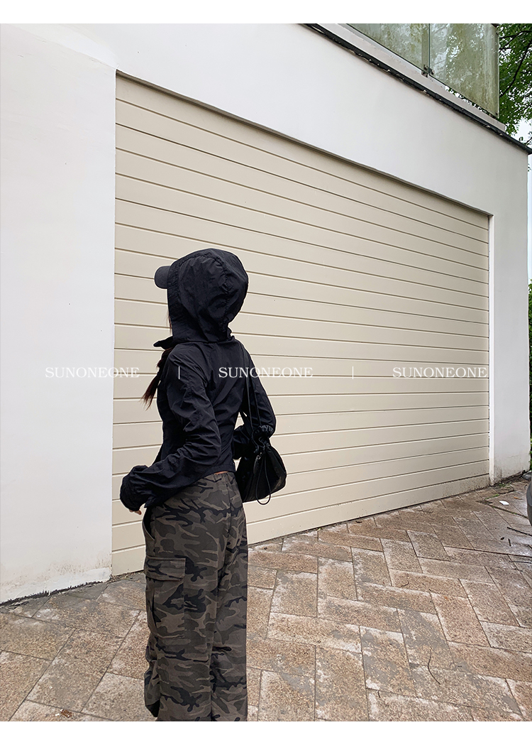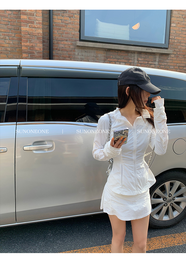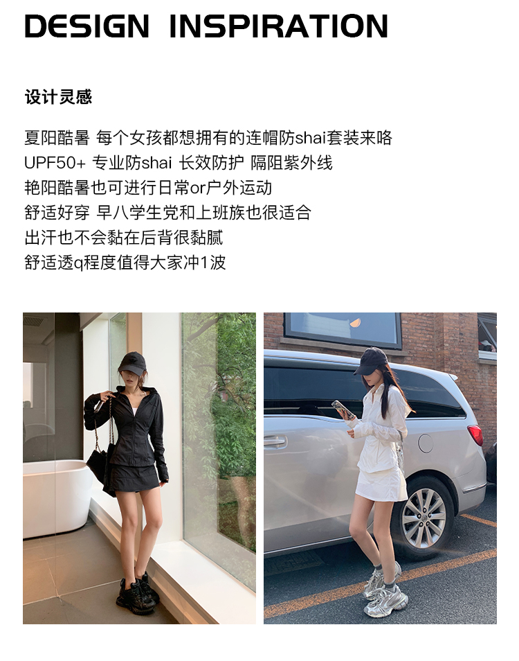 SUNONEONE 休閒防曬衣防曬套裝女夏季薄款修身連帽外套裙子兩件套