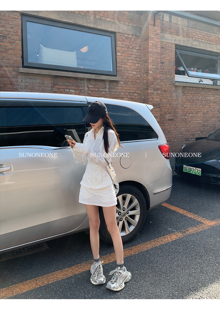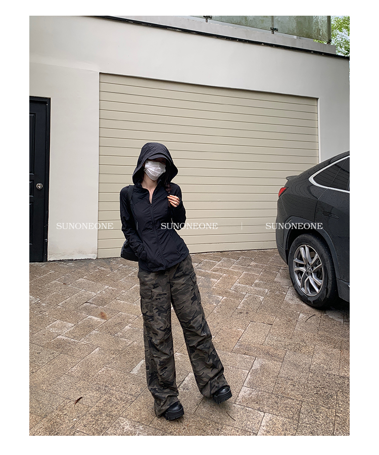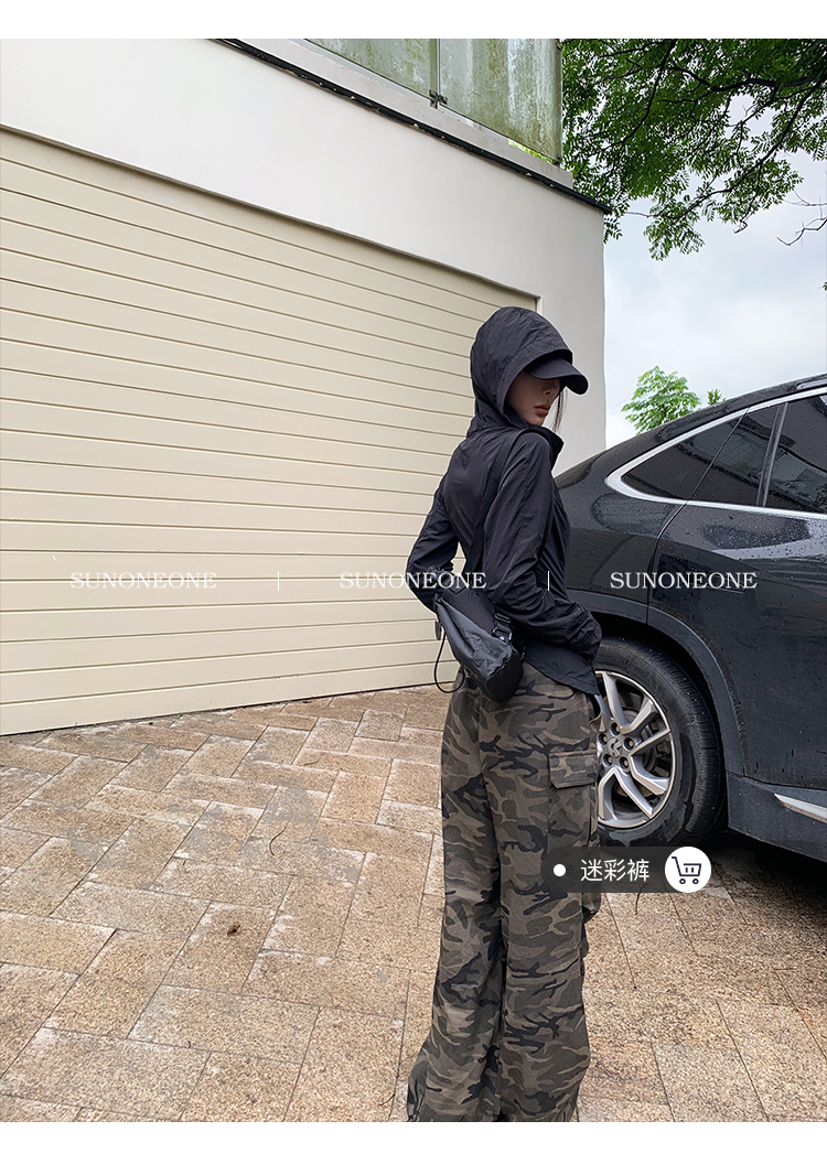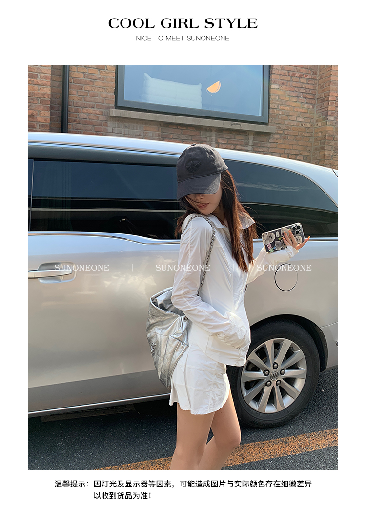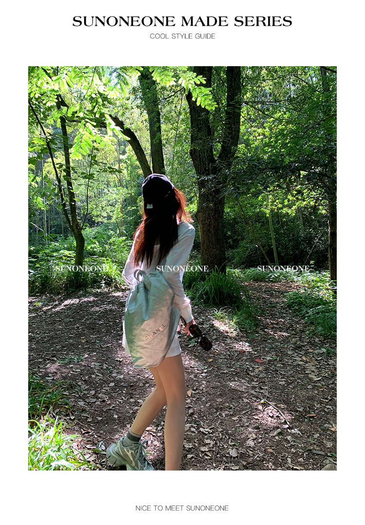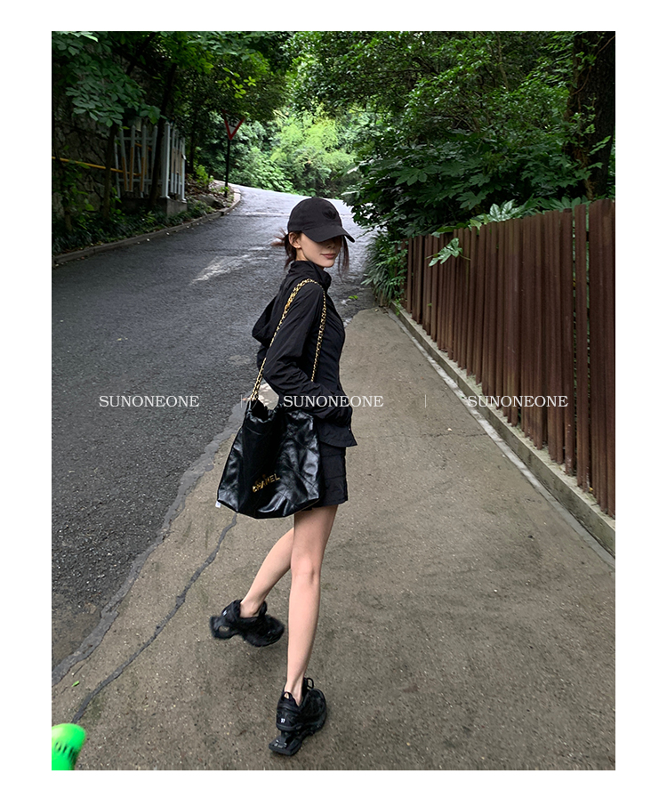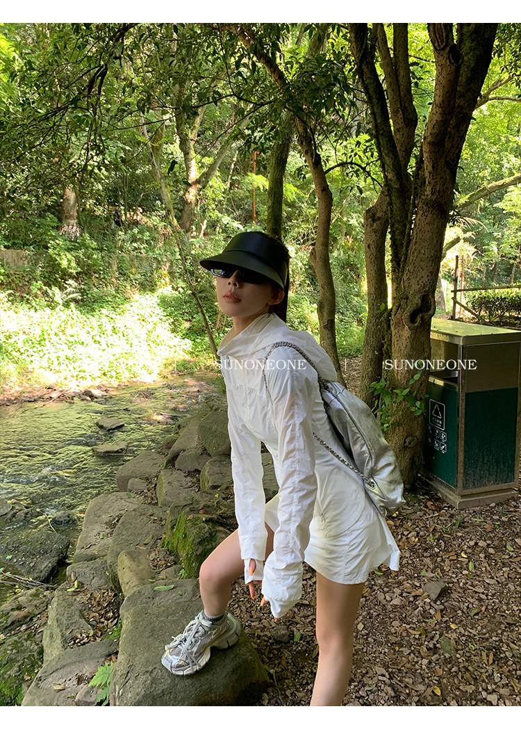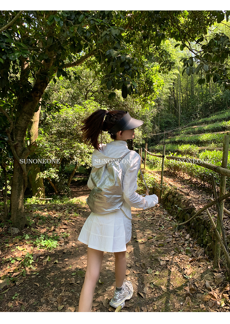 SUNONEONE 休閒防曬衣防曬套裝女夏季薄款修身連帽外套裙子兩件套