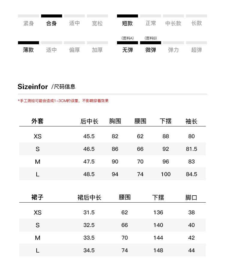 顏色分類 白色外套,白色半裙,黑色外套,黑色半裙