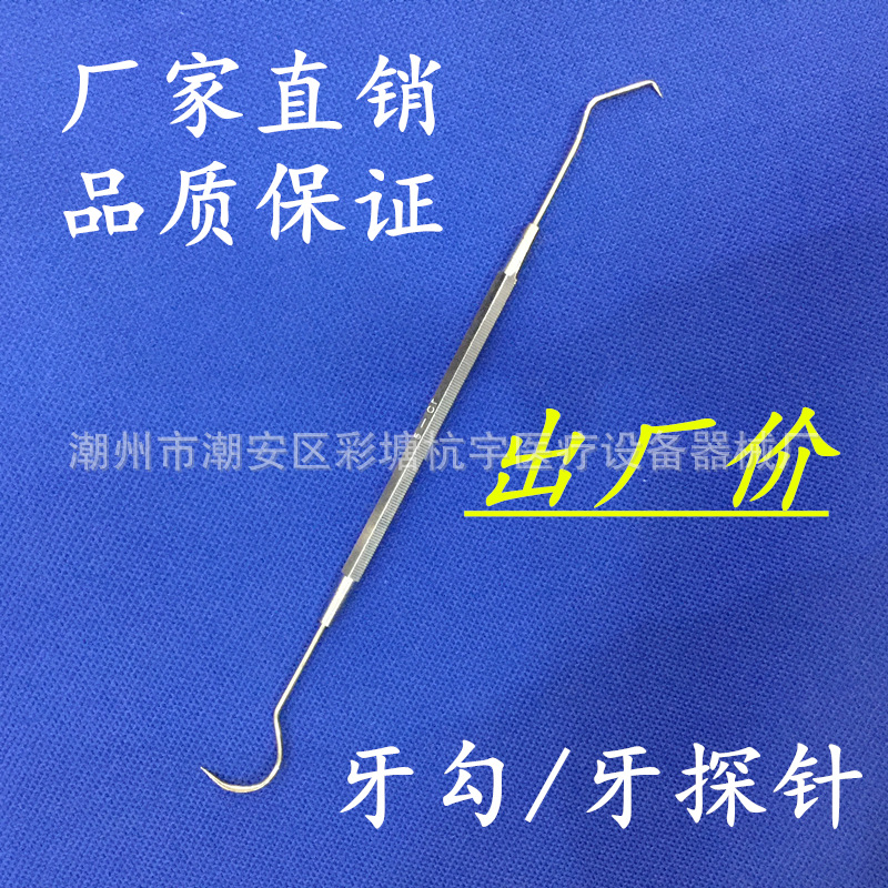 不锈钢牙科探针双头牙探针牙医清洁勾器械口腔检查工具牙钩三件套