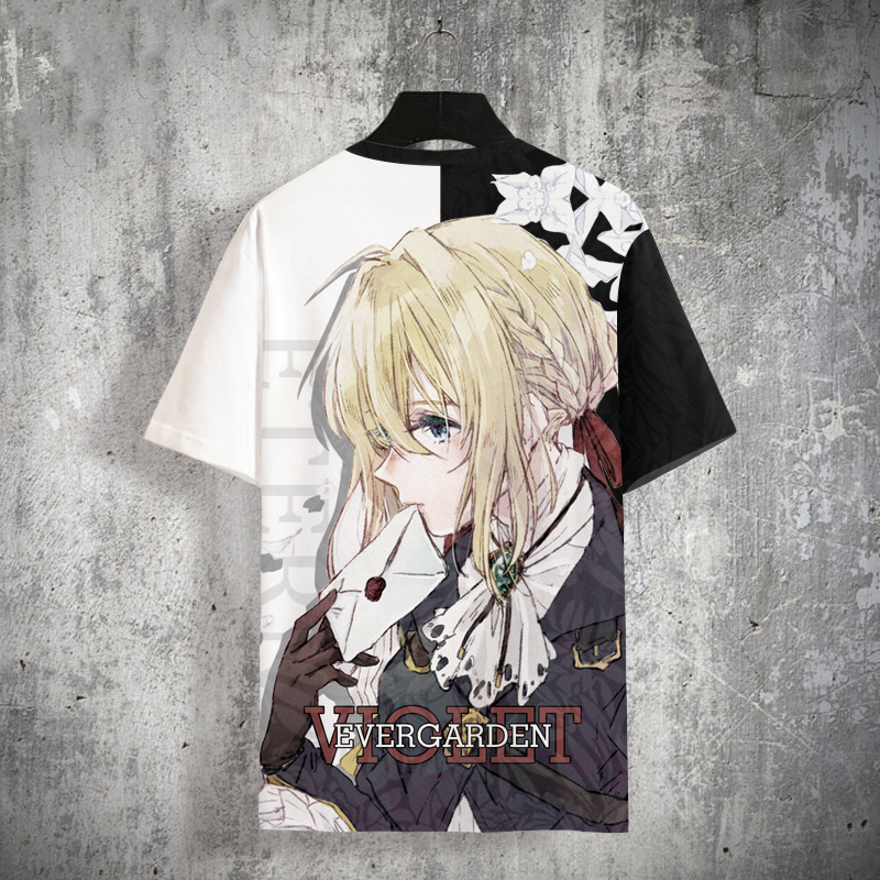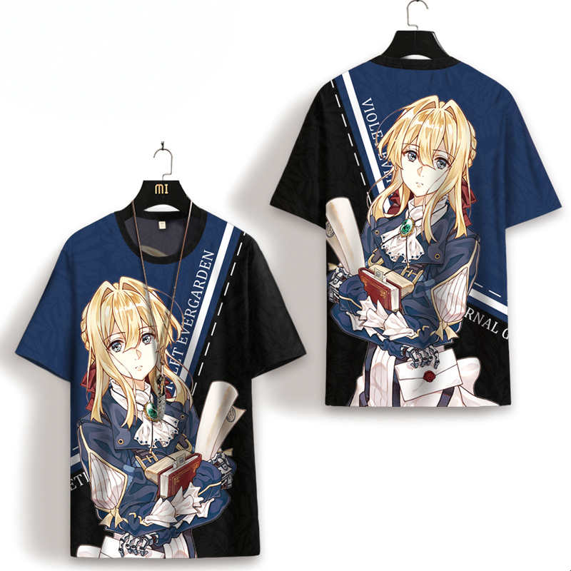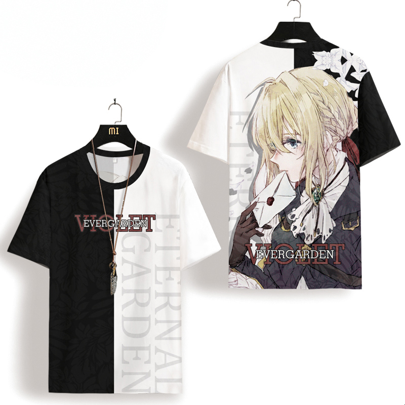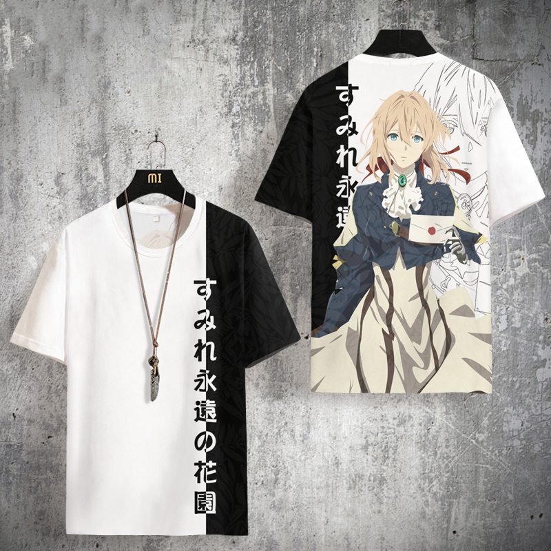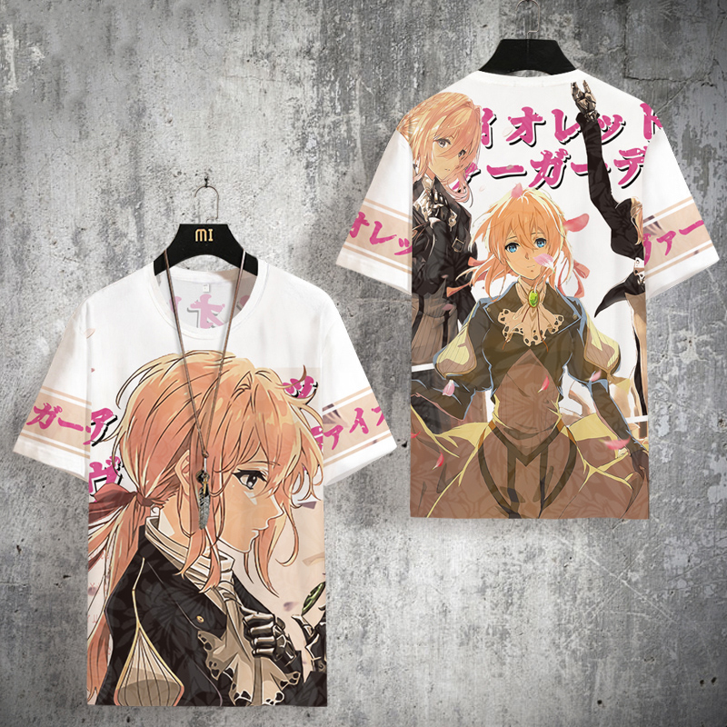 紫羅蘭永恆花園動漫二次元短袖T恤男士夏季薇爾莉特衣服大尺碼半袖