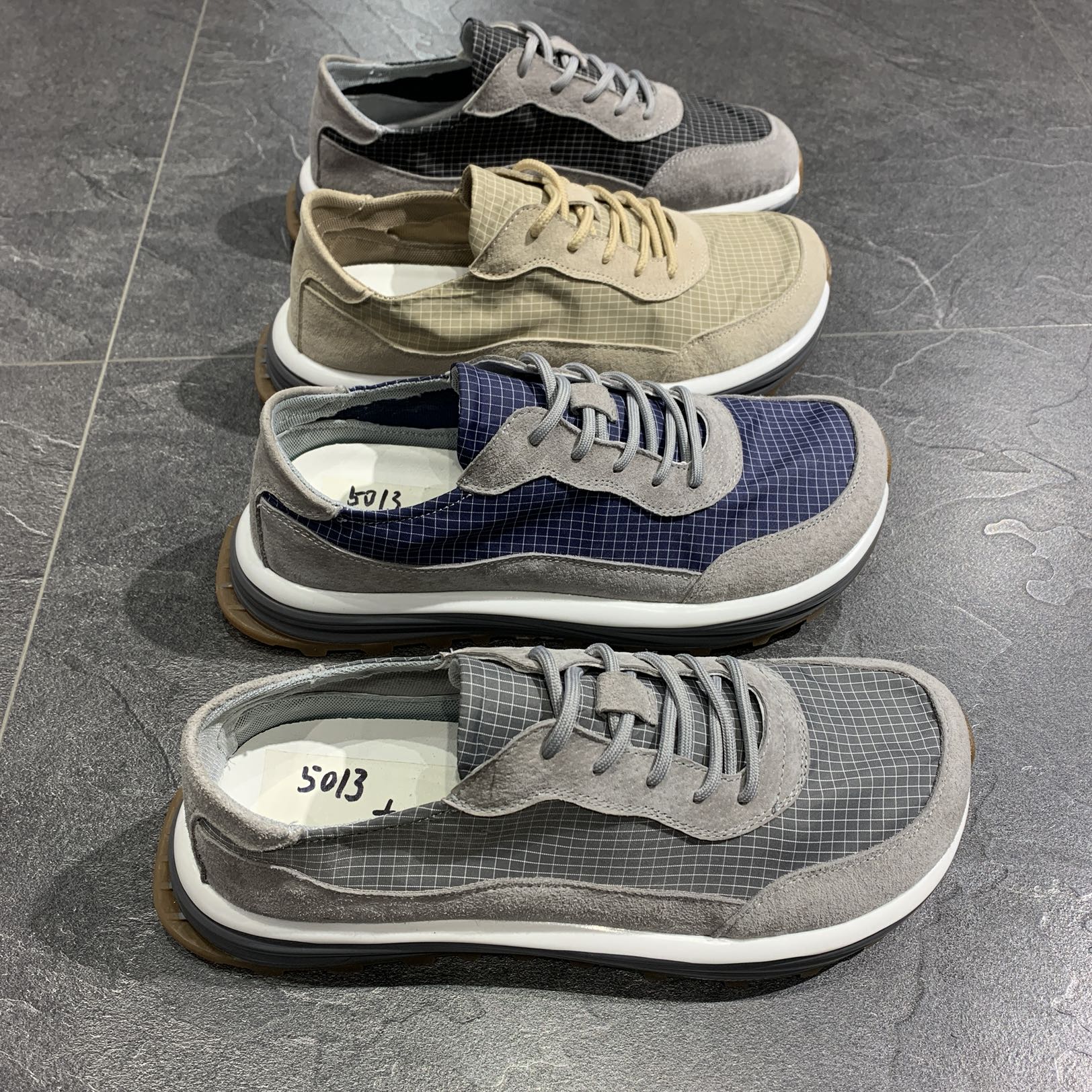 男鞋2023夏季新款小醜鞋寬腳高腳面腳肥鞋透氣冰絲布鞋格紋休閒鞋