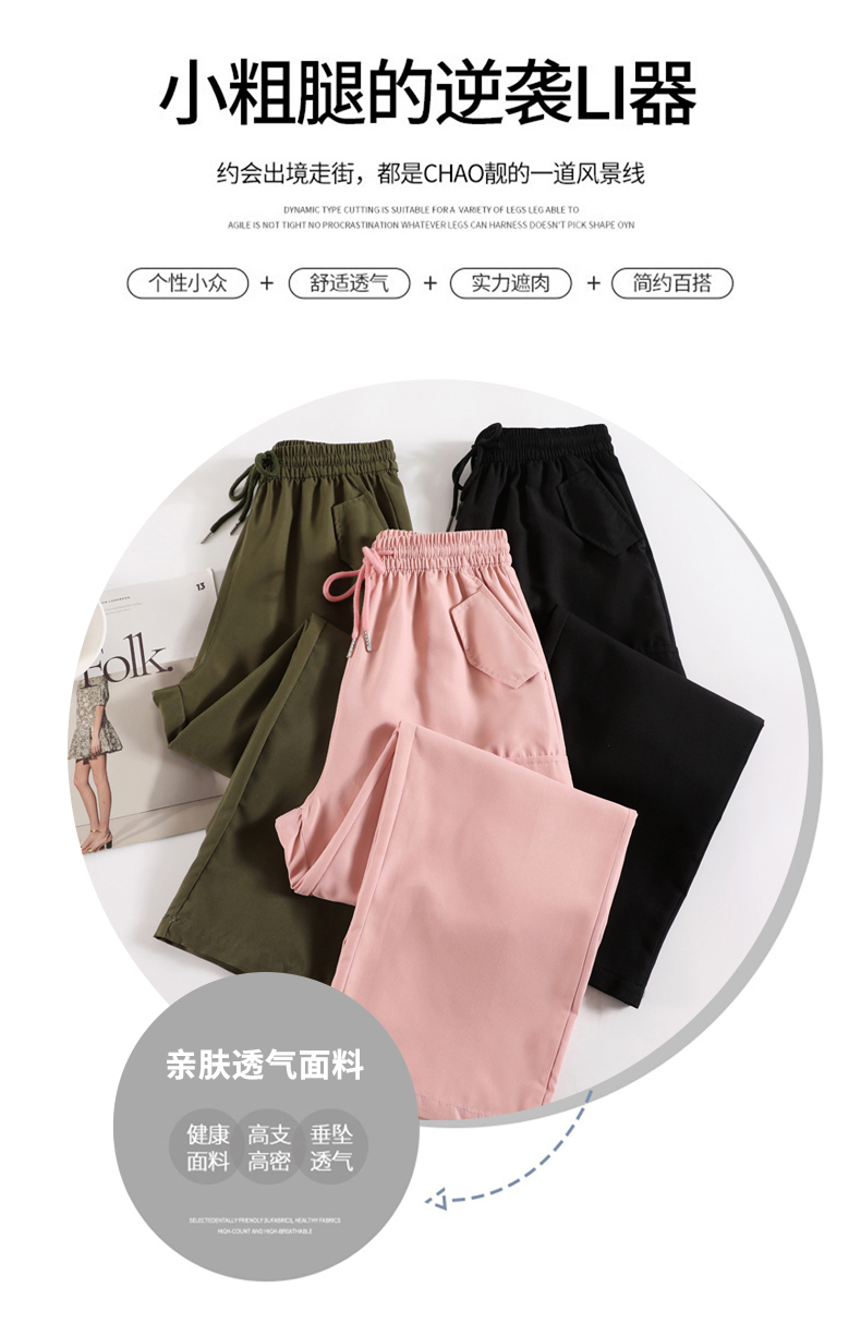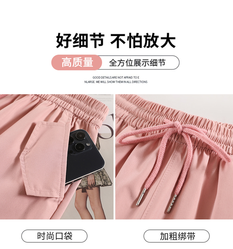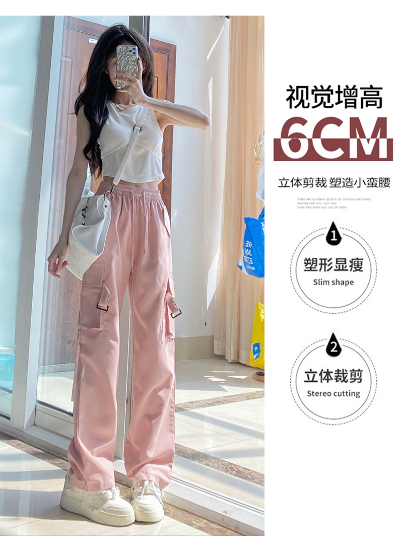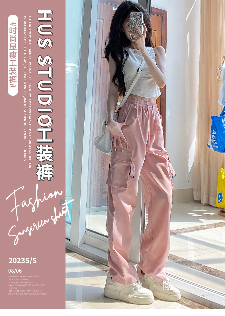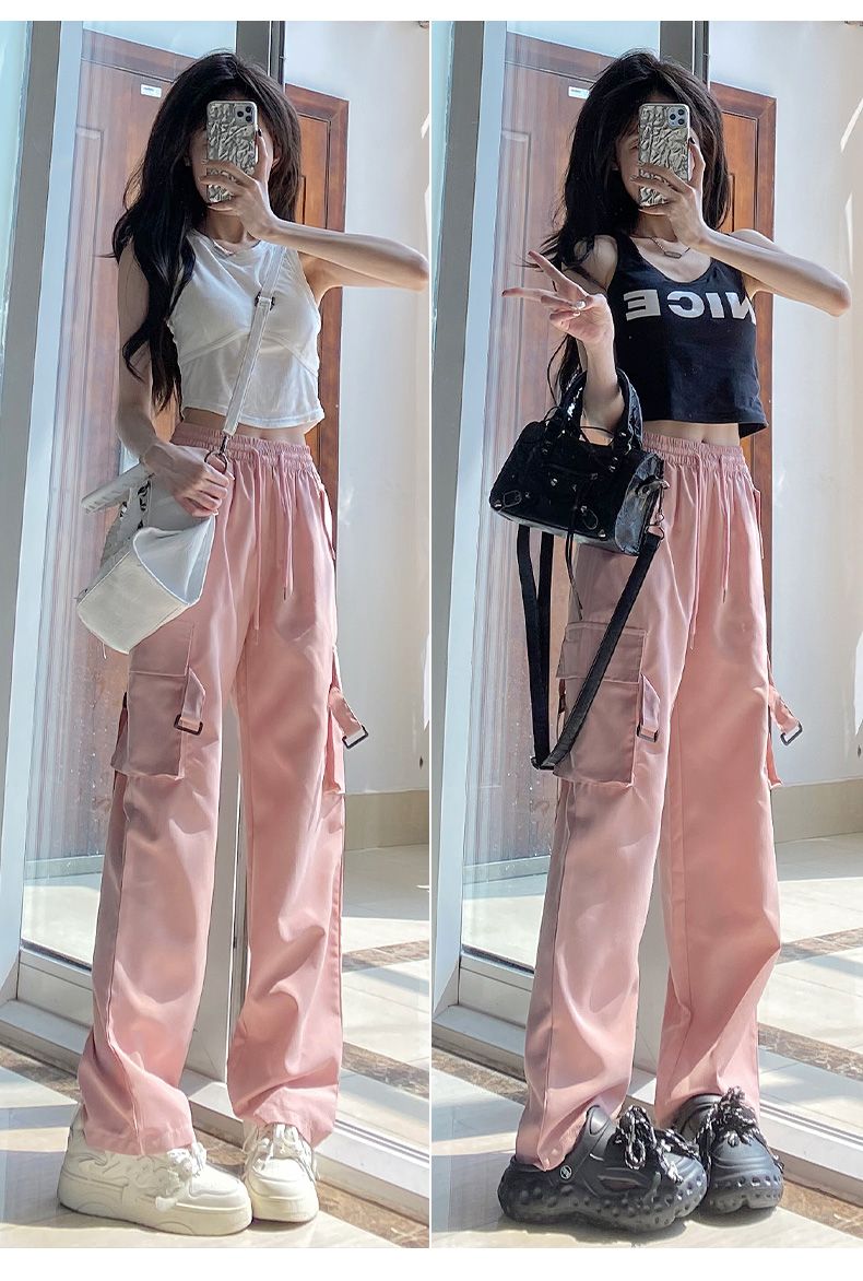 粉色工裝褲女春秋2023新款高腰顯瘦垂感闊腿窄版休閒美式速乾運動
