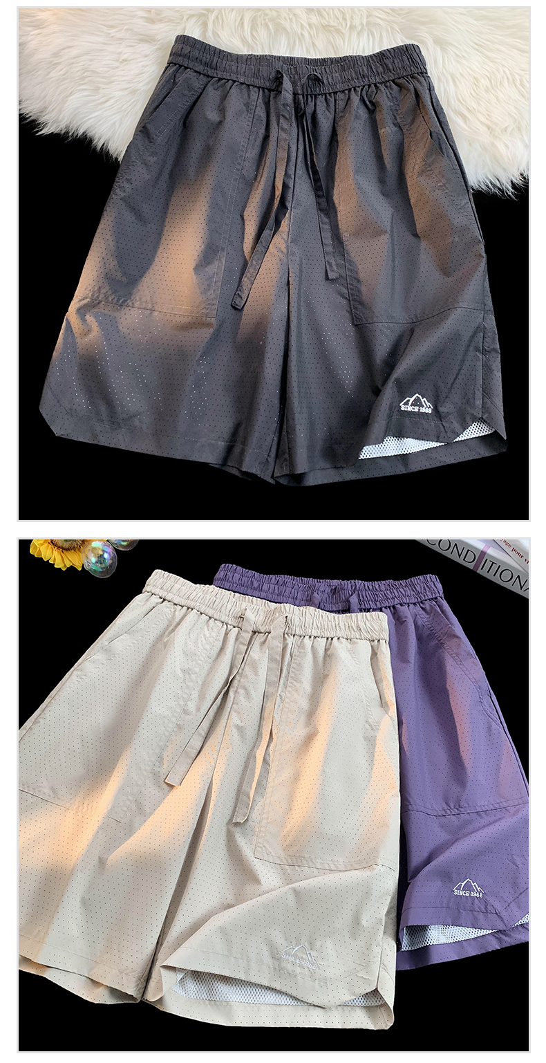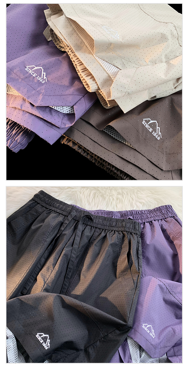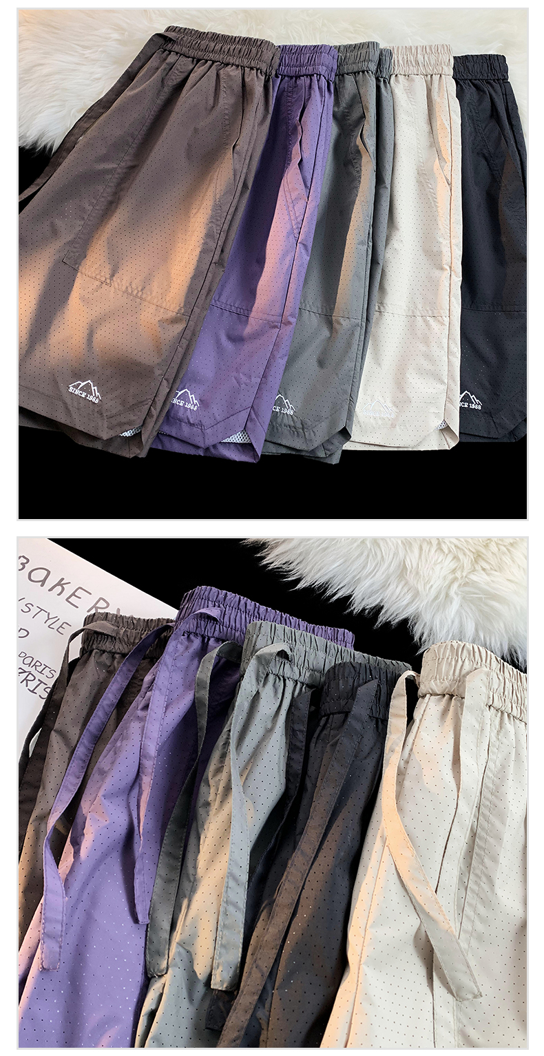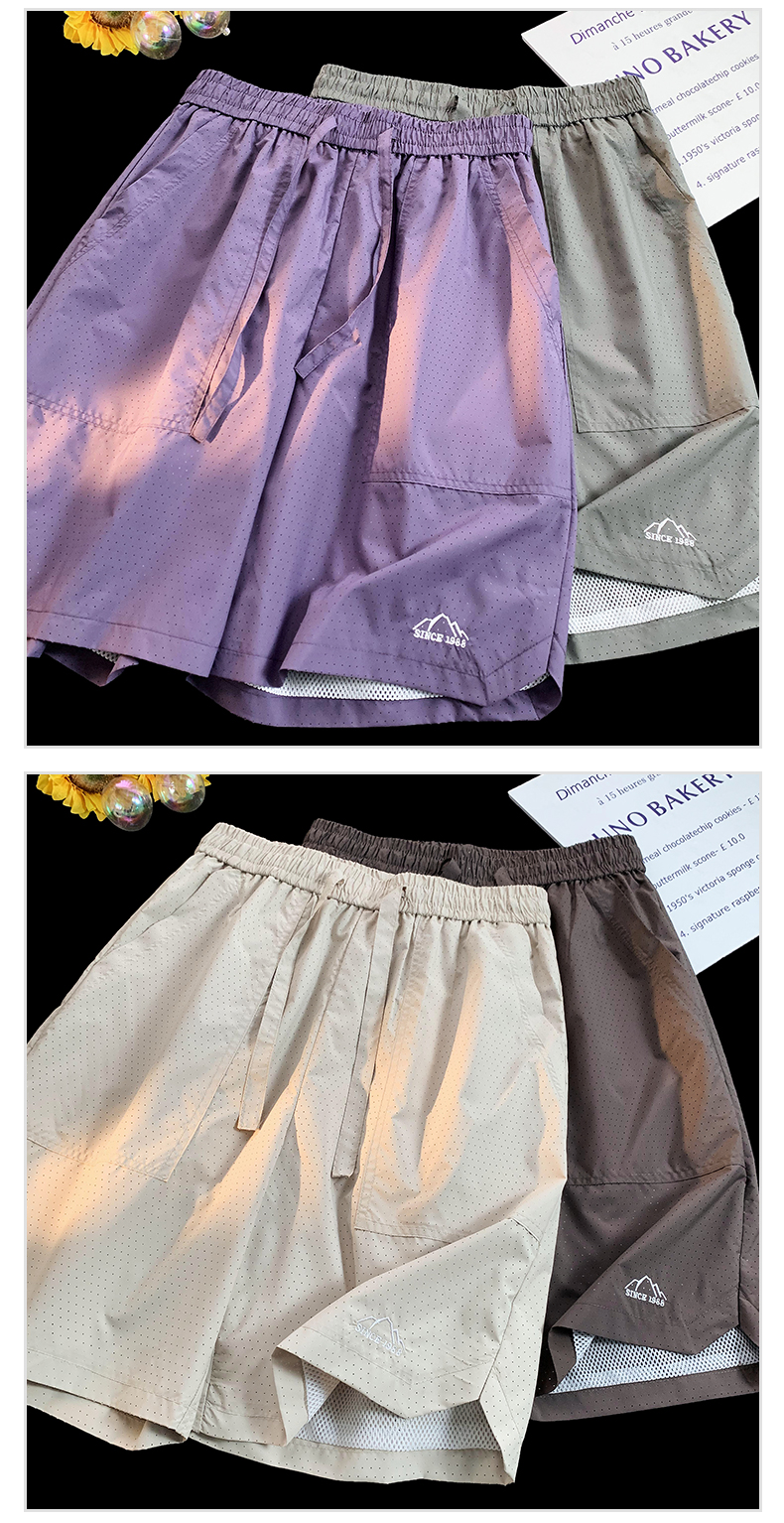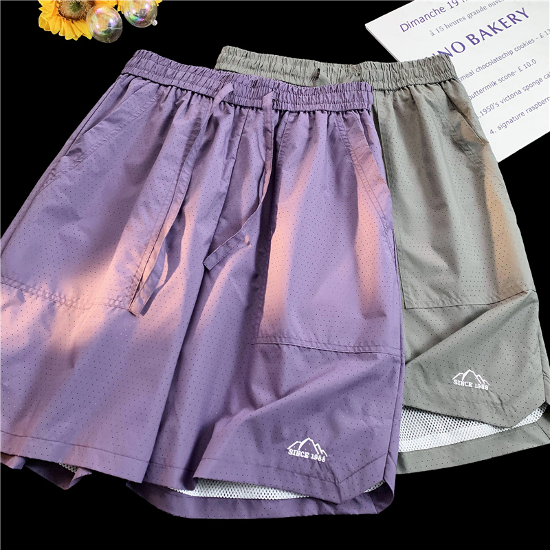 大尺碼運動短褲女夏外穿紫色網眼透氣速乾美式復古闊腿情侶五分褲子