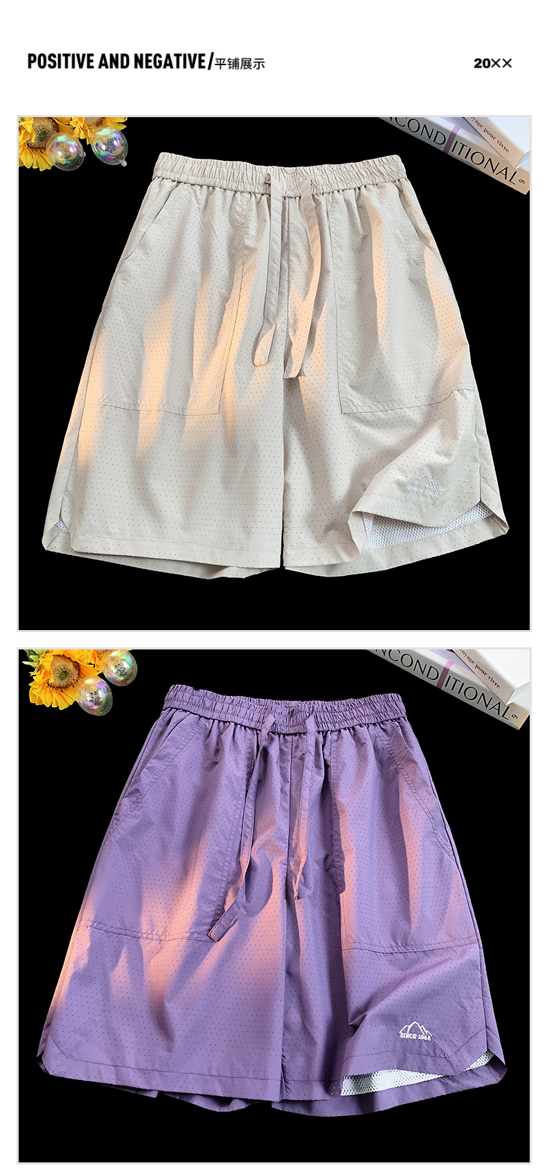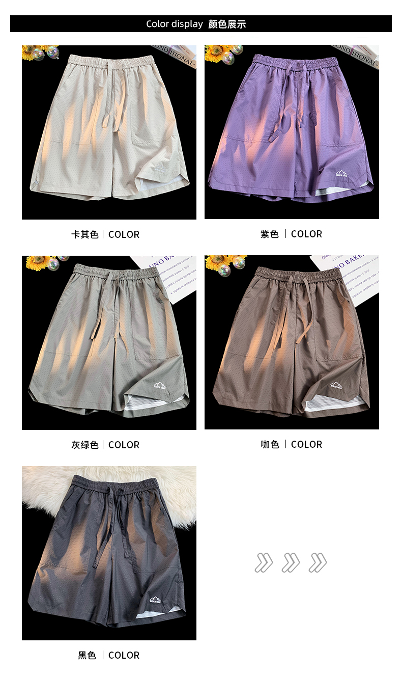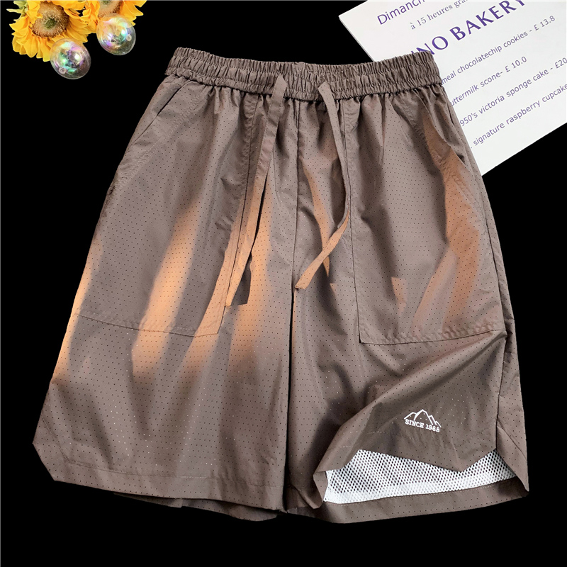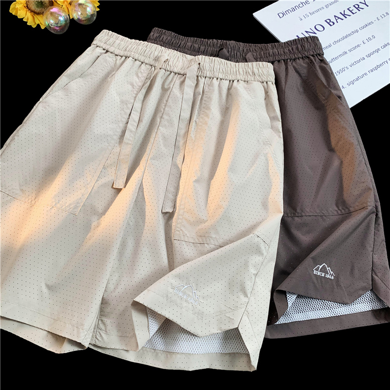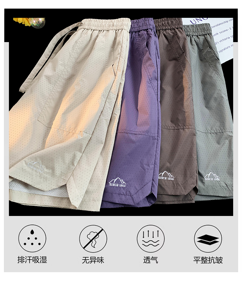 大尺碼運動短褲女夏外穿紫色網眼透氣速乾美式復古闊腿情侶五分褲子