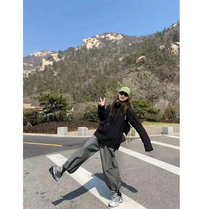 戶外露營穿搭衝鋒衣搭配的褲子女速乾工裝褲套裝小個子登山衝鋒褲