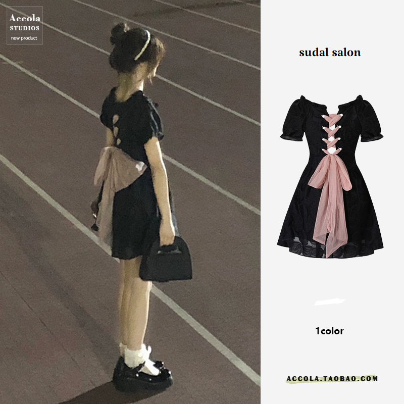 夏季新款收腰顯瘦設計感綁帶蝴蝶結洋裝女法式氣質炸街茶歇長裙