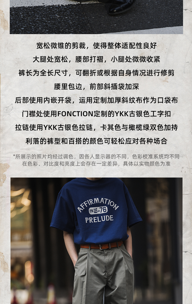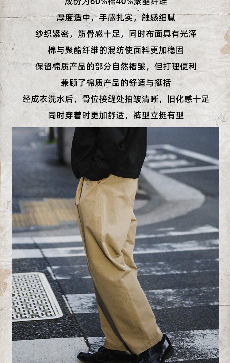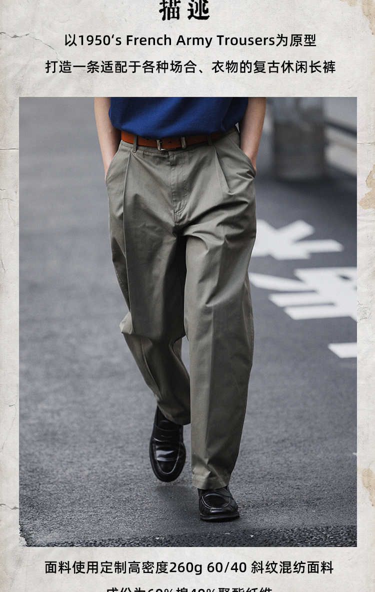 FONCTION REMAKE FRENCH M-52 CHINO 復古單褶寬鬆微錐休閒長褲