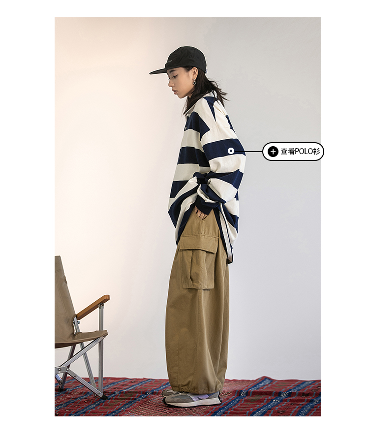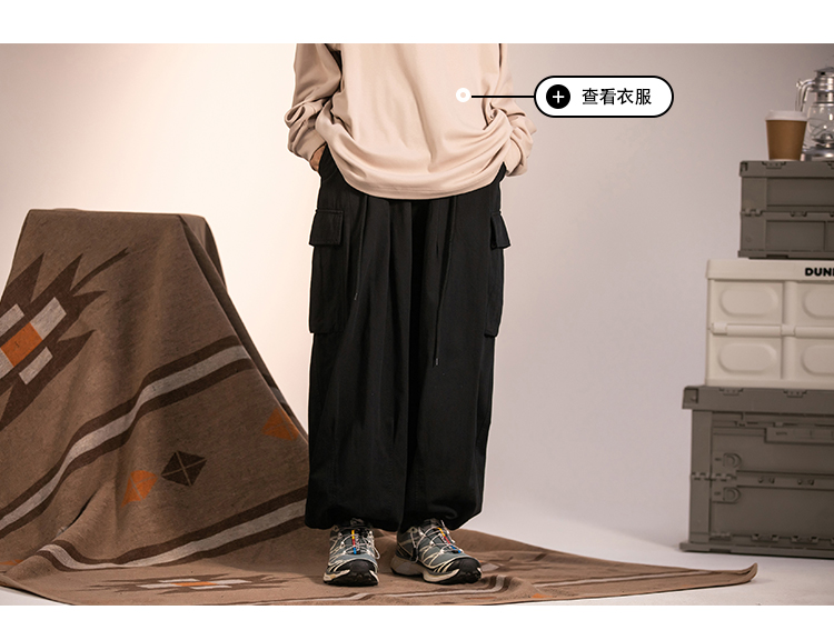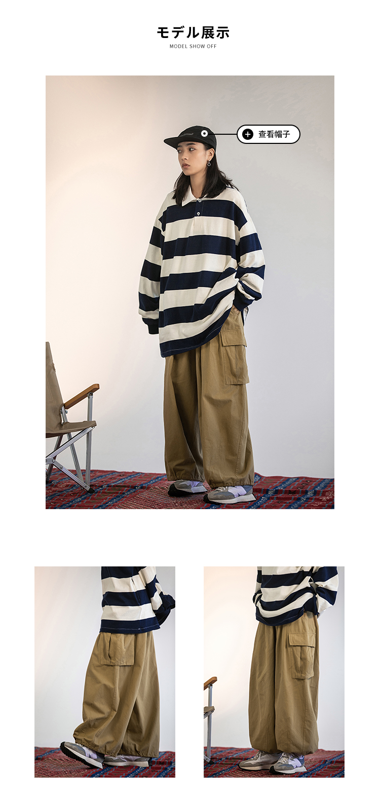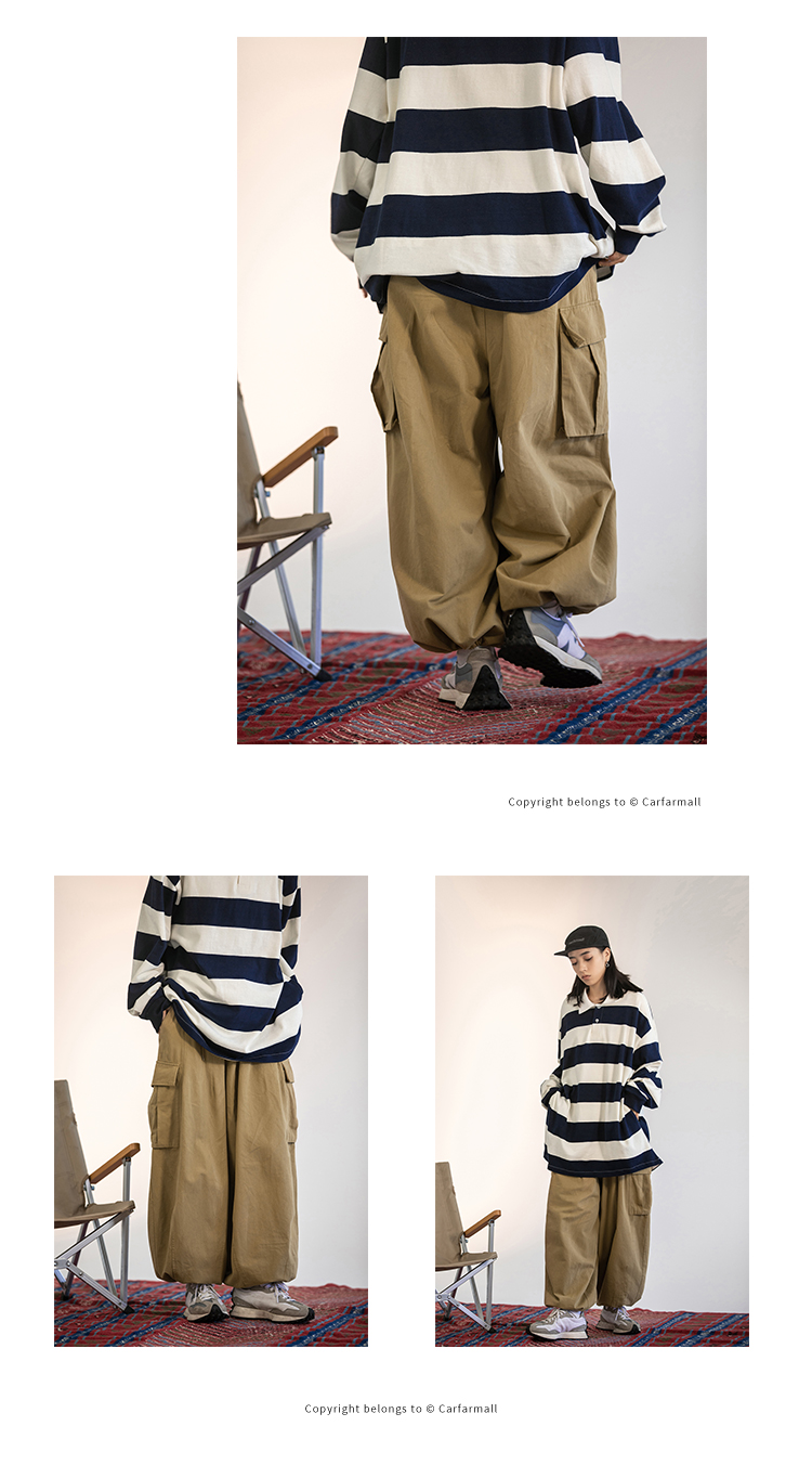 七哥火星局春秋街頭復古寬鬆直筒闊腿休閒褲日系工裝褲女束腳潮牌