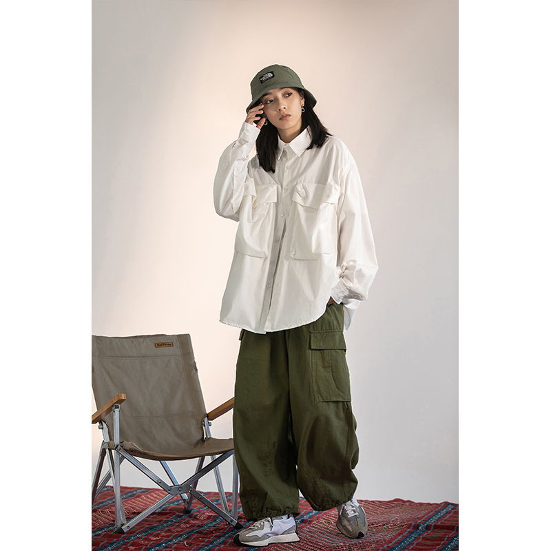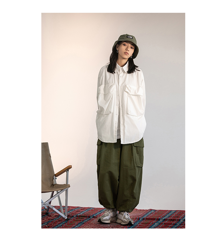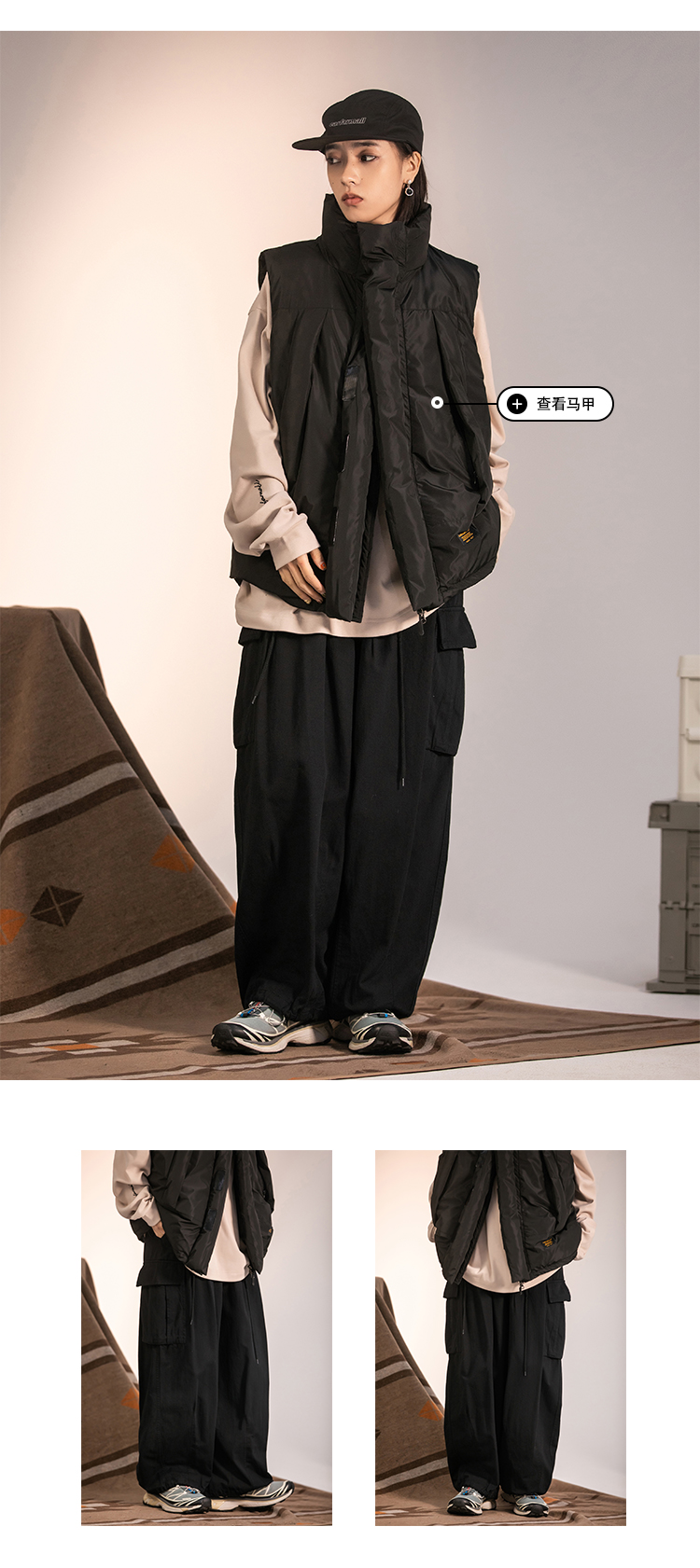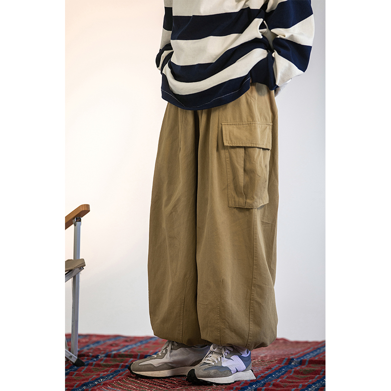 七哥火星局春秋街頭復古寬鬆直筒闊腿休閒褲日系工裝褲女束腳潮牌