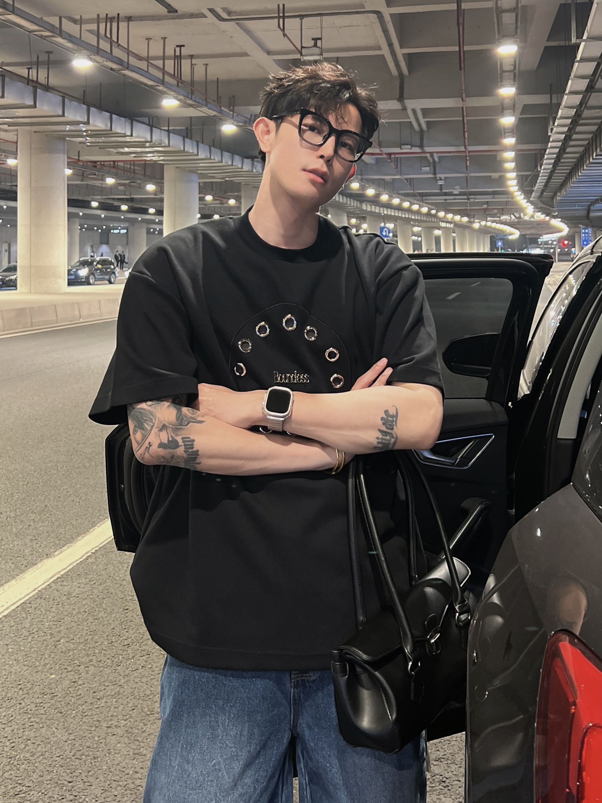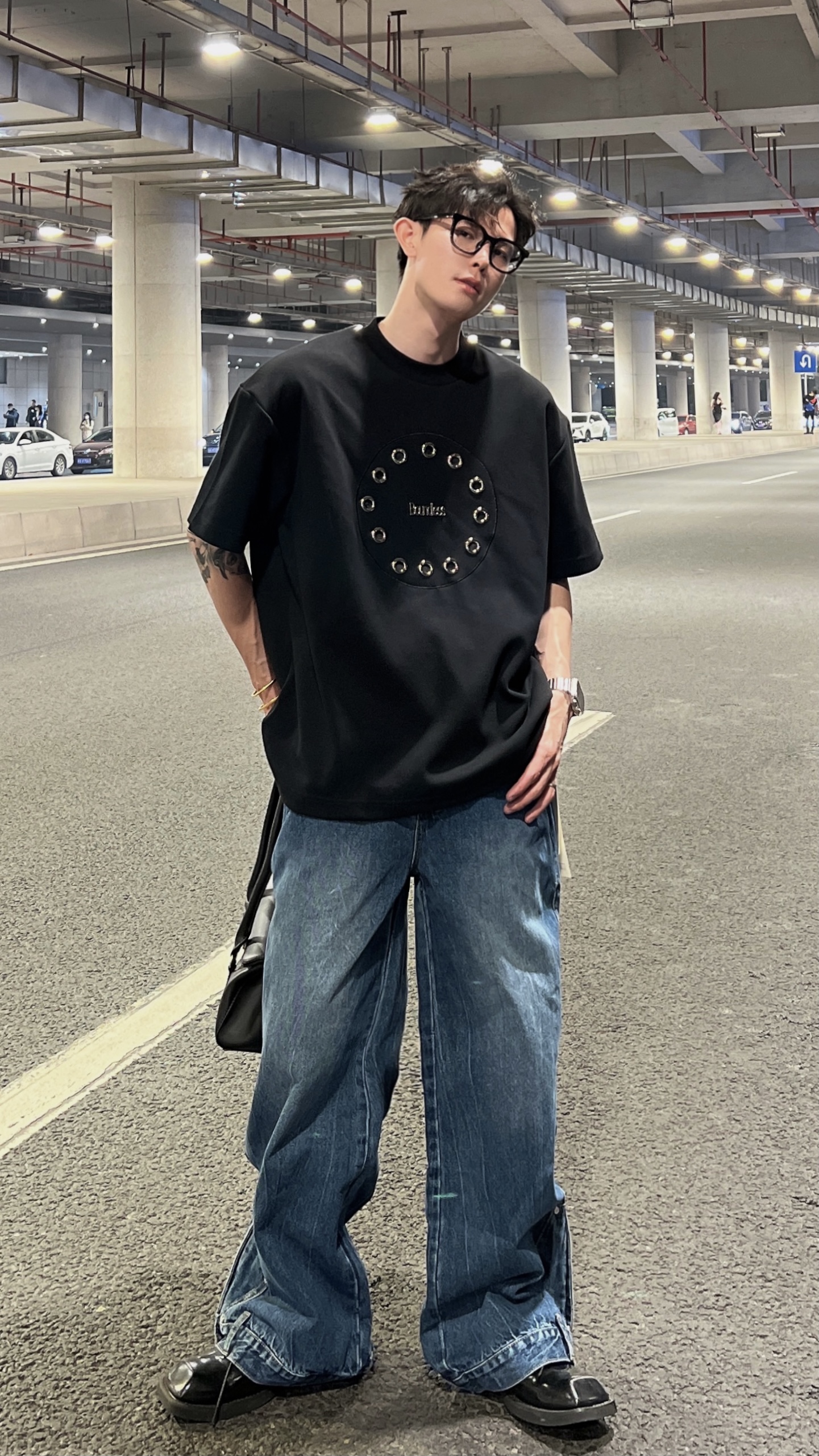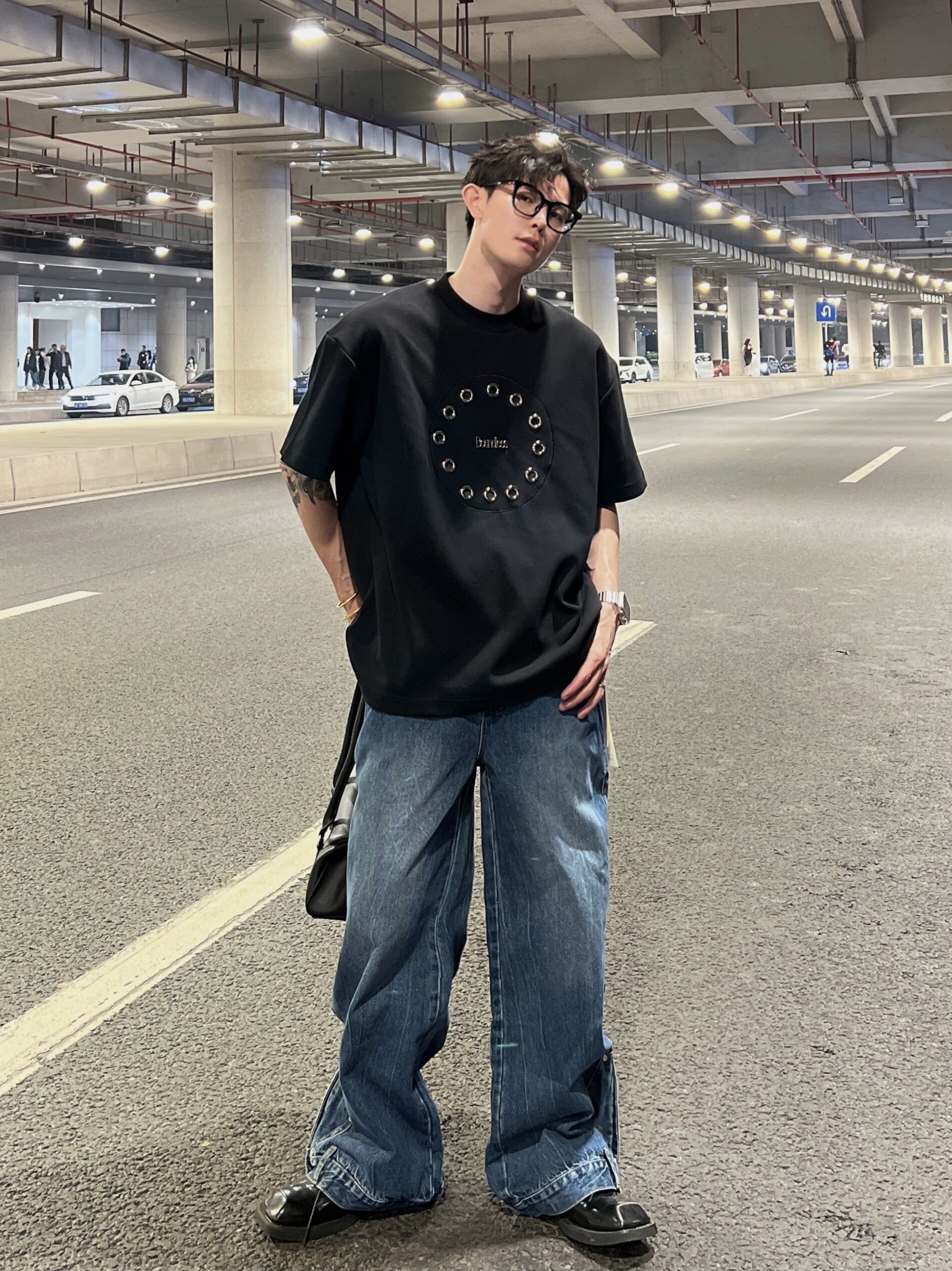 THREE23SS夏季原創小眾高級感金屬圓環設計感短袖T恤百搭上衣潮酷