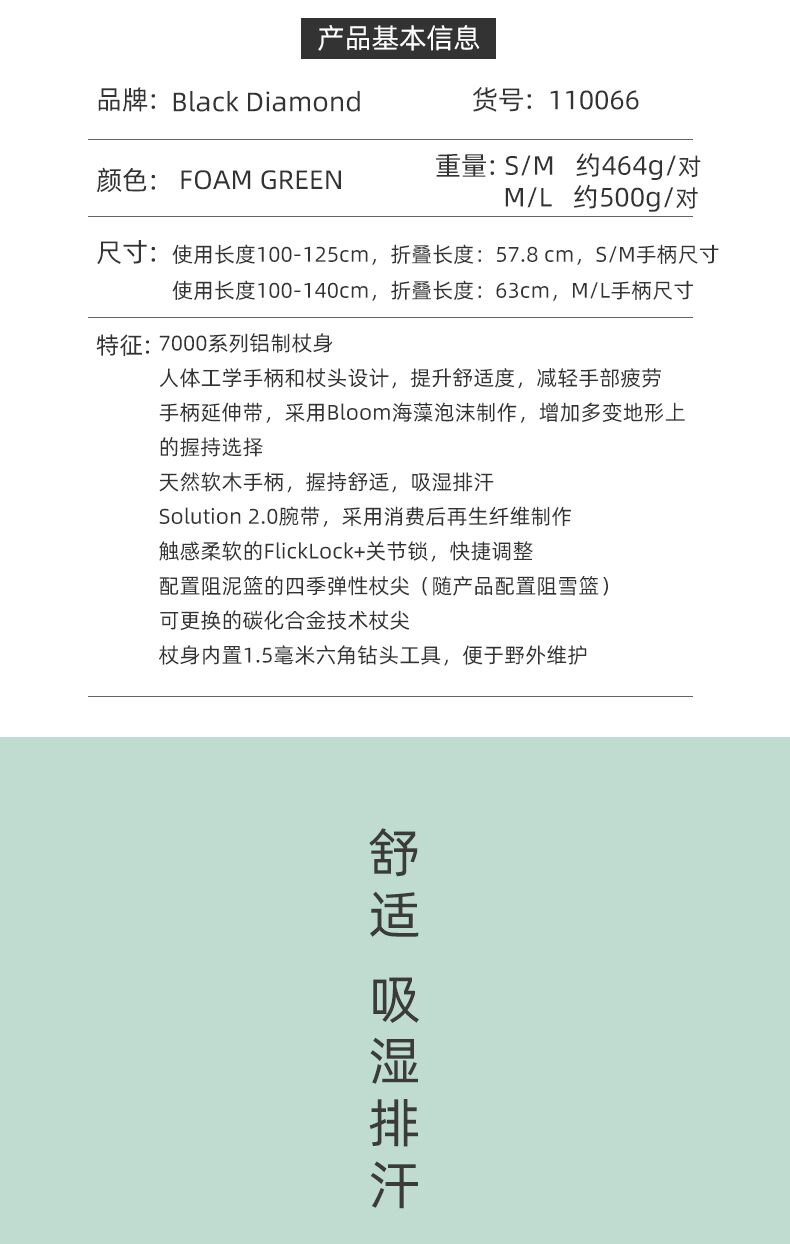 Black Diamond黑鑽BD登山手杖戶外徒步杖鋁合金可調伸縮杖110066