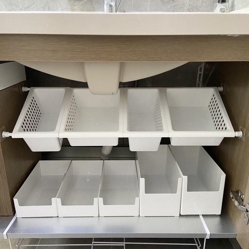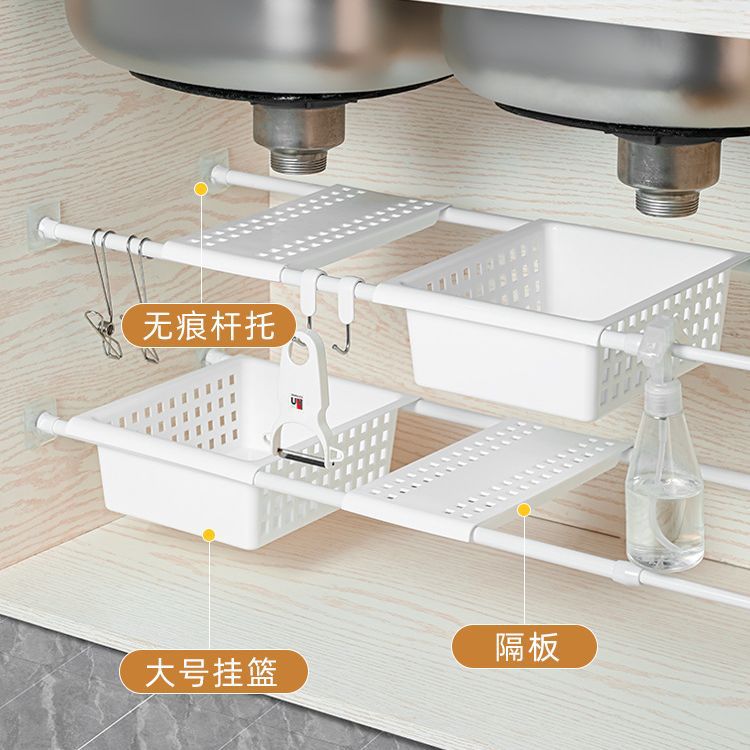 厨房下水槽置物架免打孔可伸缩橱柜收纳盒抽屉式杂物分类整理篮子