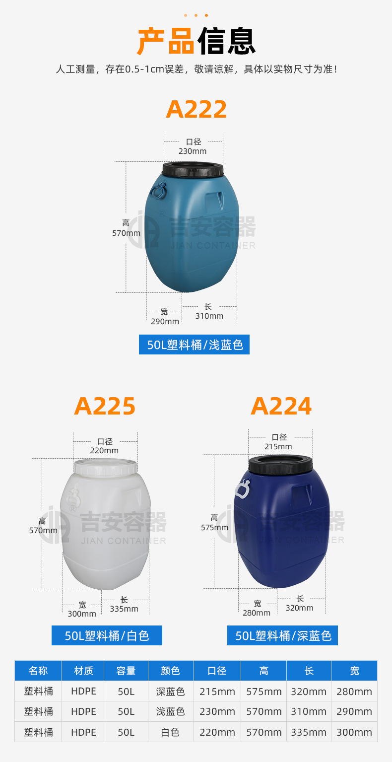 颜色 50L化工桶-浅蓝色,50L化工桶-深蓝色,50L化工桶-白色