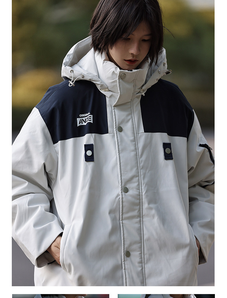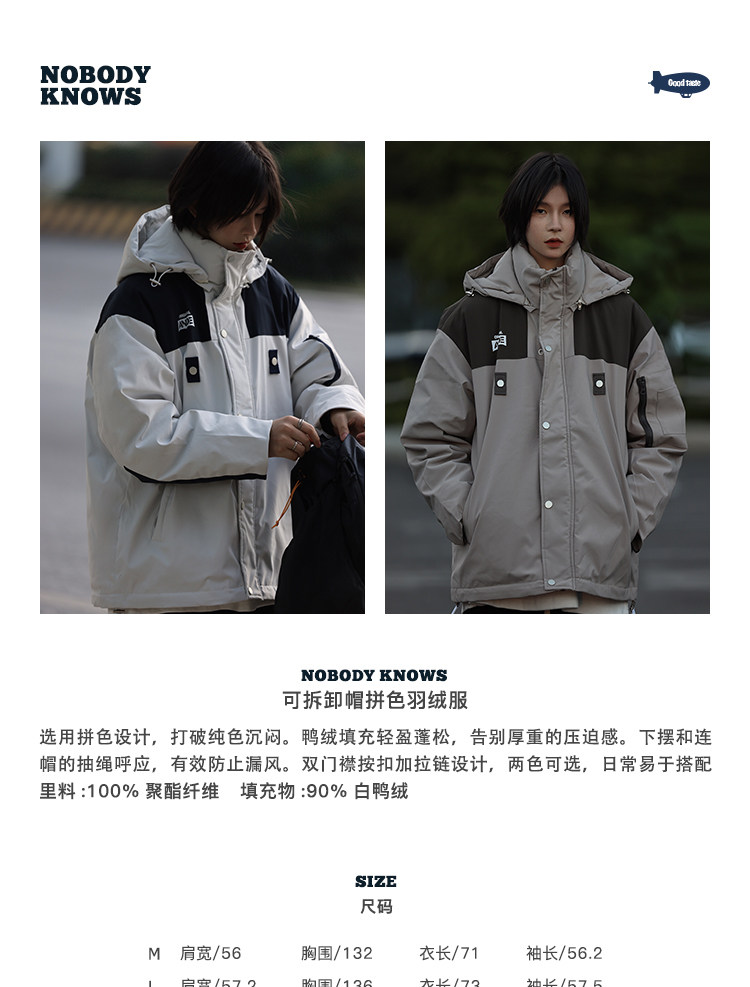 Nobodyknows冬季白鴨絨潮棉襖女防潑衝鋒衣加厚保暖外套羽絨服男