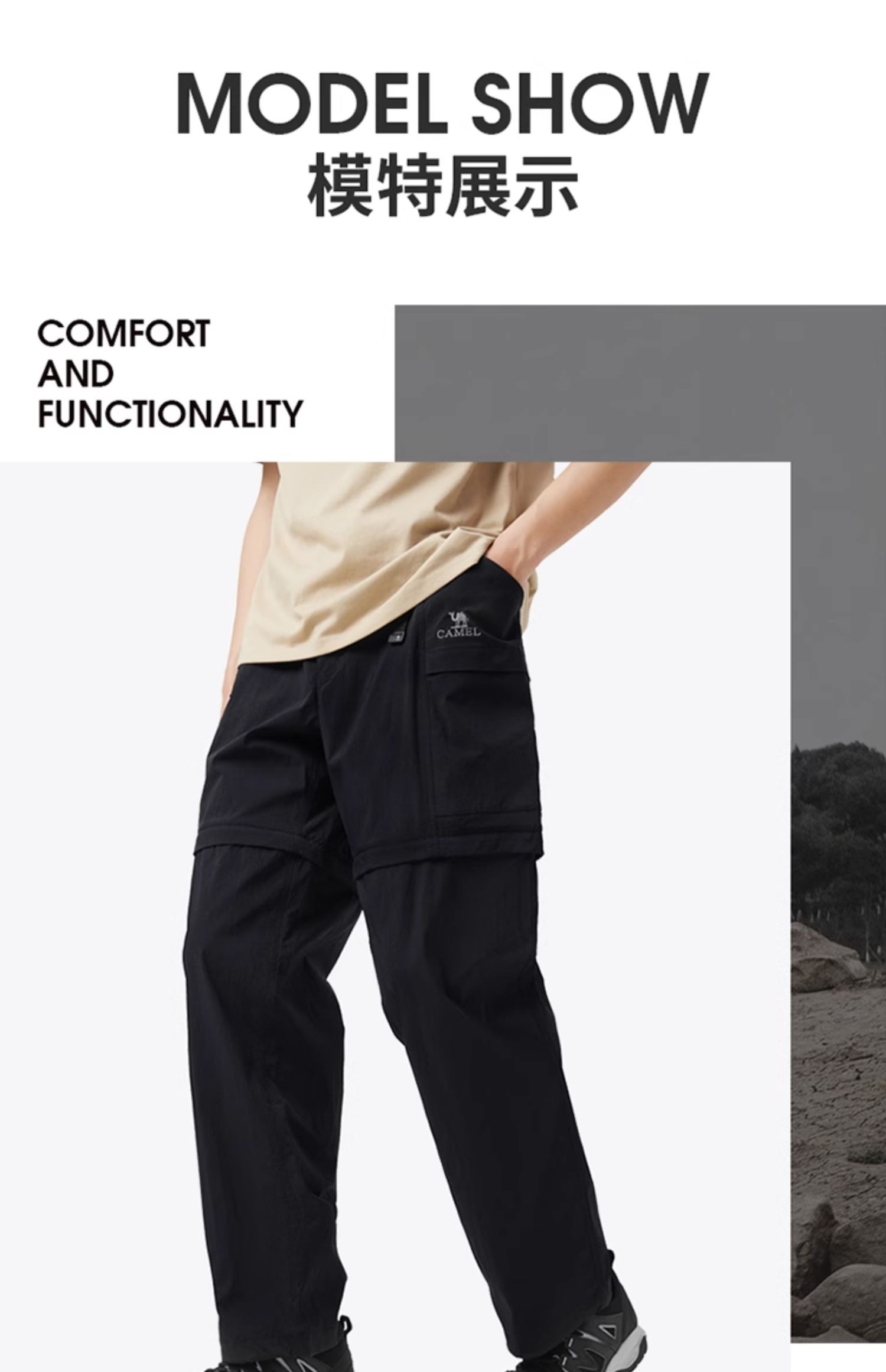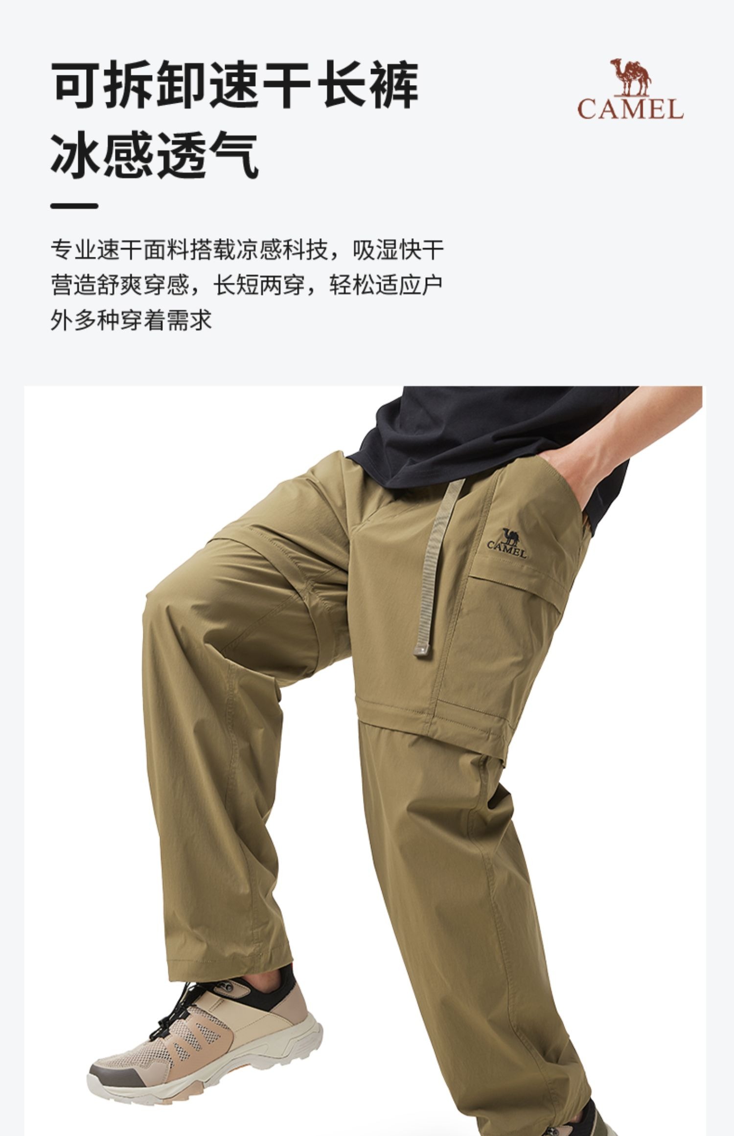 【傘兵機能褲】駱駝戶外冰感速乾長褲男可拆卸短兩穿徒步登山服裝
