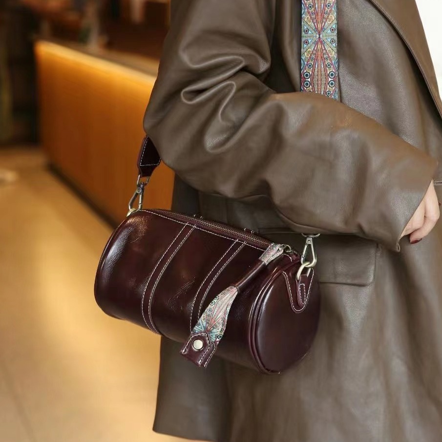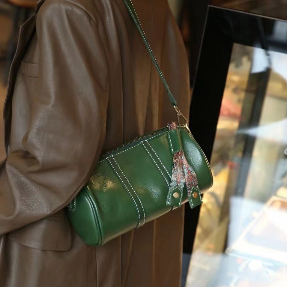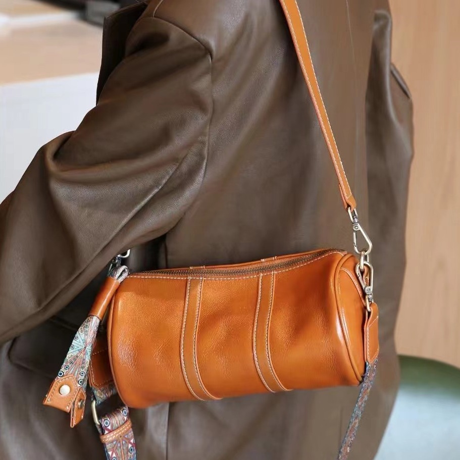 头层牛皮新款斜挎包包女植糅牛皮复古单肩包个性化小众高感女包包