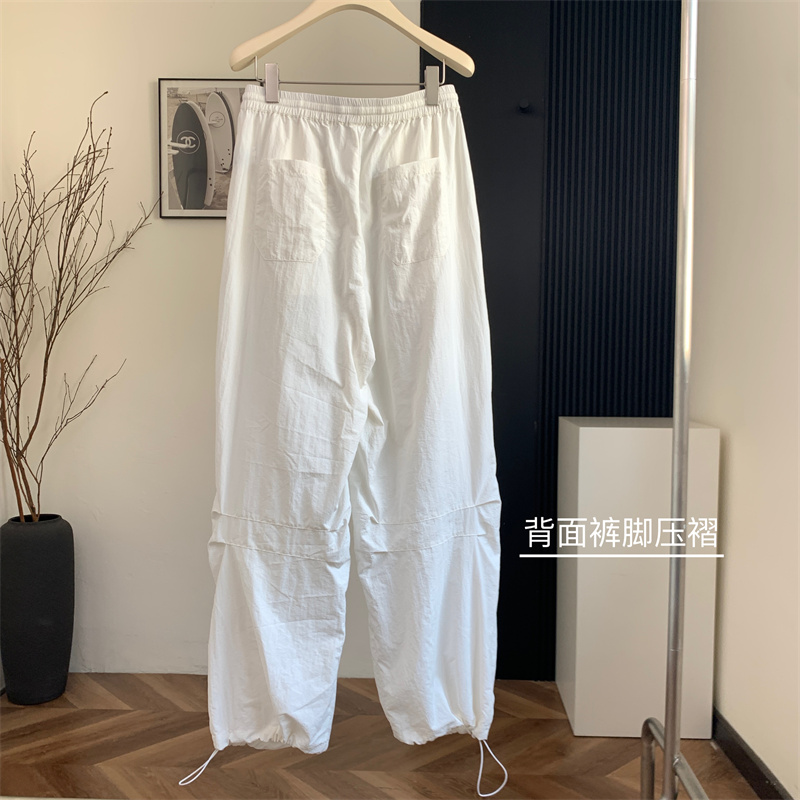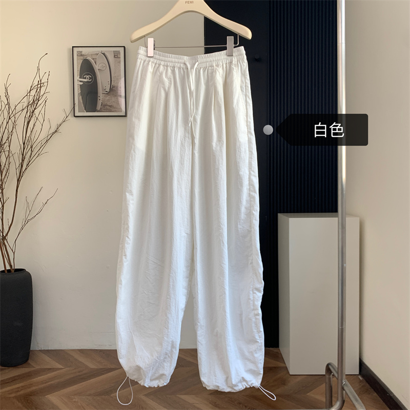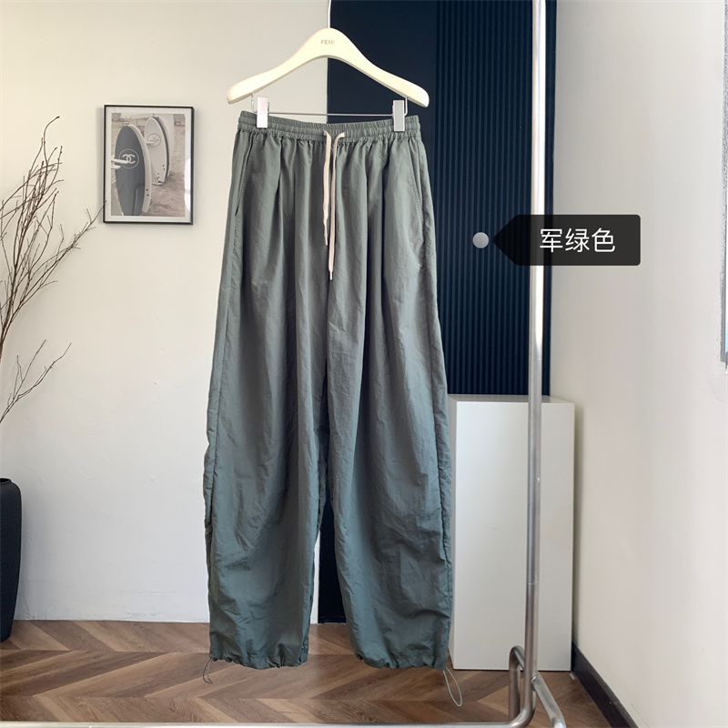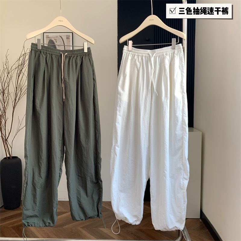 自制 敲百搭!三色抽繩速乾運動休閒褲女夏高腰顯瘦闊腿褲