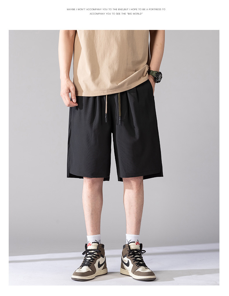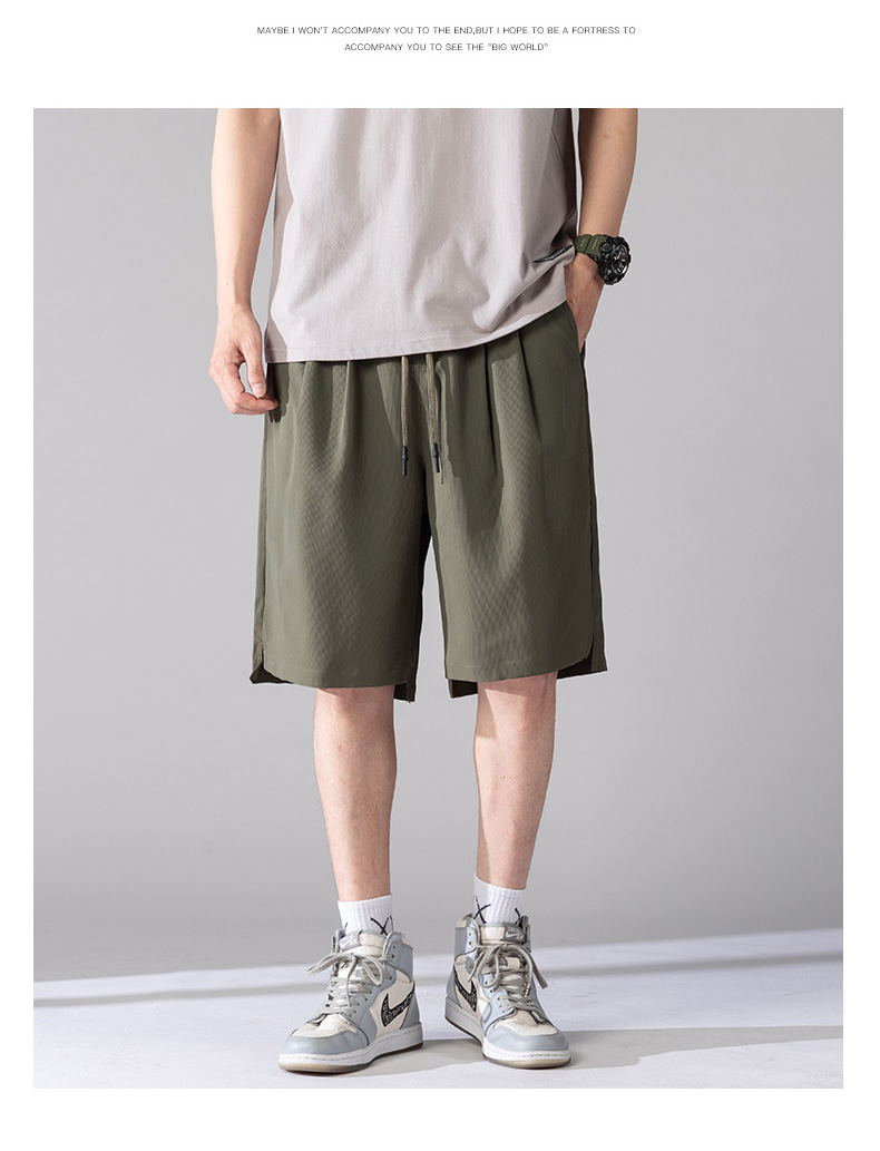 寬鬆短褲男生夏季薄款運動卡其色休閒潮男士五分褲冰絲速乾五分褲子