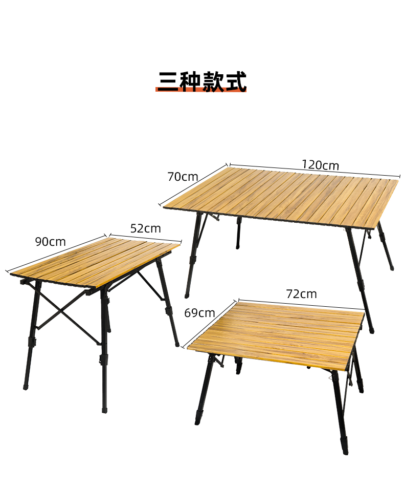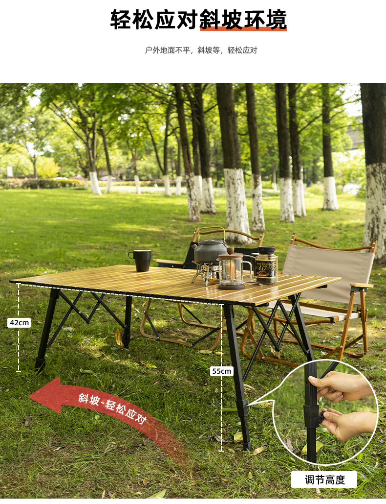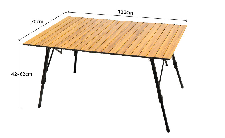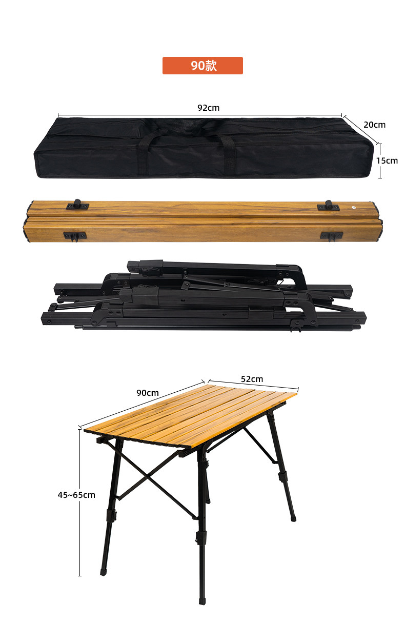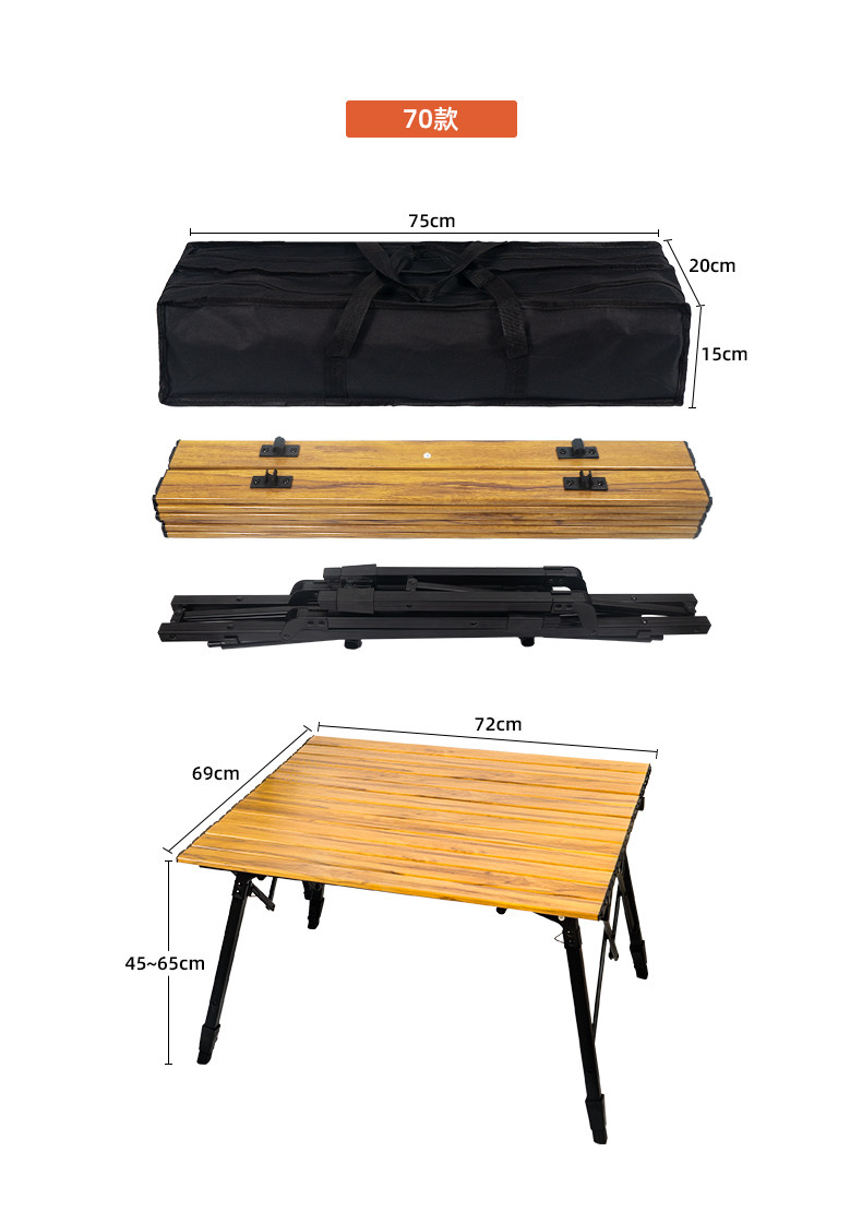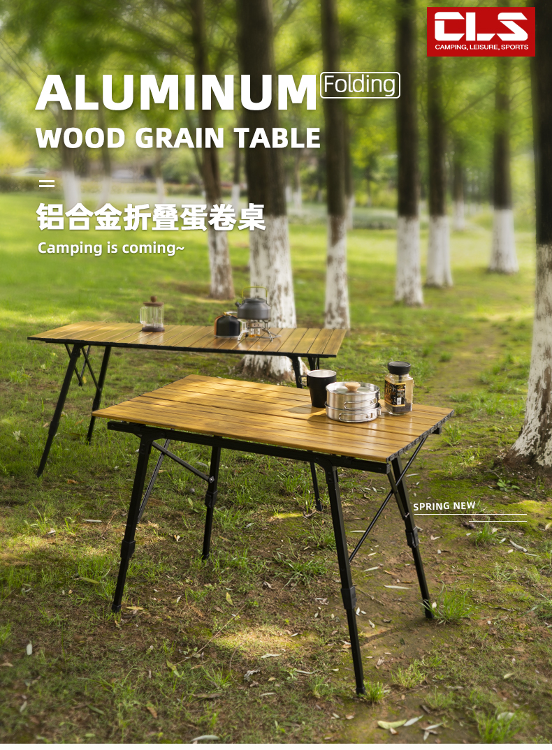 戶外野營摺疊桌木紋鋁合金蛋卷桌野餐燒烤桌可攜式可升降車載鋁板桌