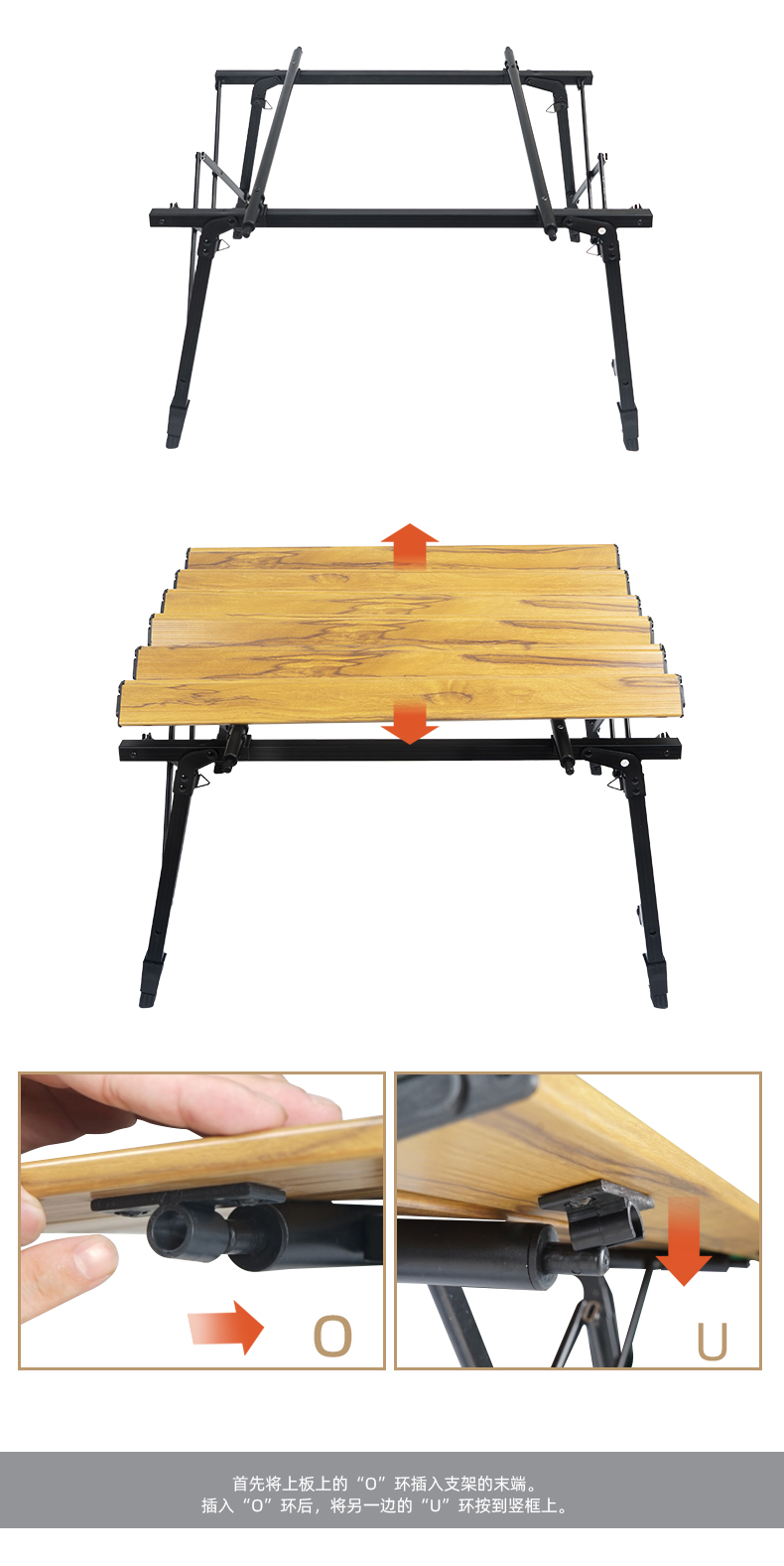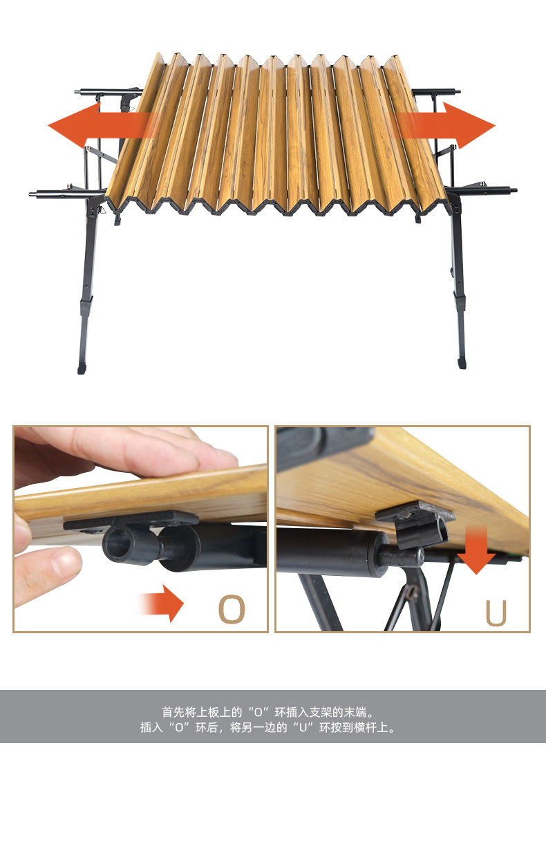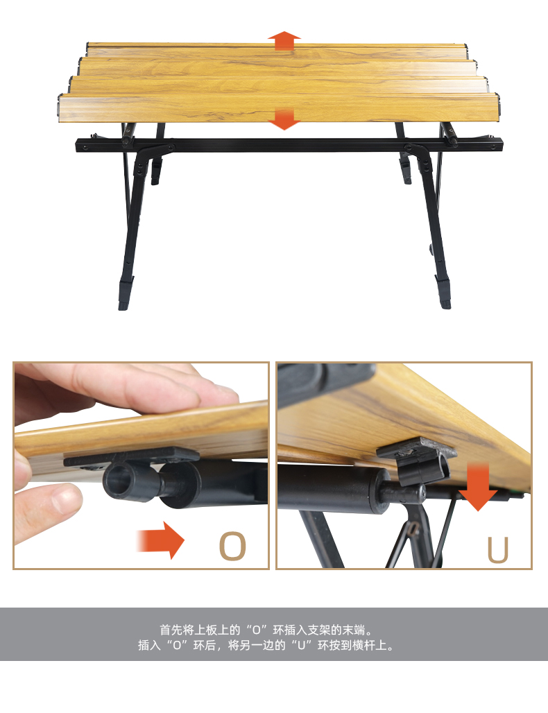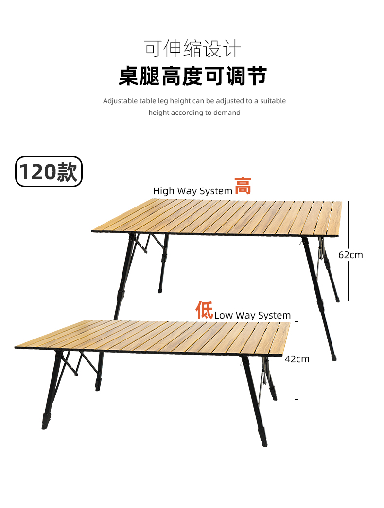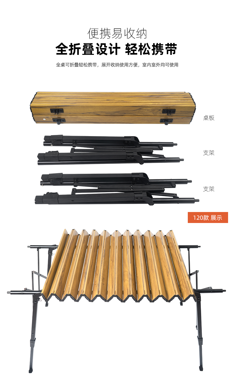 戶外野營摺疊桌木紋鋁合金蛋卷桌野餐燒烤桌可攜式可升降車載鋁板桌