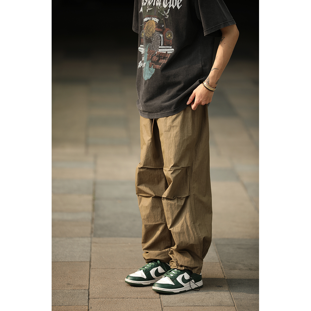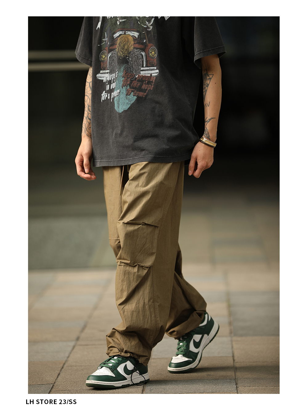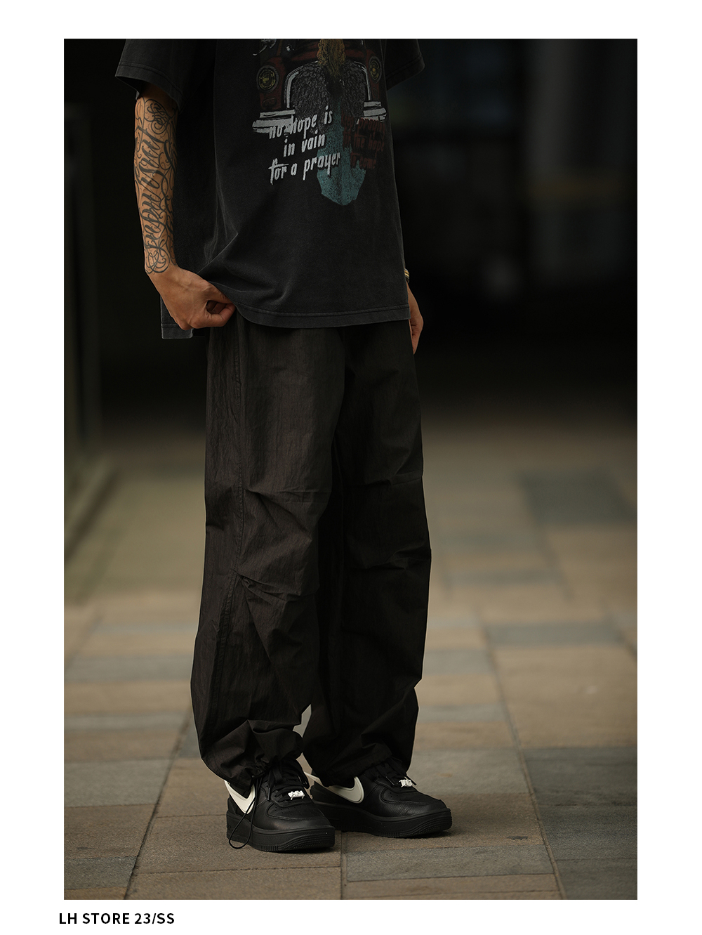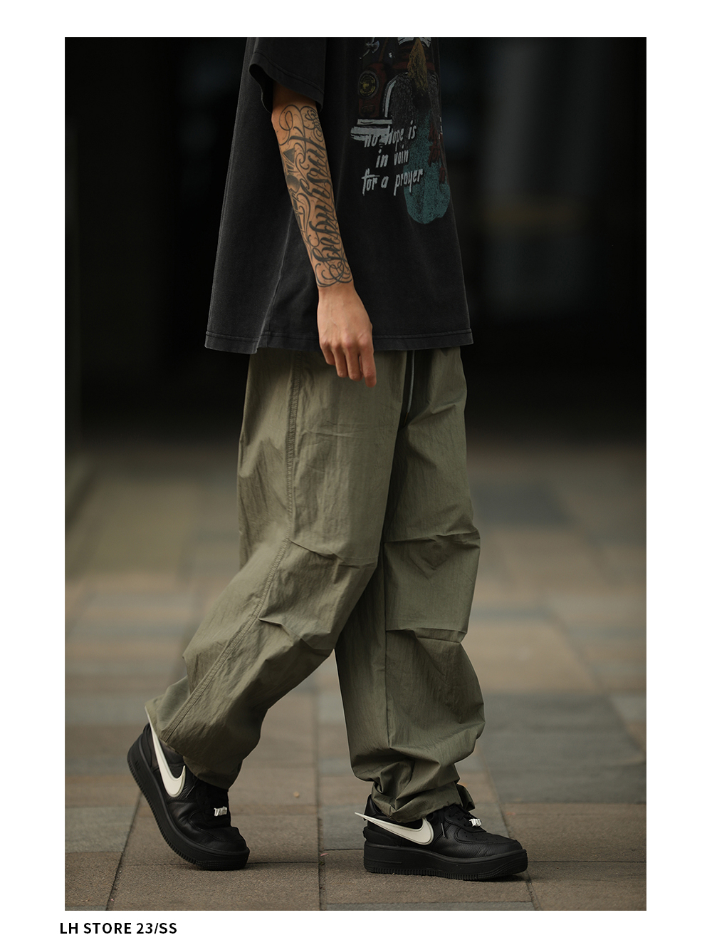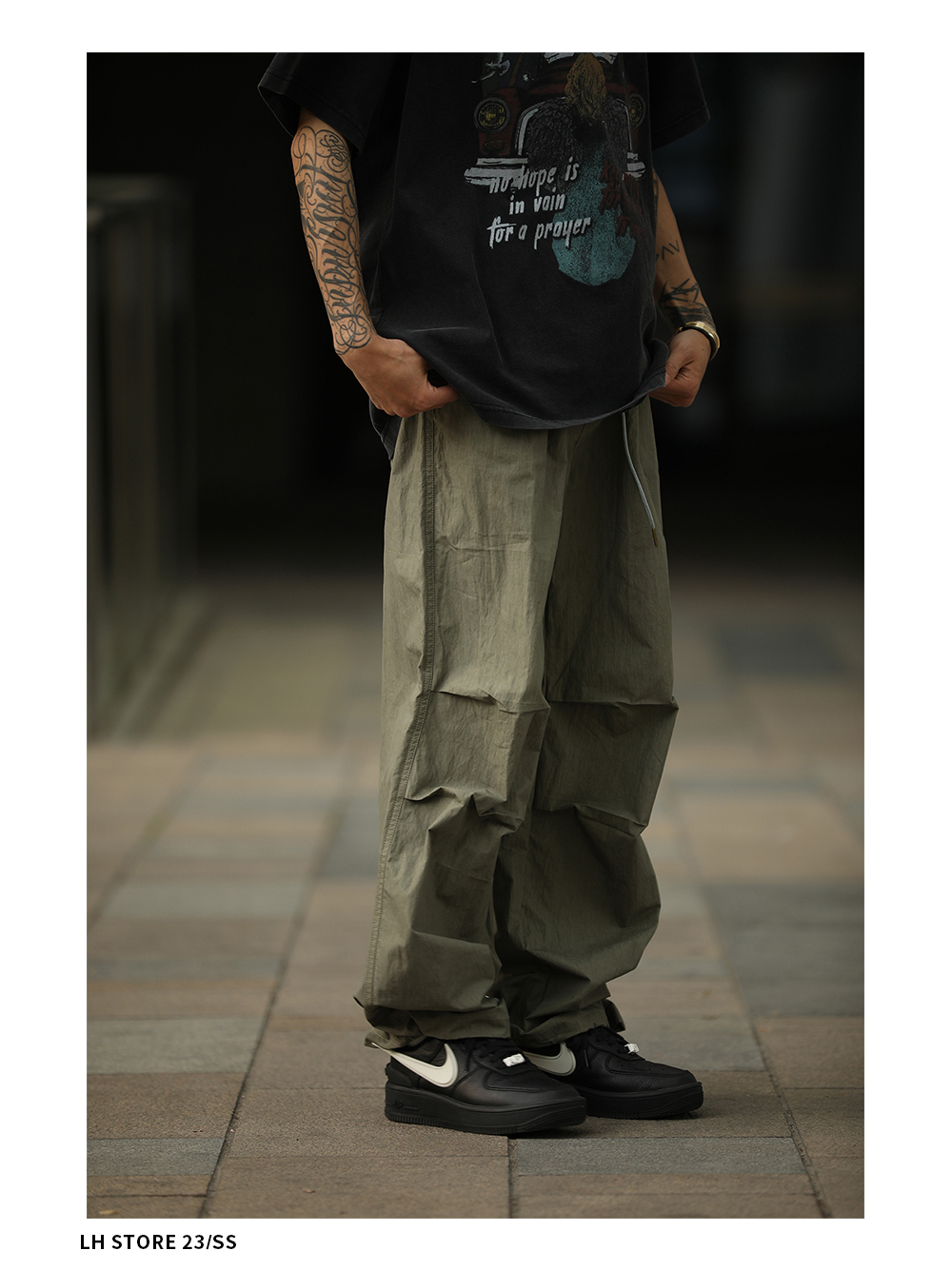LH store 夏季速乾美式復古工裝褲男女輕薄束腳傘兵褲闊腿長褲子