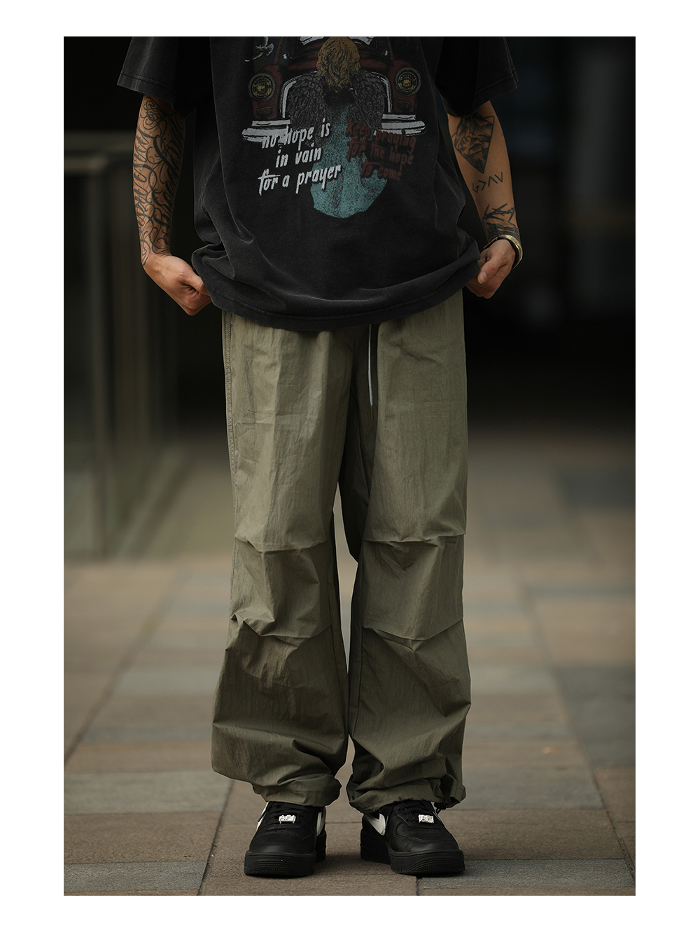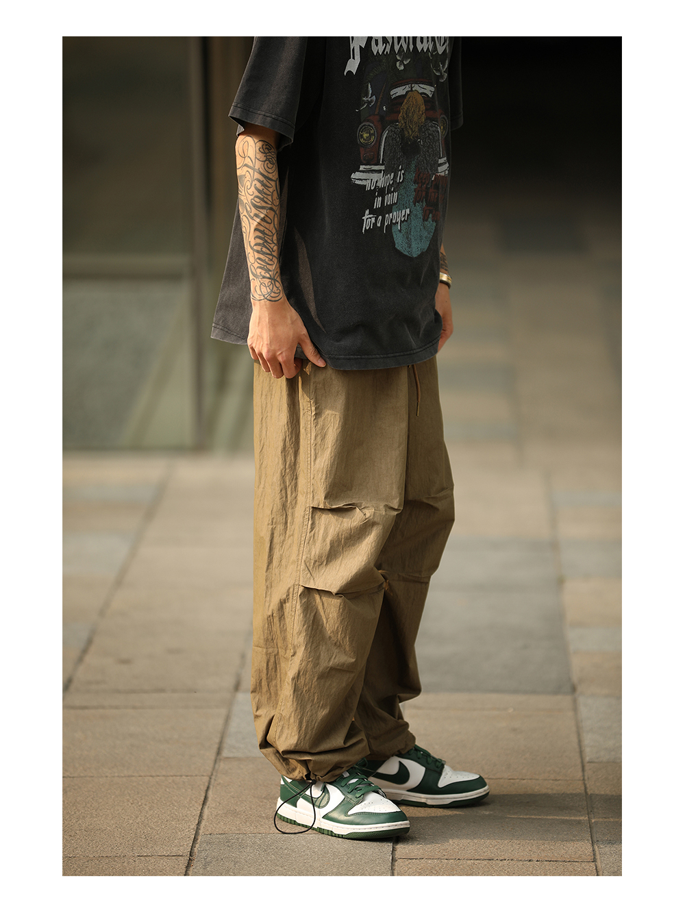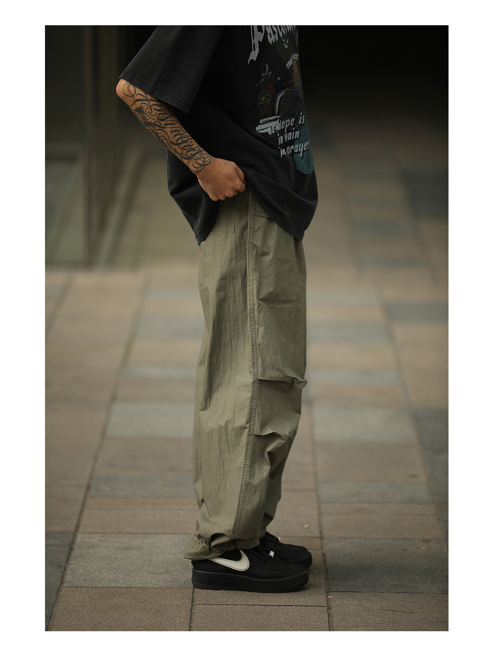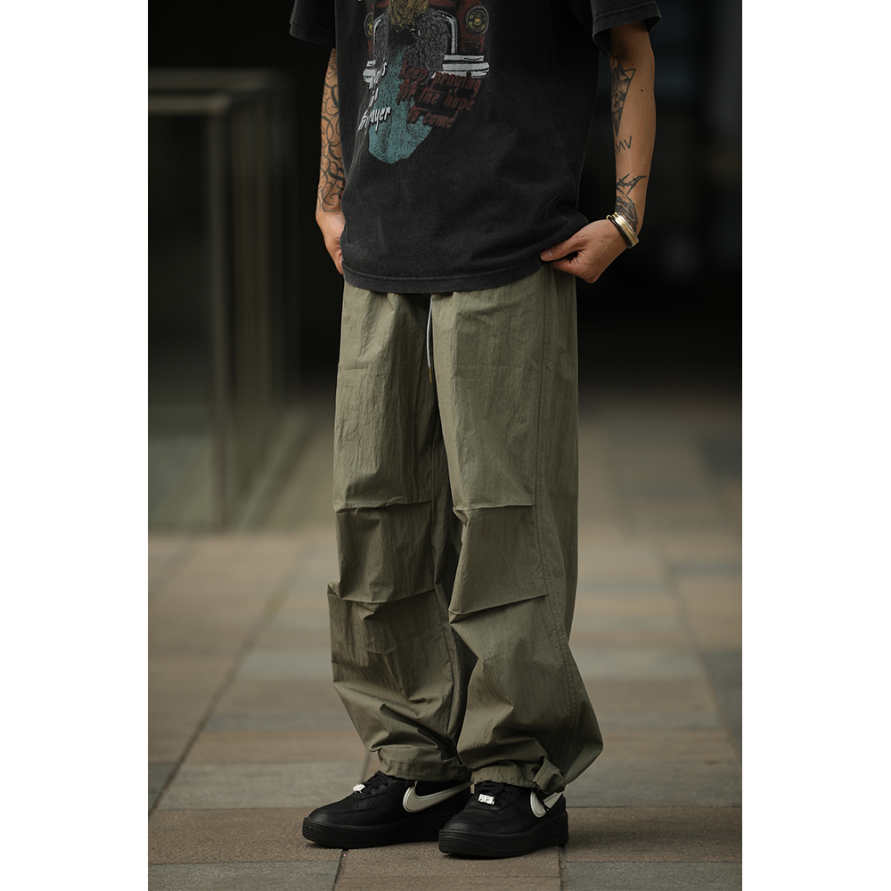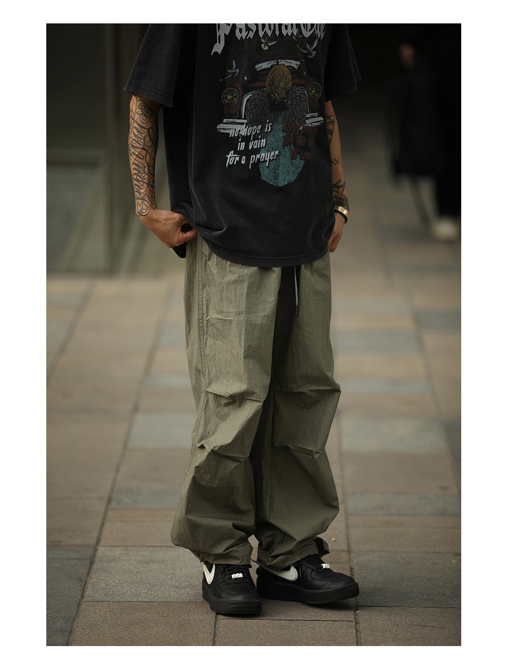 LH store 夏季速乾美式復古工裝褲男女輕薄束腳傘兵褲闊腿長褲子