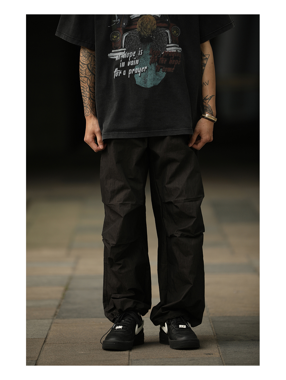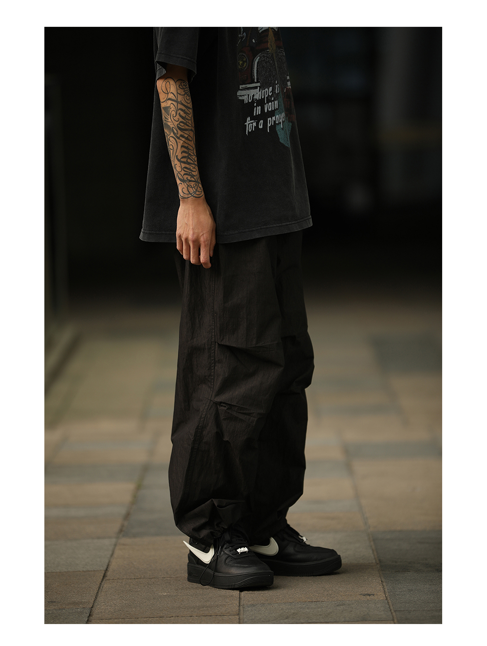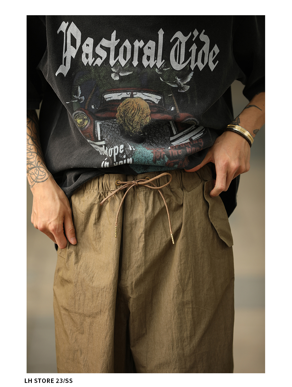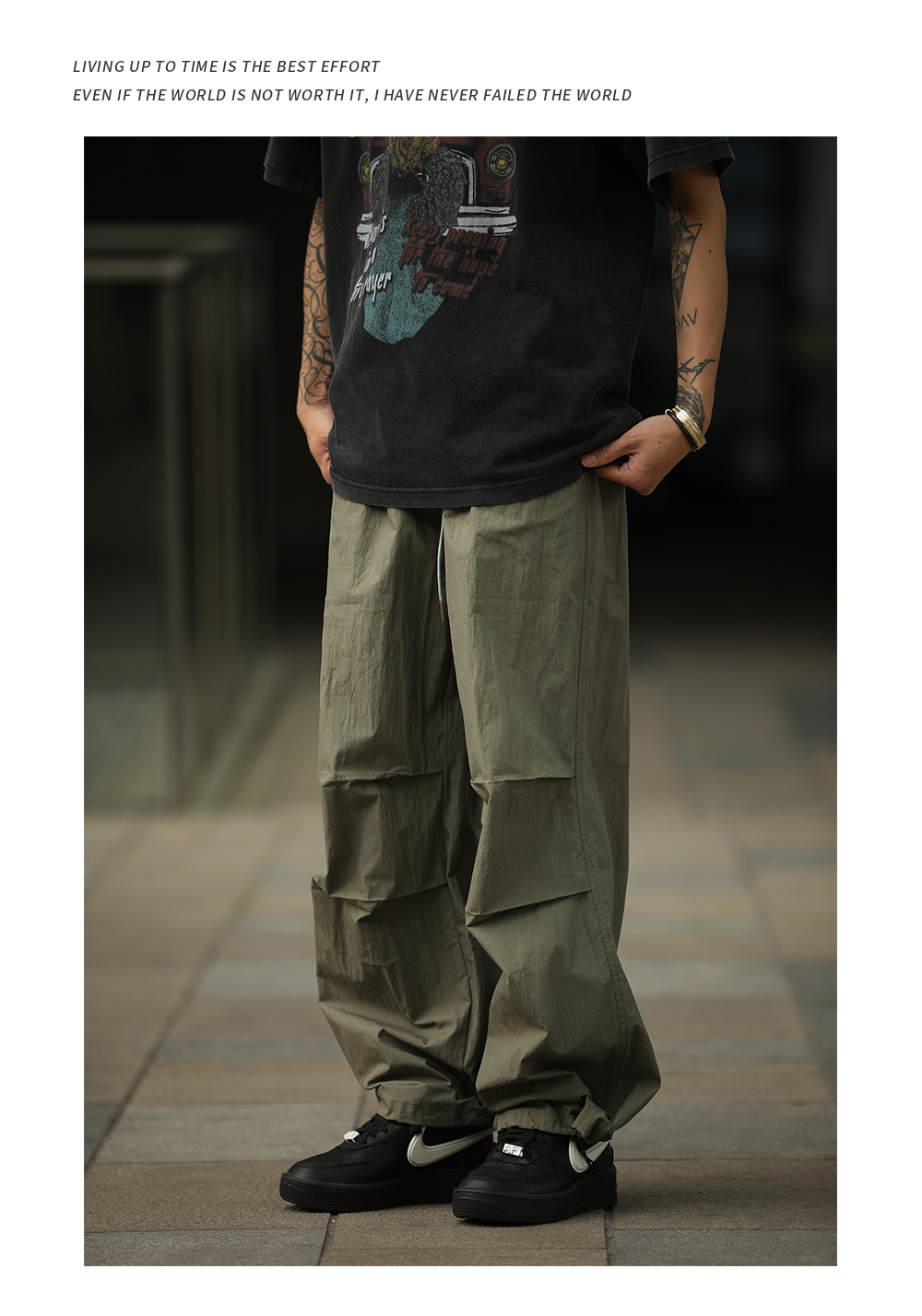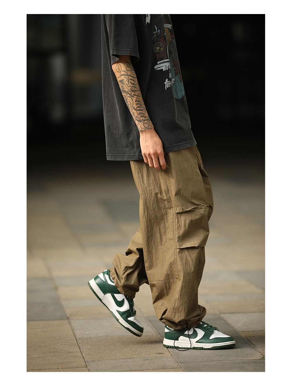 LH store 夏季速乾美式復古工裝褲男女輕薄束腳傘兵褲闊腿長褲子