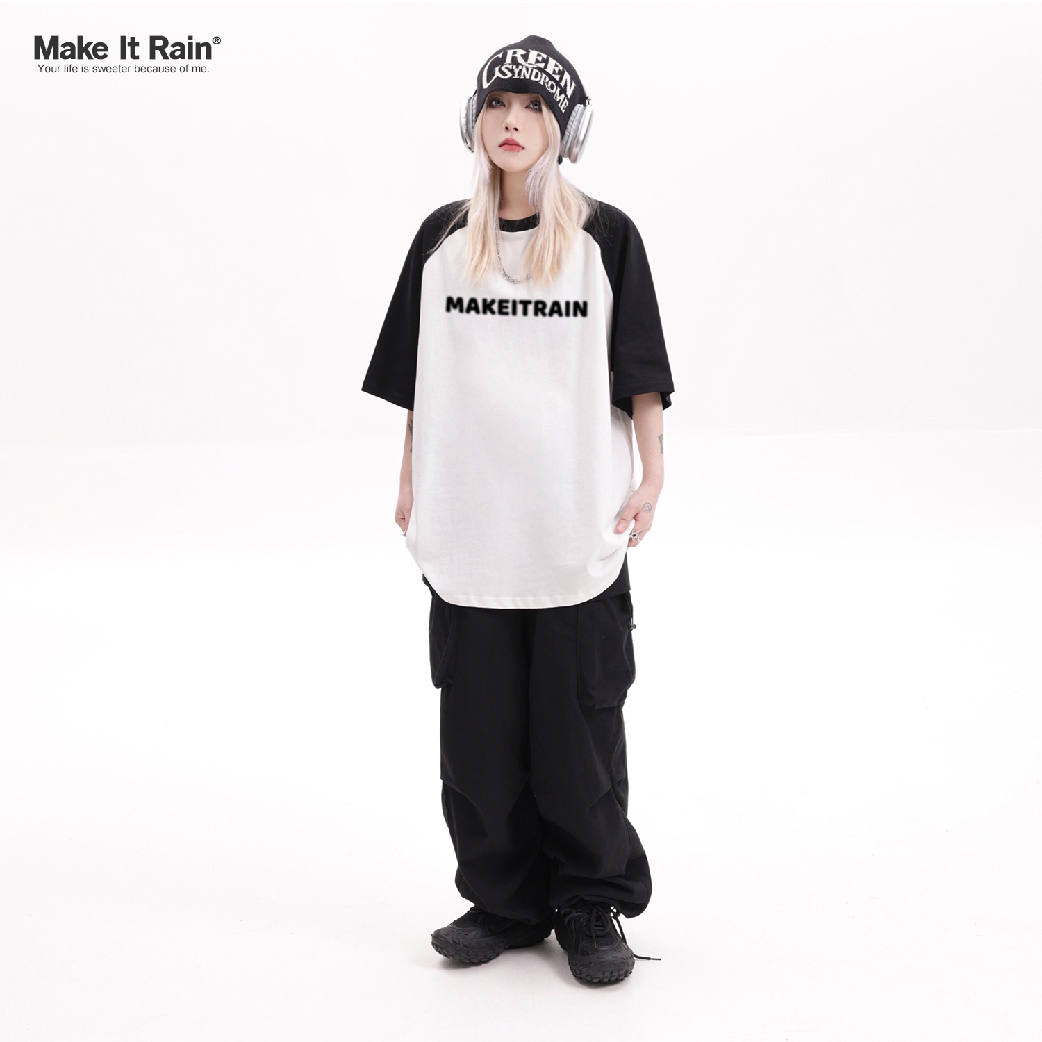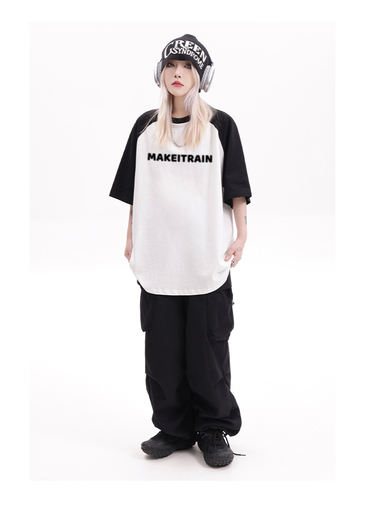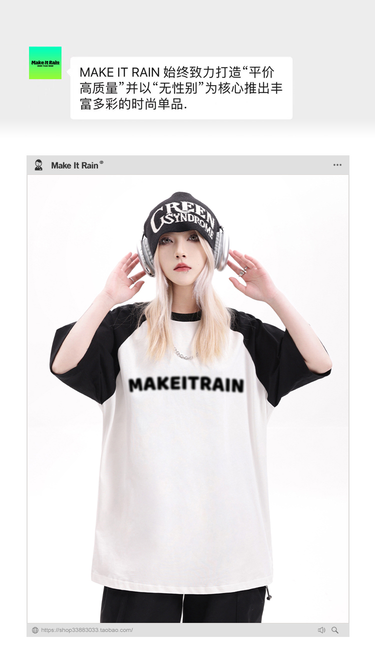 MAKE IT RAIN潮牌美式字母印花插肩短袖t恤男女夏季寬鬆痞帥半袖
