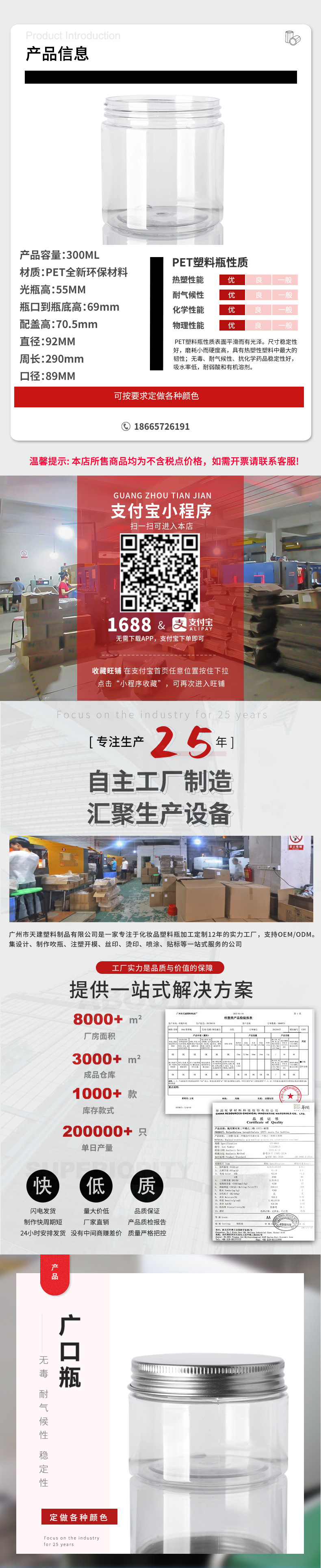现货供应300gPET广口瓶塑料瓶 300克膏霜瓶 300ml面膜配铝盖罐子