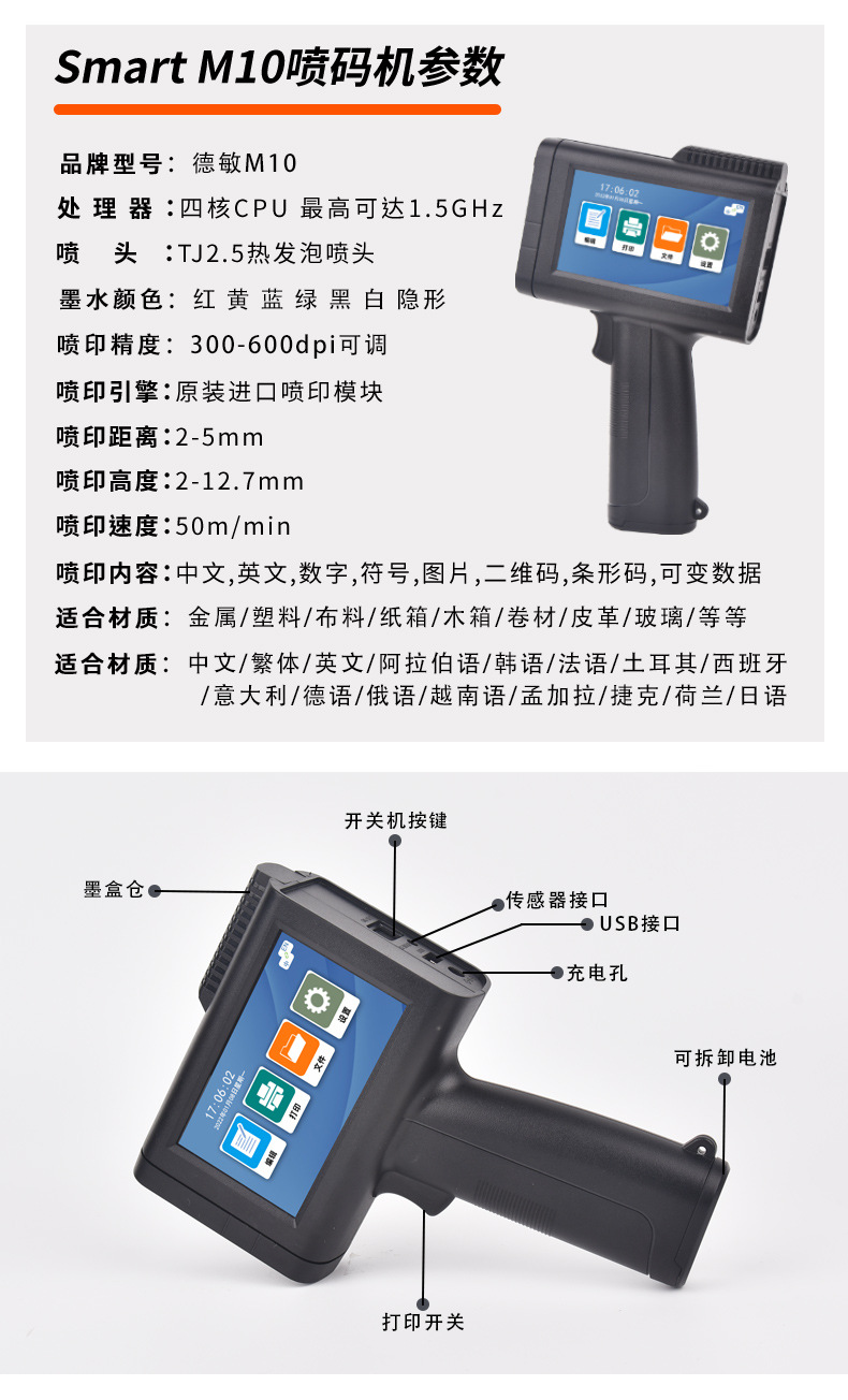 M10喷码机手持小型打码机打生产日期批号全自动工厂用喷墨打标机