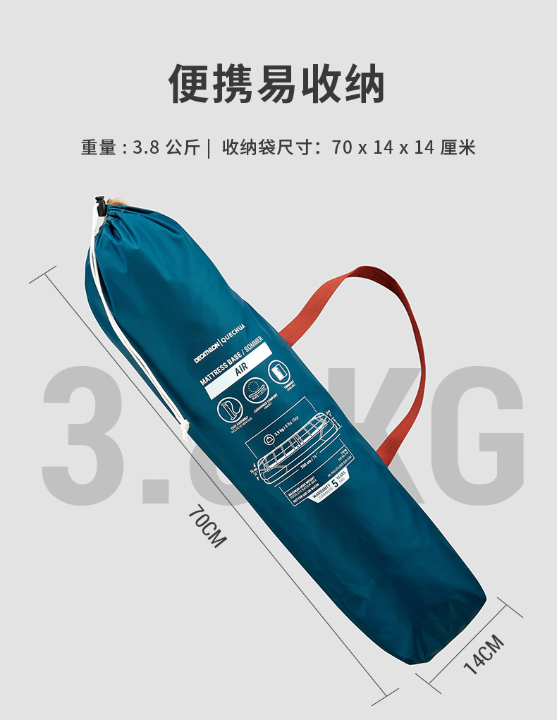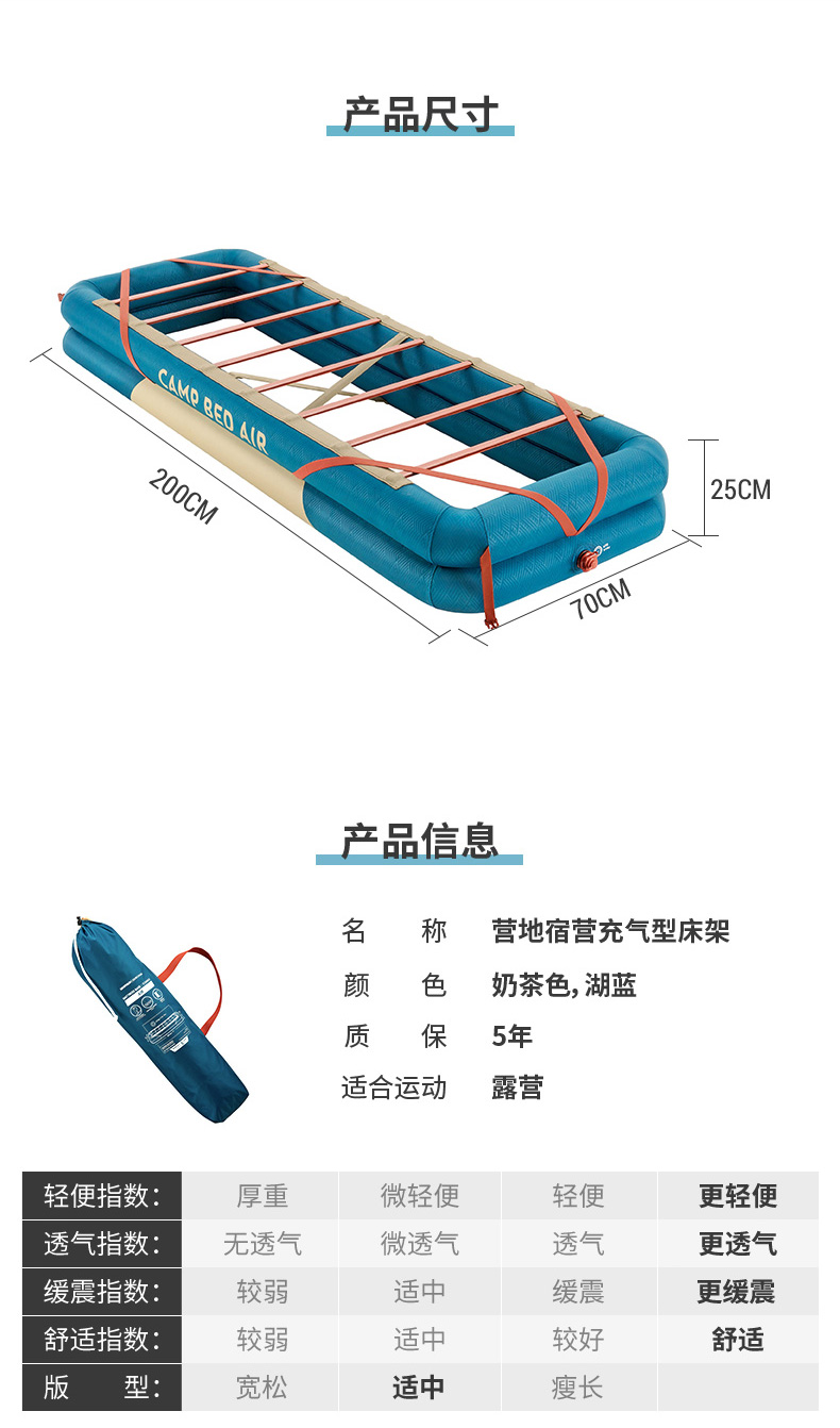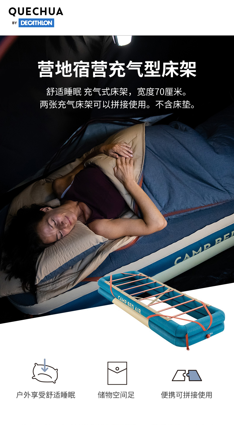 迪卡儂充氣牀架營地露營優質睡眠單人70cm舒適易收納ODCF