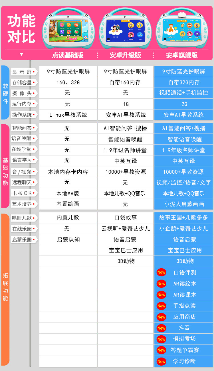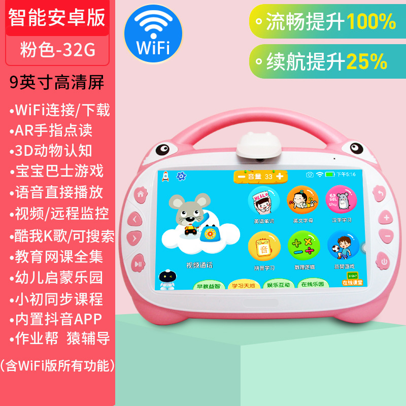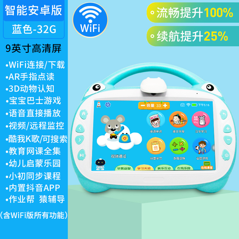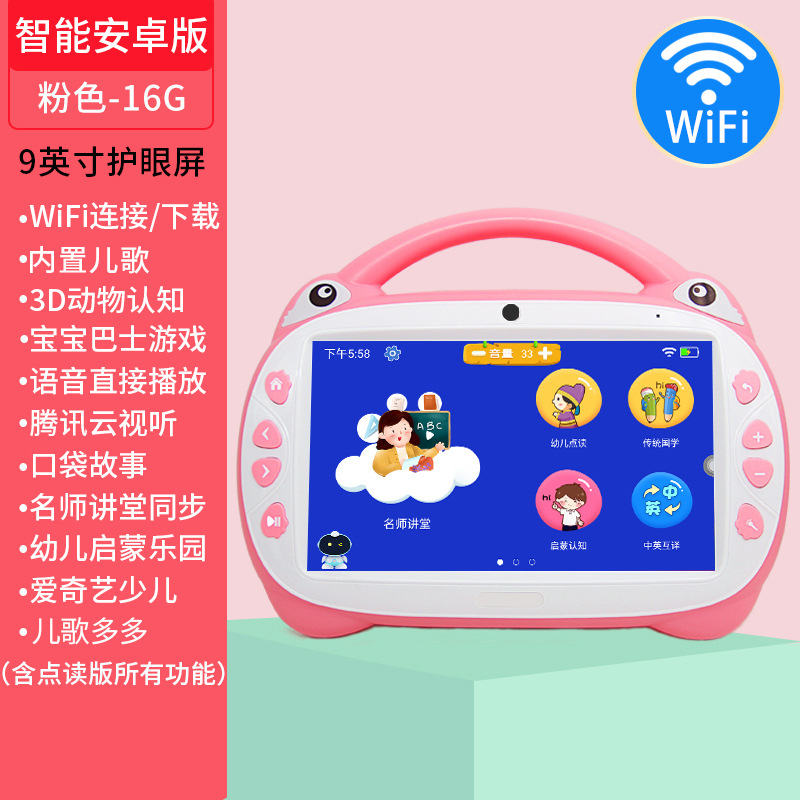 颜色 点读版蓝色16G+双话筒,点读版粉色16G+双话筒,点读版蓝色32G+双话筒,点读版粉色32G+双话筒,WiFi版蓝色16G+双话筒,WiFi版粉色16G+双话筒,WiFi版蓝色32G+双话筒,WiFi版粉色32G+双话筒,安卓版1+16蓝色+双话筒(儿歌多多+爱奇艺少儿),安卓版1+16粉色+双话筒(儿歌多多+爱奇艺少儿),安卓版2+32蓝色+双话筒(抖音+爱奇艺),安卓版2+32粉色+双话筒(抖音+爱奇艺)