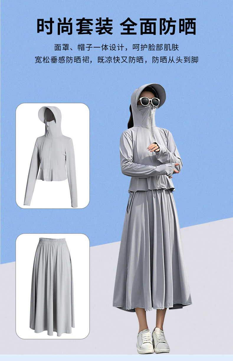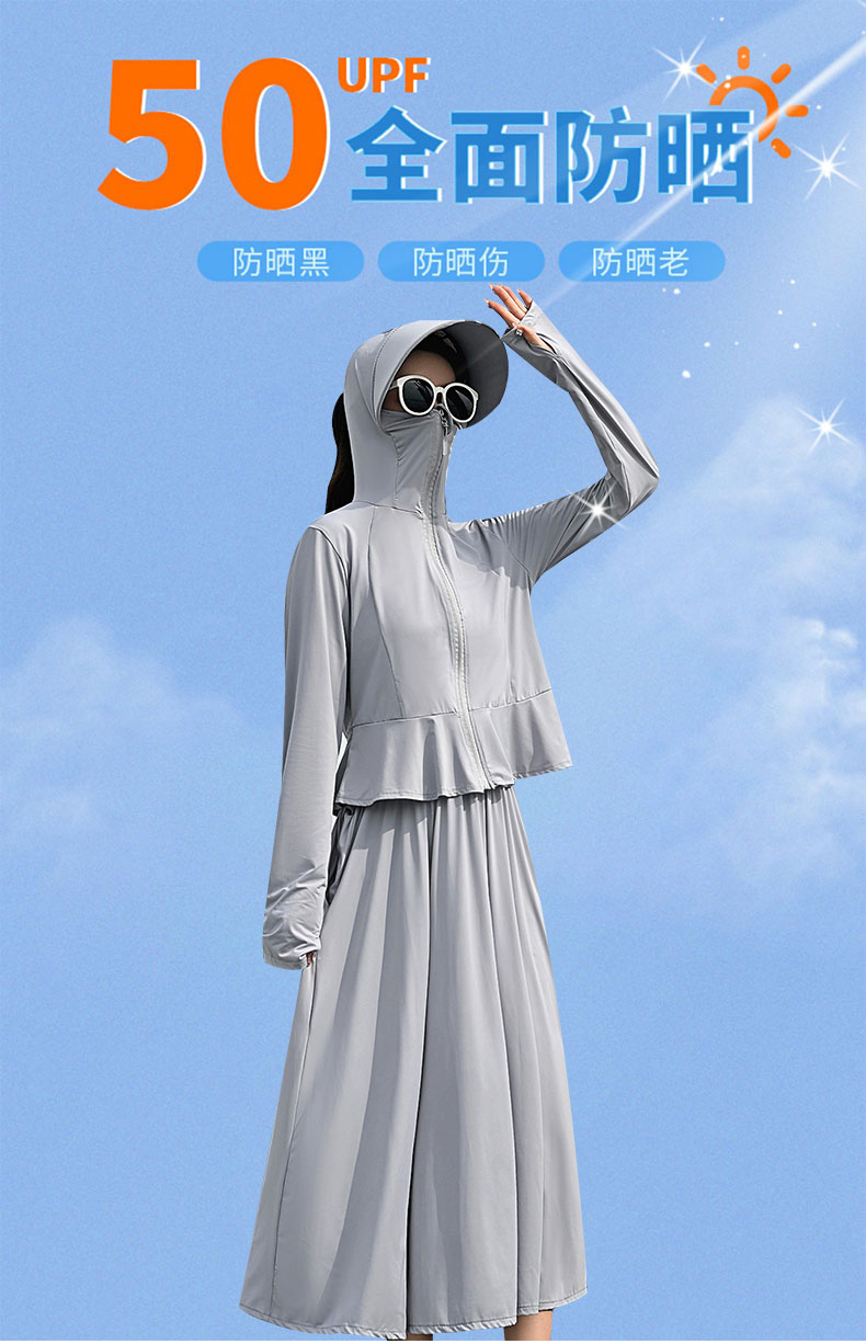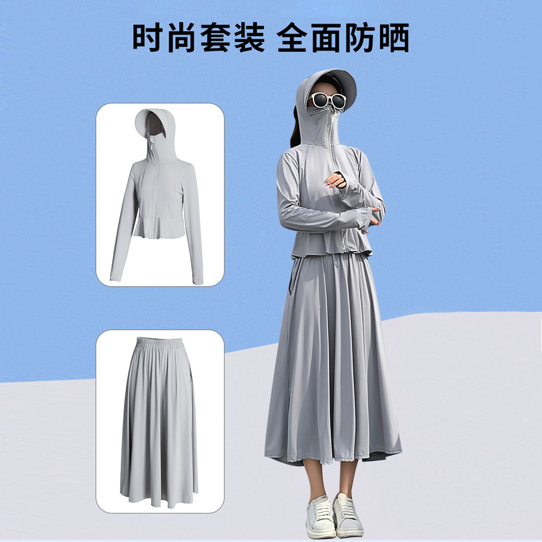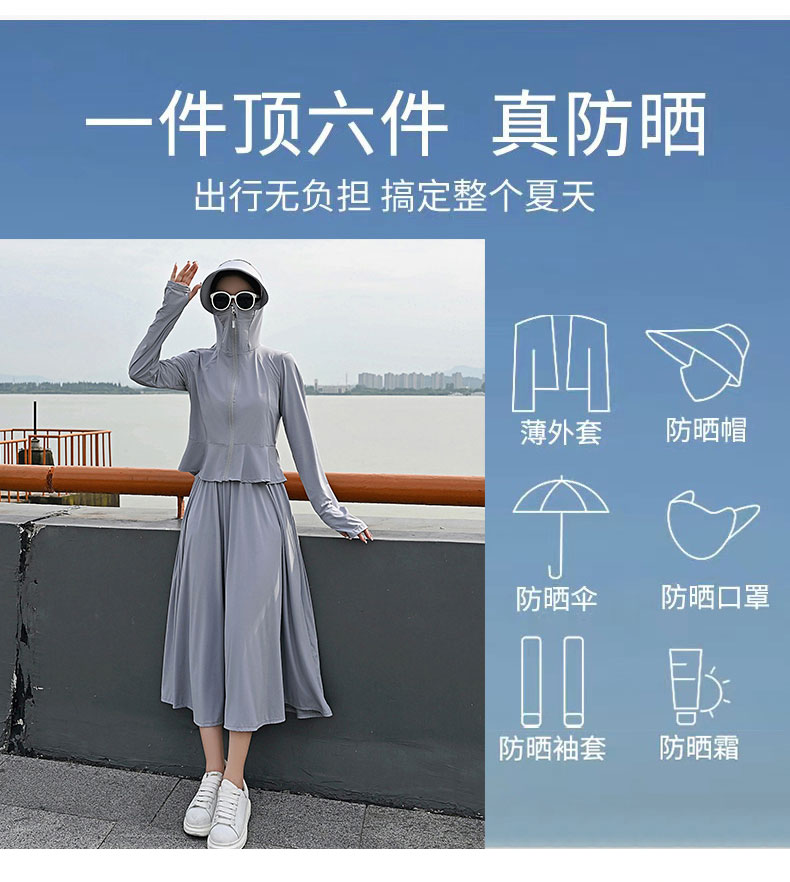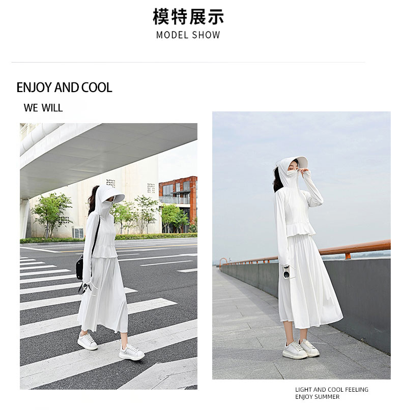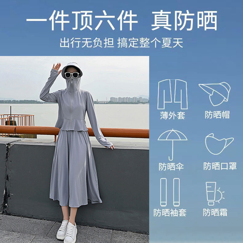 原紗型防曬衣女夏季2023新款薄款長版抗UV冰絲防曬服套裝罩衫