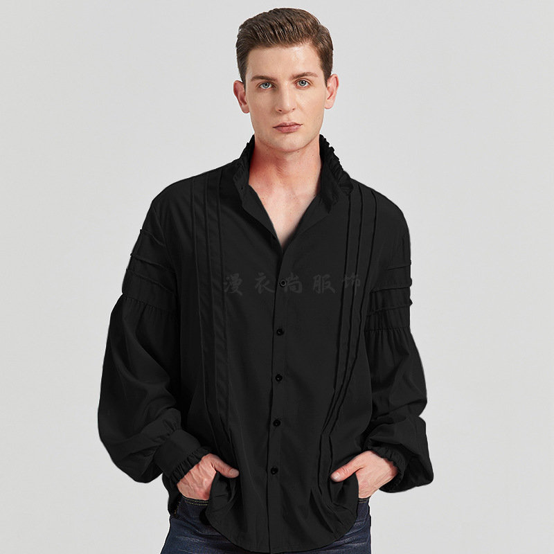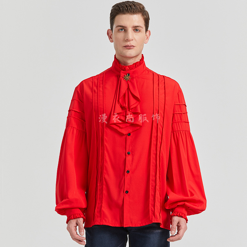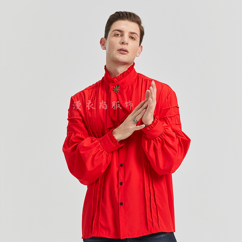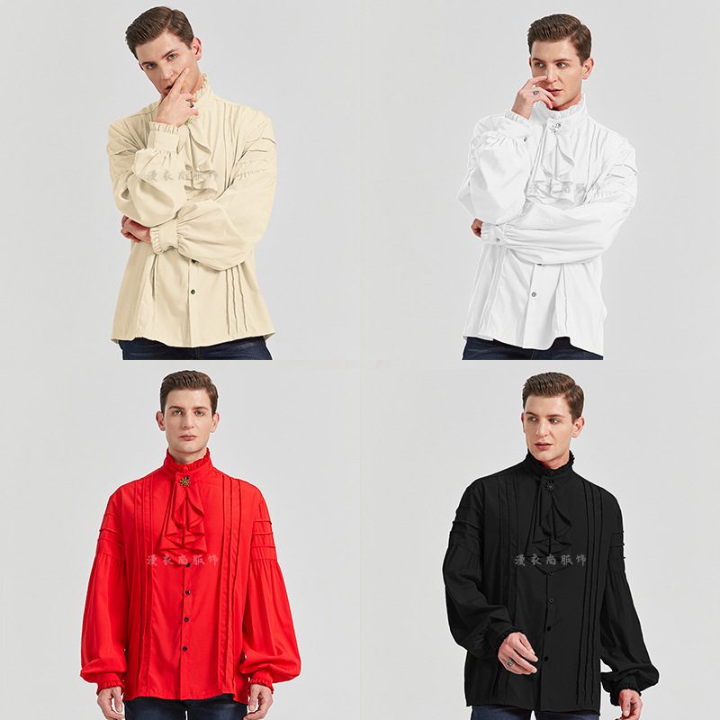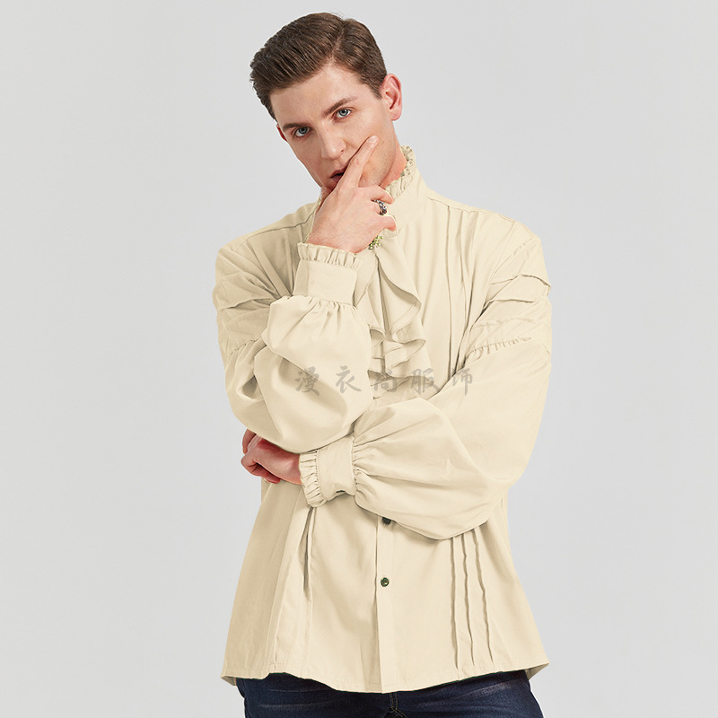 2023新欧美春秋男士文艺复兴服装衬衫中世纪蒸汽朋克海盗上衣内搭