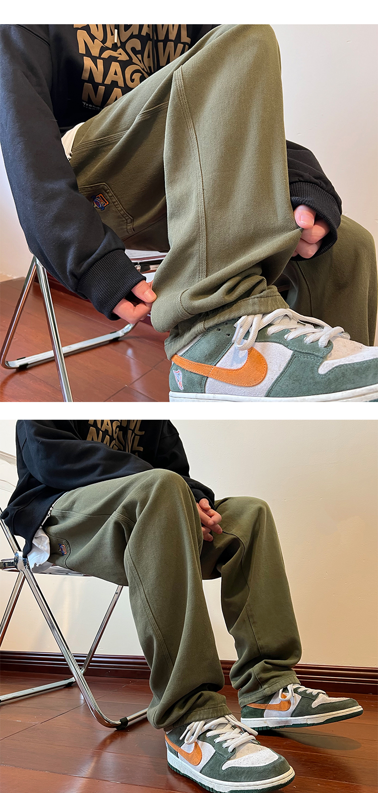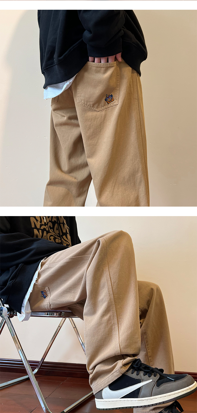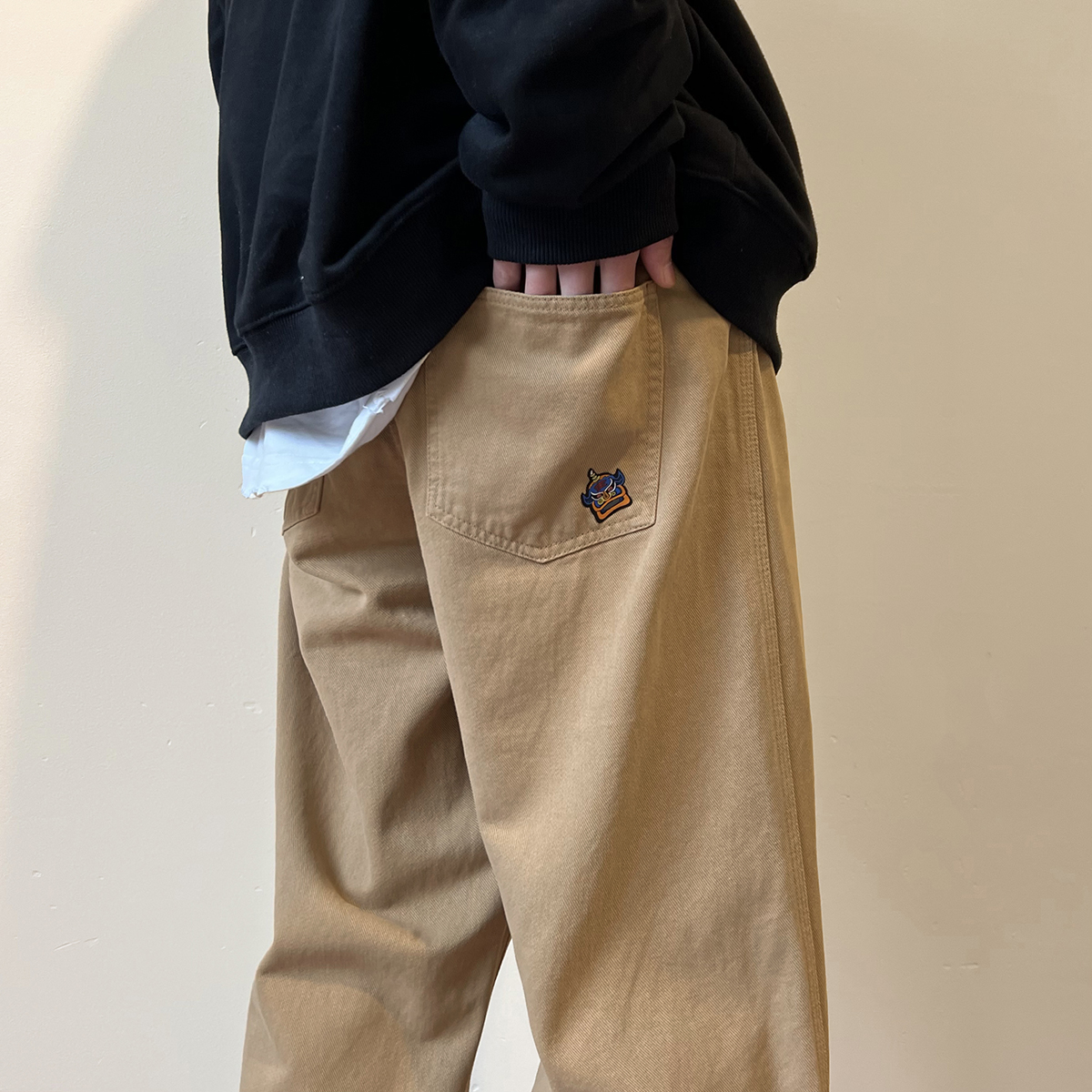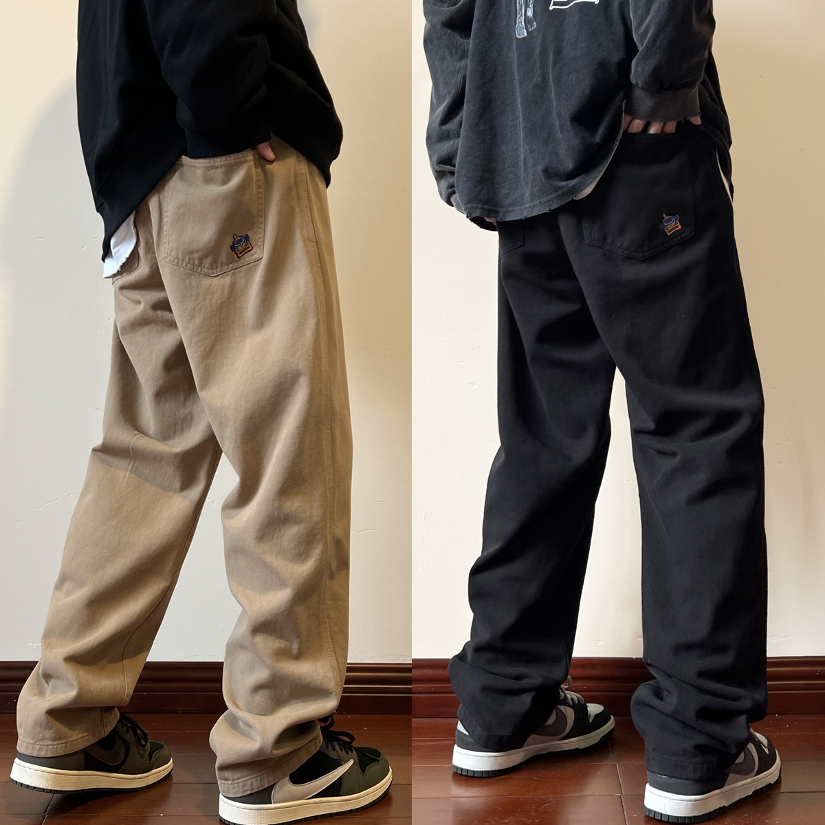 卡其色工裝休閒褲男春秋新款美式復古高街褲子潮牌寬鬆闊腿直筒褲