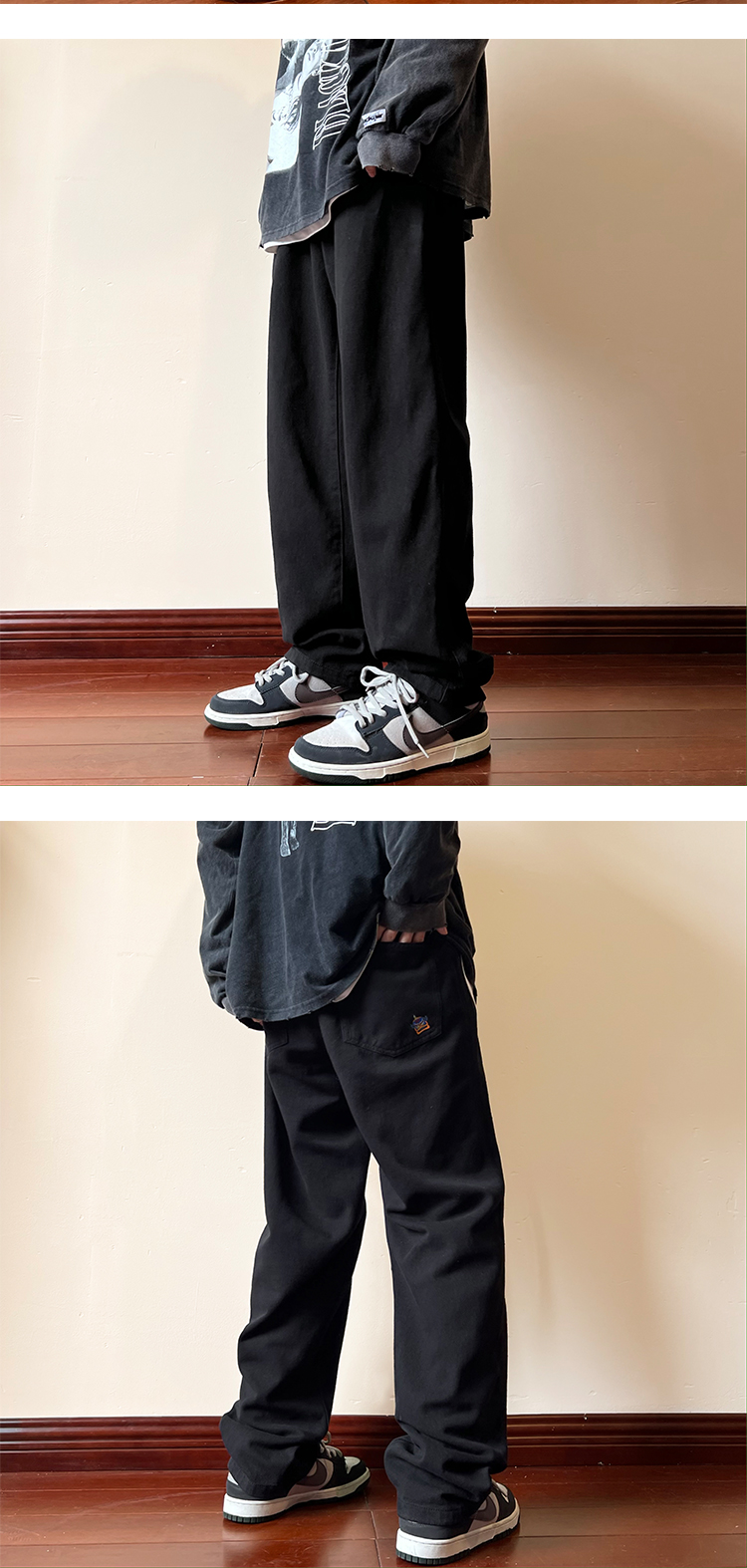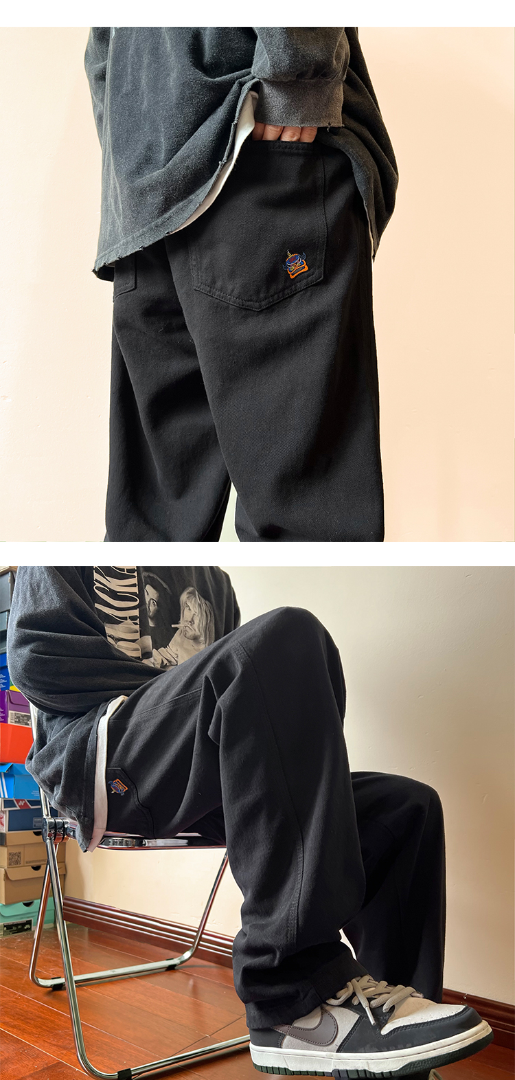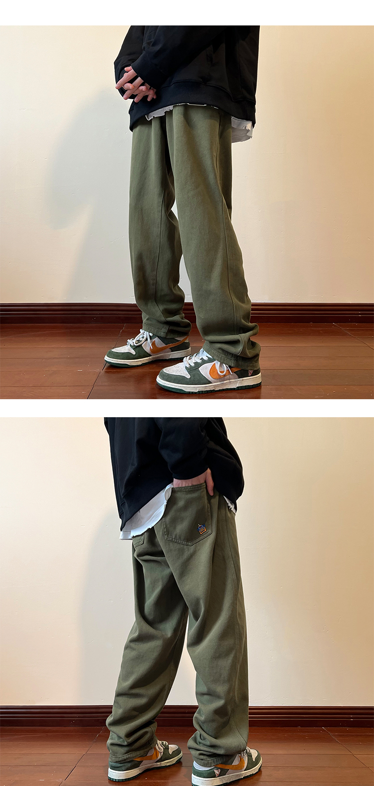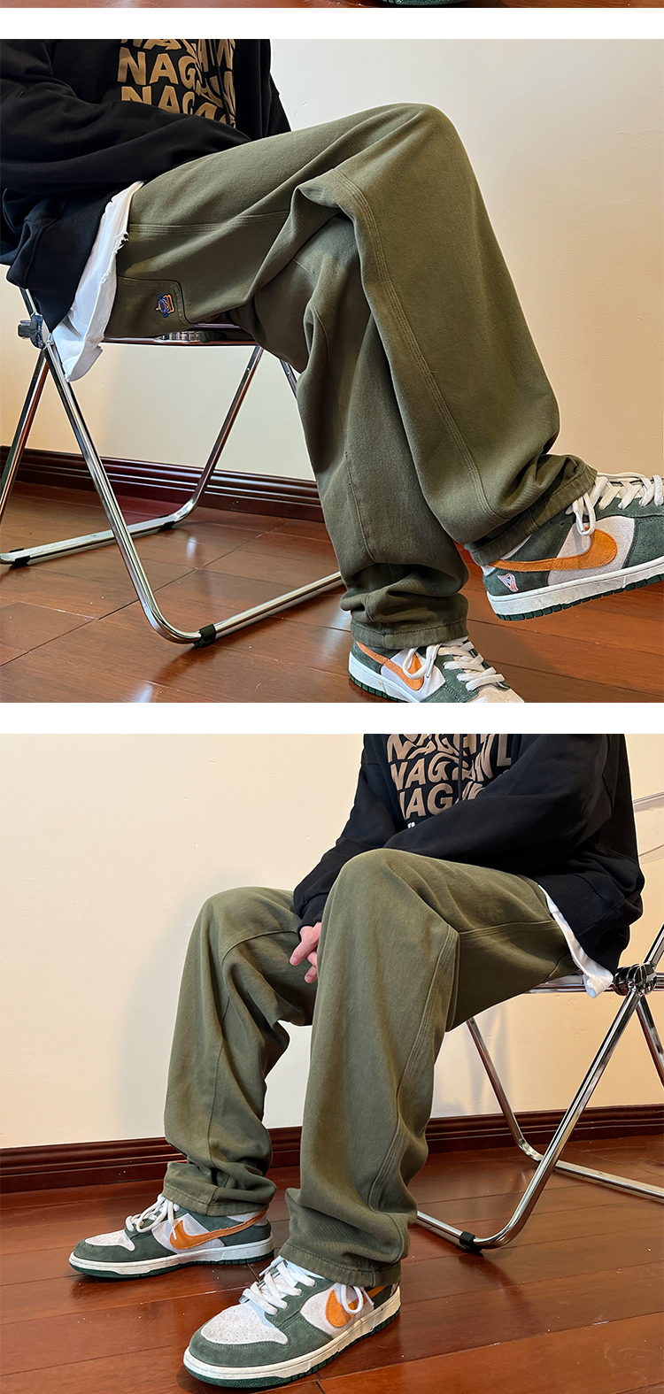 卡其色工裝休閒褲男春秋新款美式復古高街褲子潮牌寬鬆闊腿直筒褲