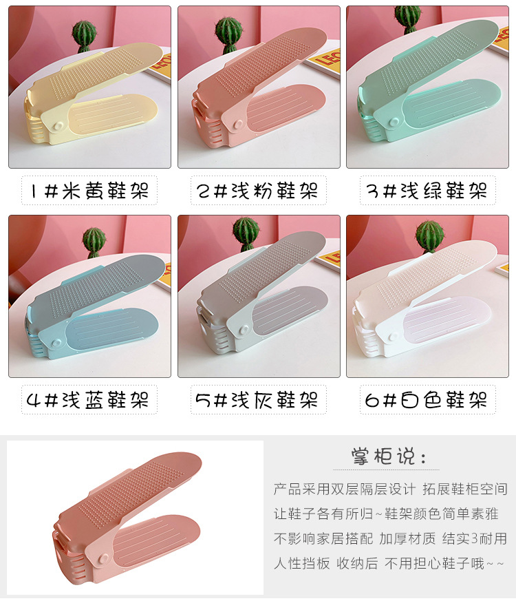 颜色 1#米黄鞋架,2#浅粉鞋架,3#浅绿鞋架,4#浅蓝鞋架,5#浅灰鞋架,6#白色鞋架