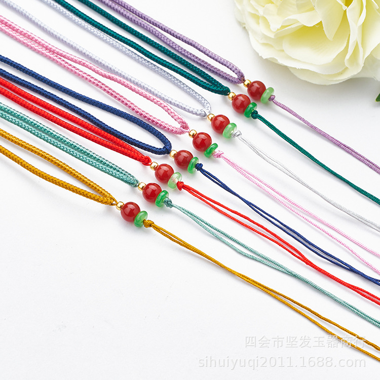 翡翠吊坠挂绳玉器玛瑙蜜蜡水晶挂件绳可调节红珠项链线材厂家批发