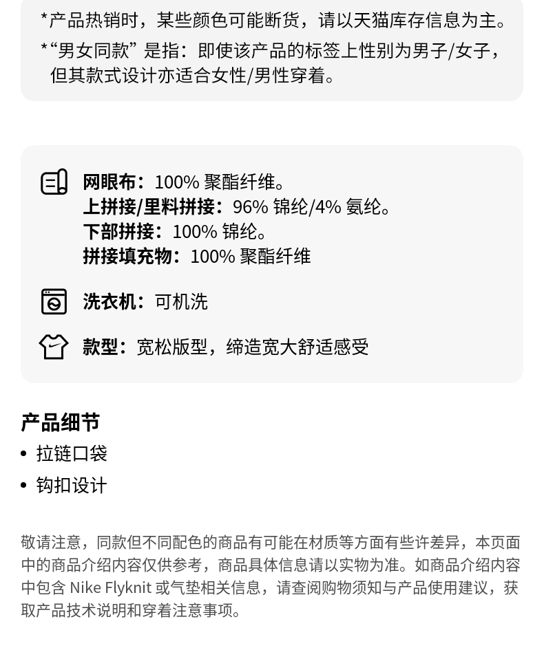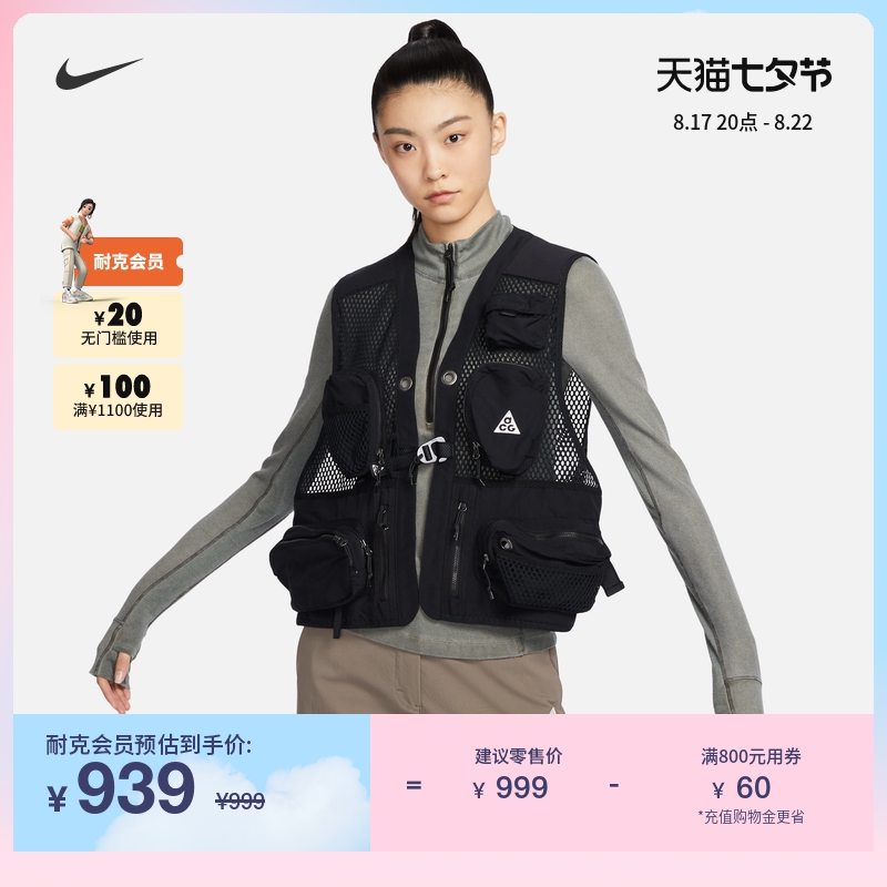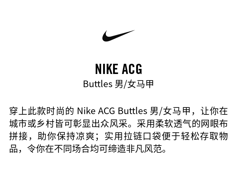 Nike耐克官方ACG男女馬甲秋戶外情侶寬鬆透氣拼接網眼時尚DN3920