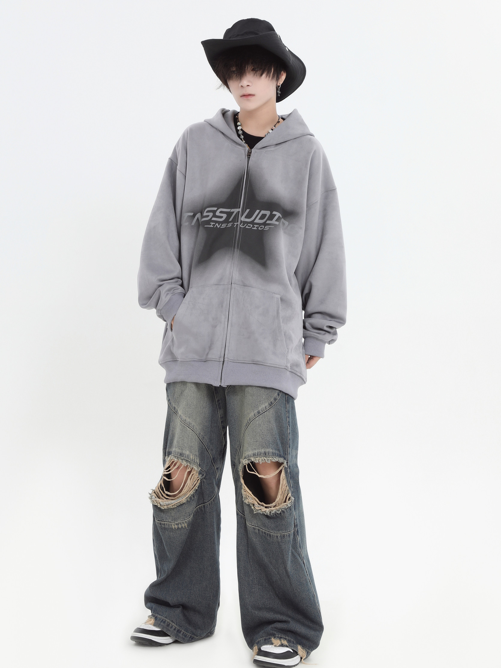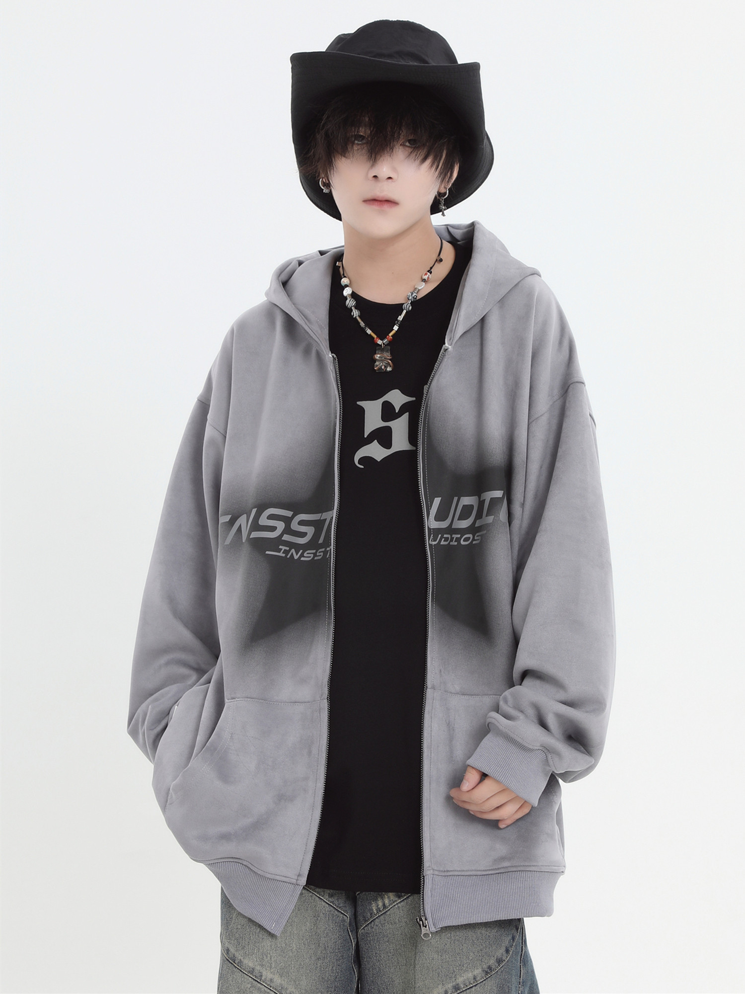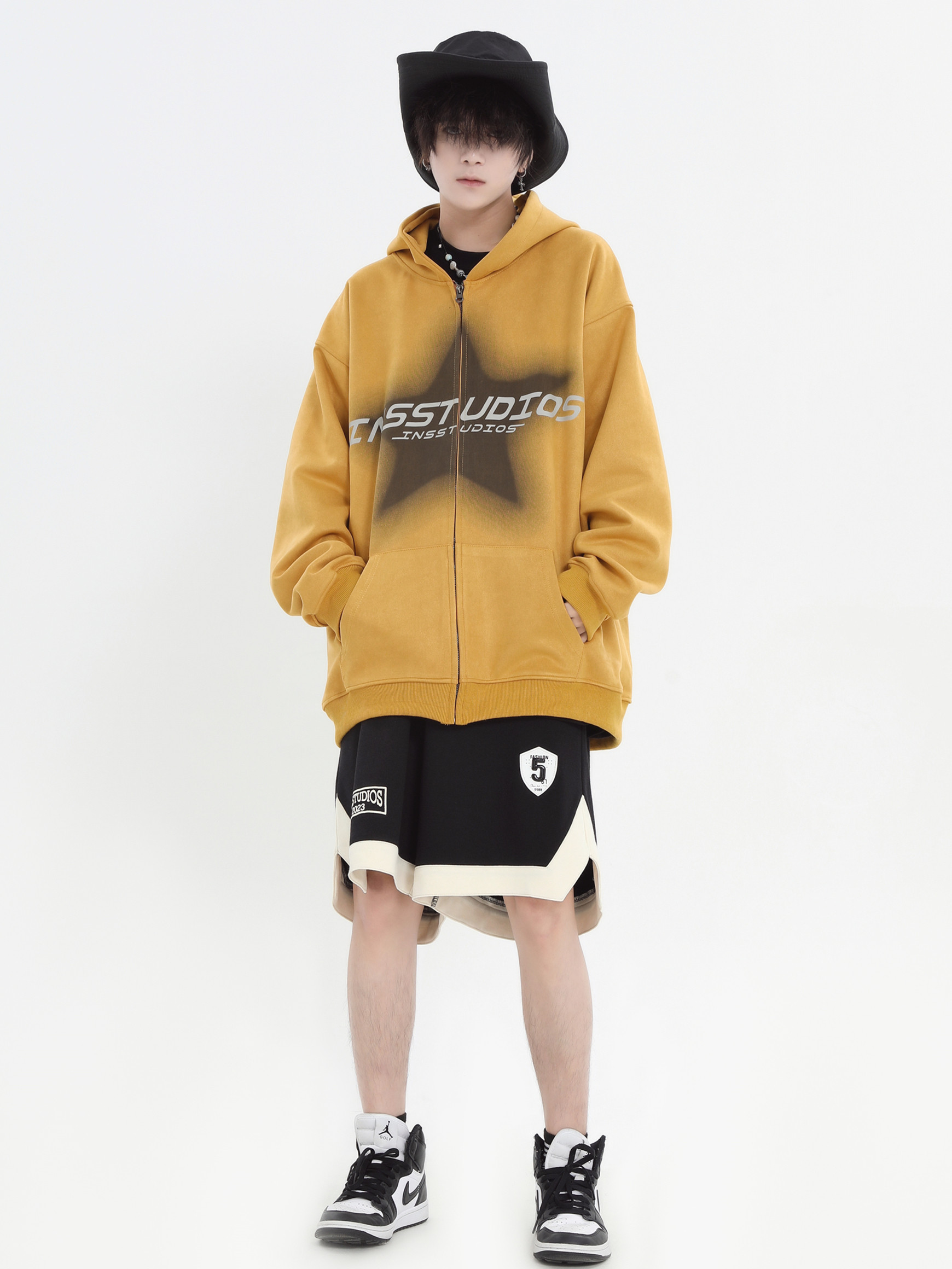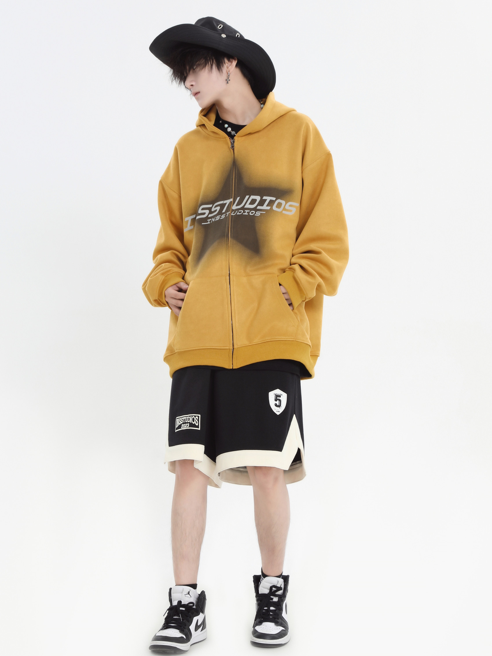 【INSKR】國潮牌情侶美式星星LOGO麂皮絨粉色衛衣拉鍊開衫外套男